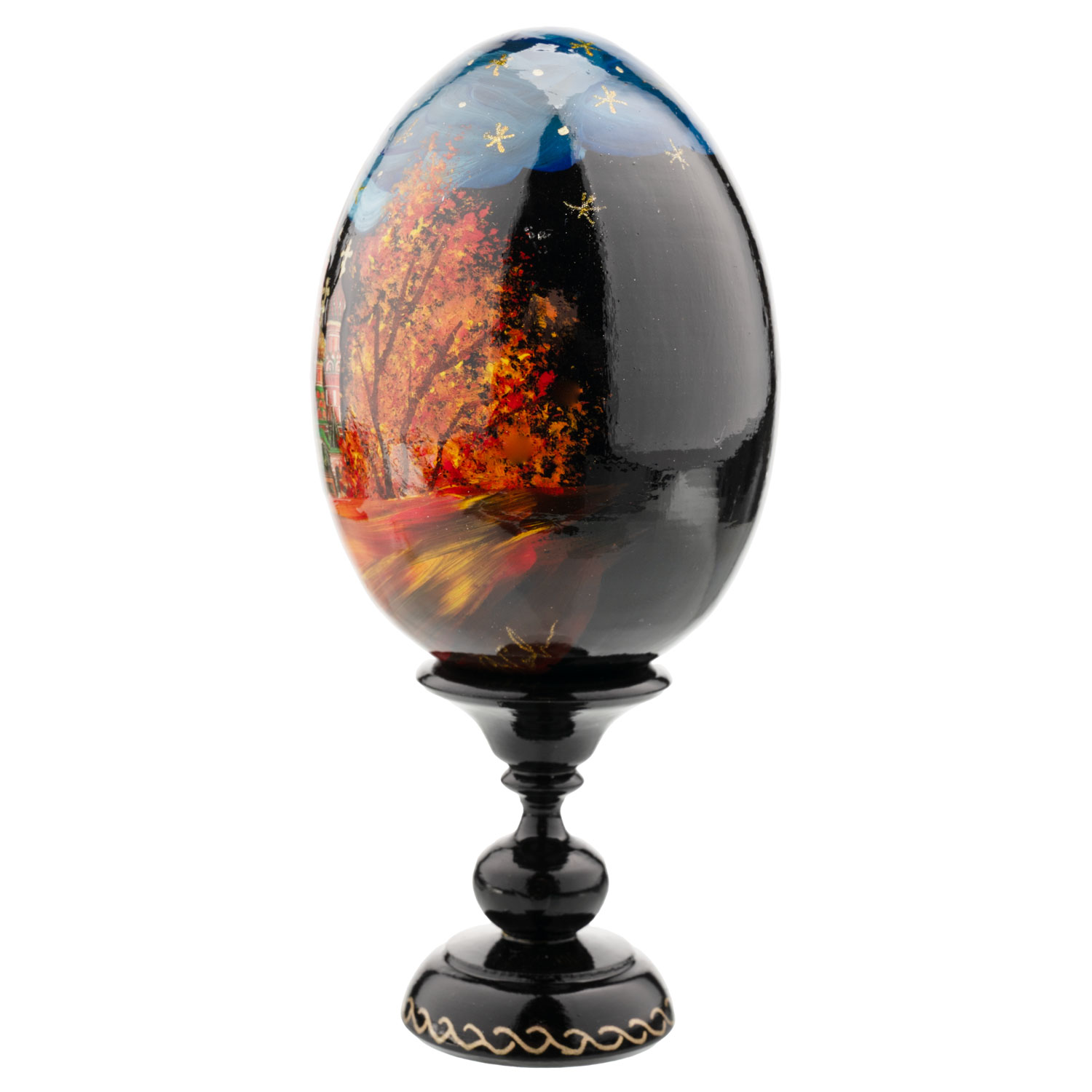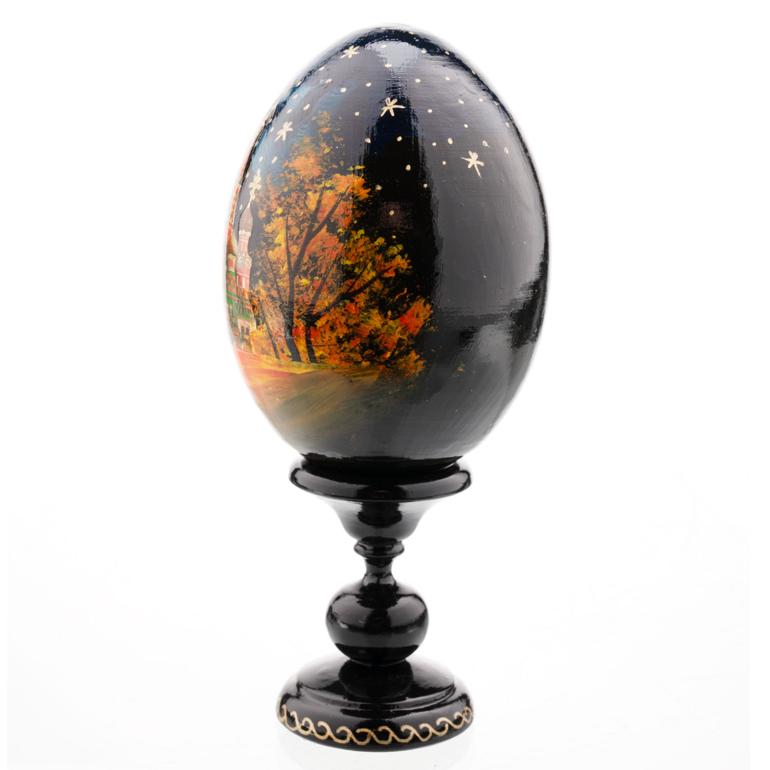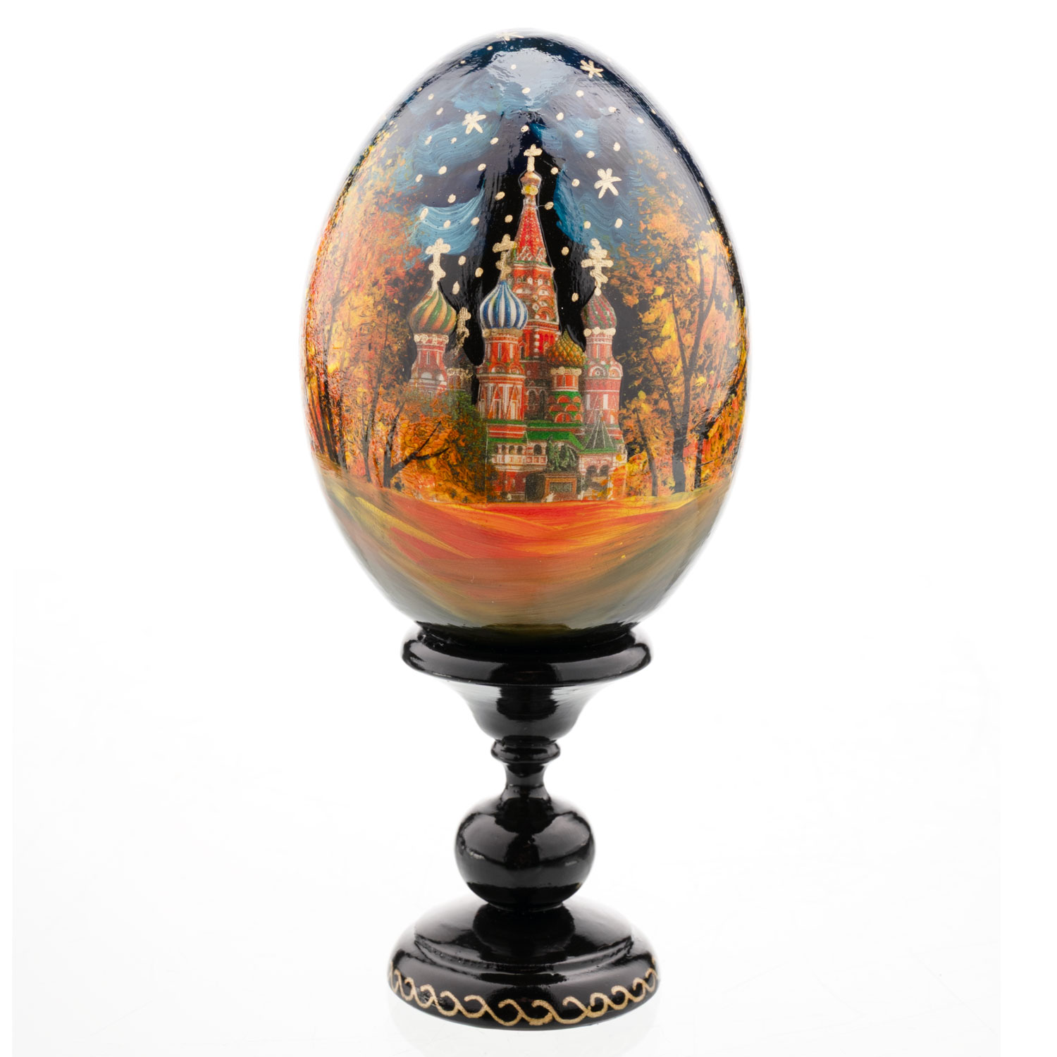 Деревянное пасхальное яйцо на подставке "Москва. Храм Василия Блаженного".