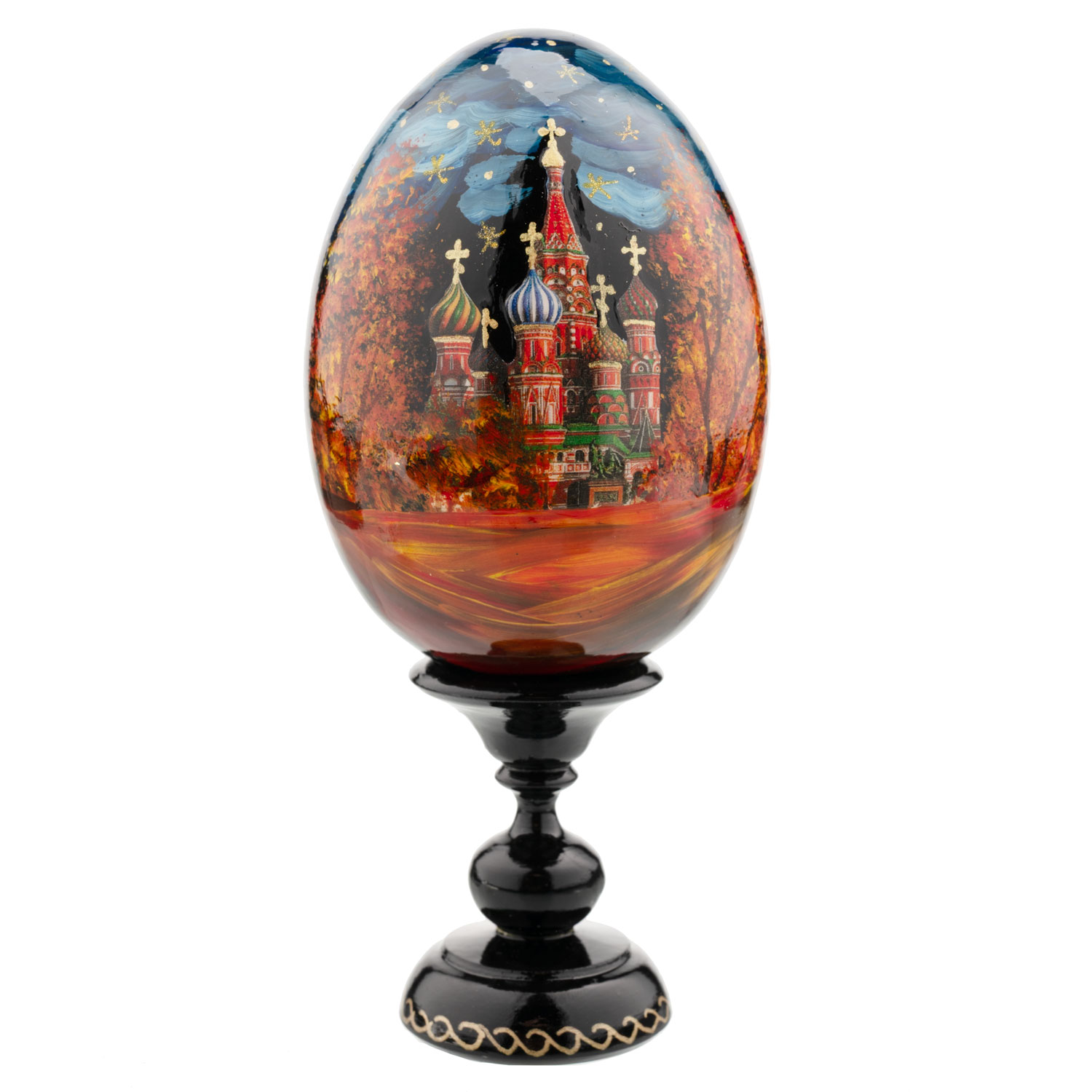 Деревянное пасхальное яйцо на подставке "Москва. Храм Василия Блаженного"
