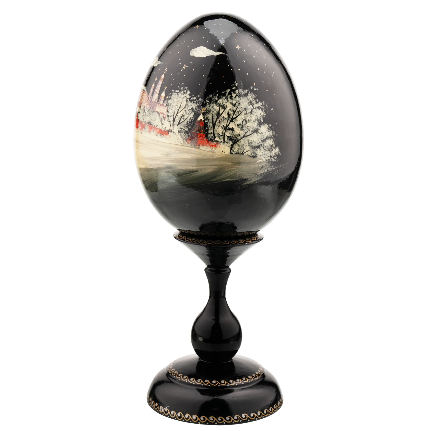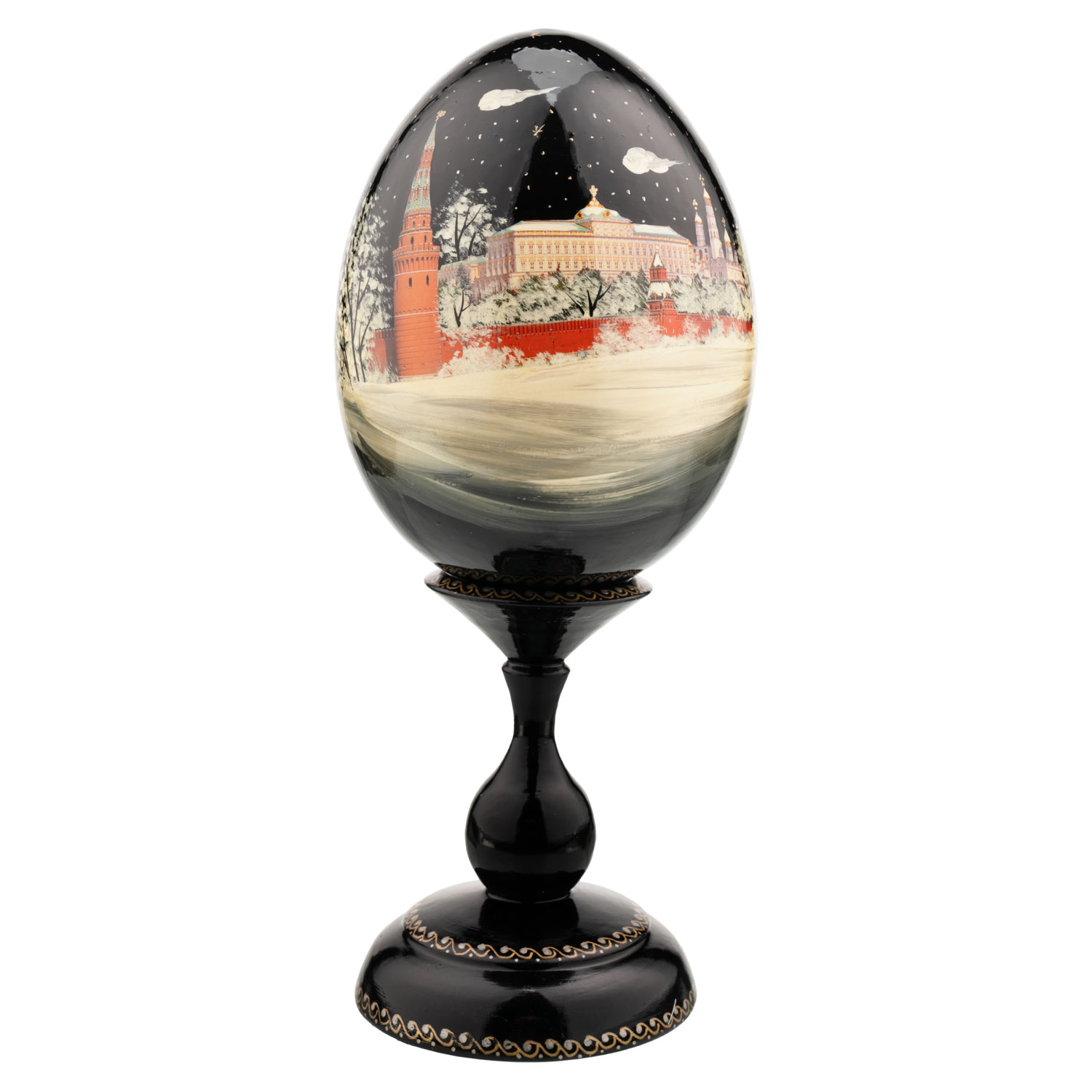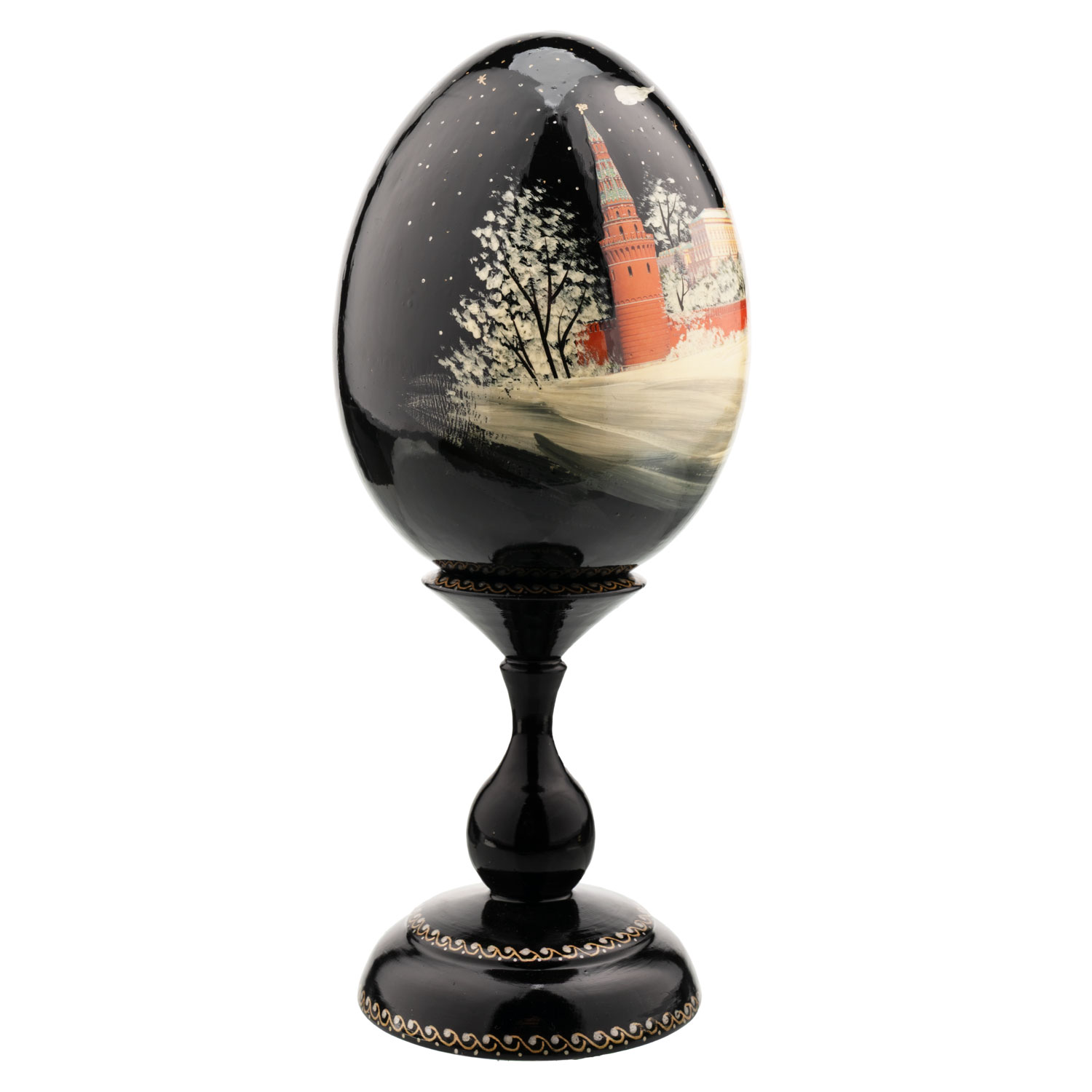 Русские подарки и сувениры → Религиозные подарки → Пасхальные яйца → Деревянное пасхальное яйцо на подставке "Москва. Кремль"