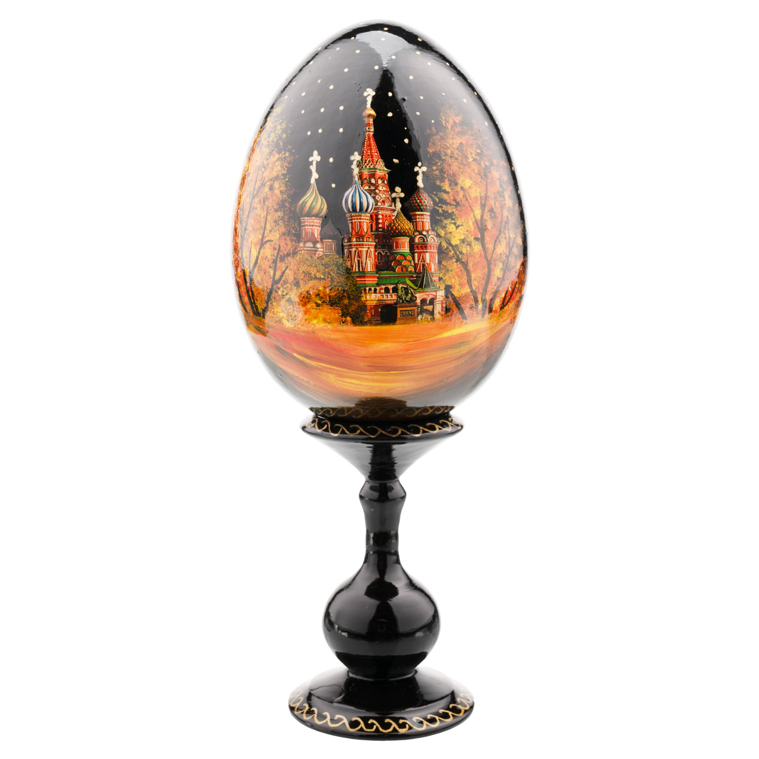 Деревянное пасхальное яйцо на подставке "Москва. Храм Василия Блаженного"
