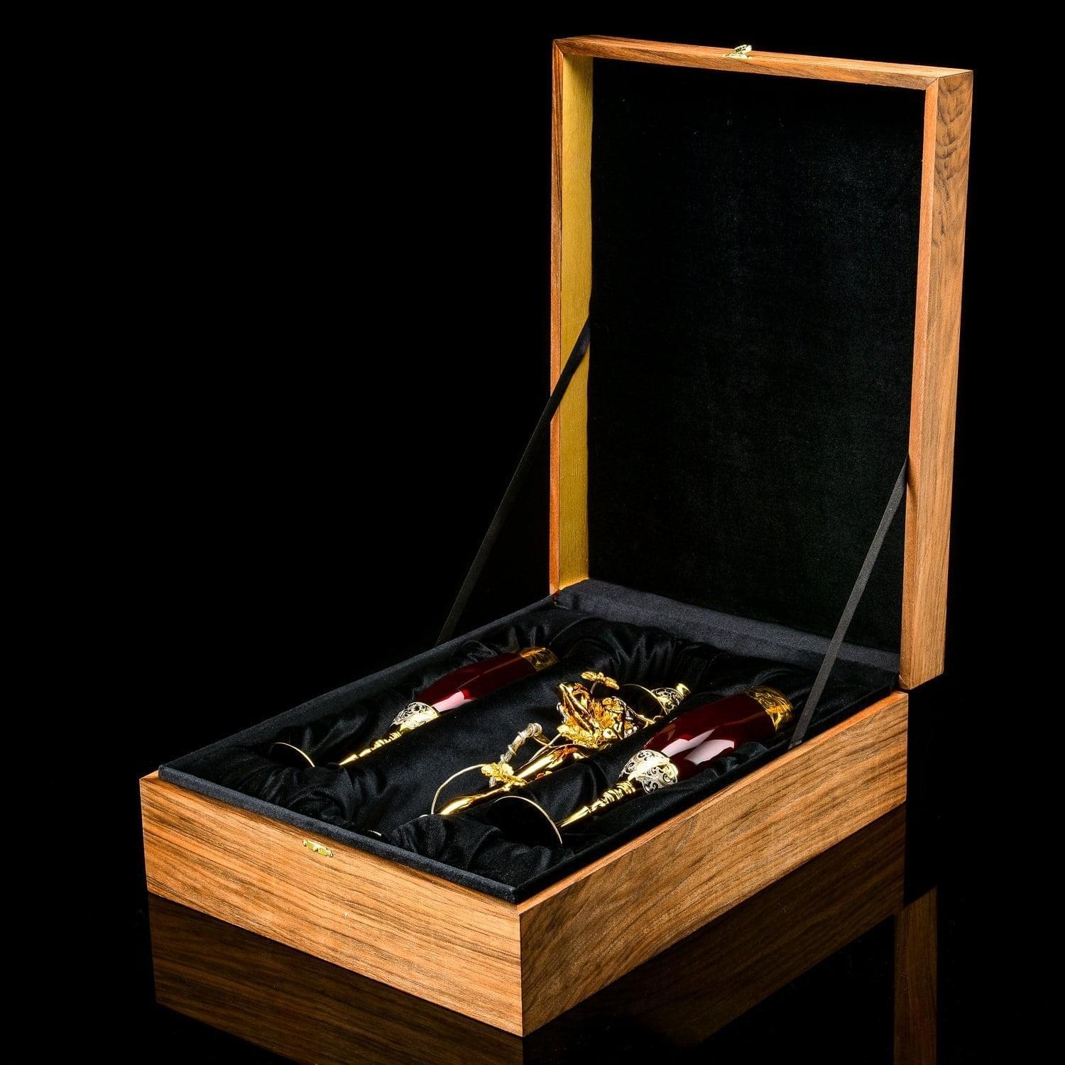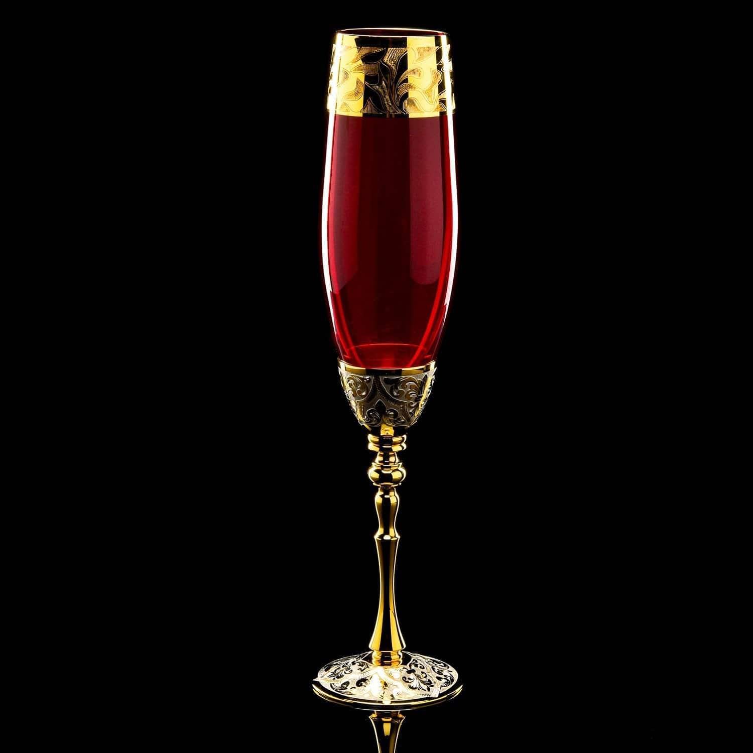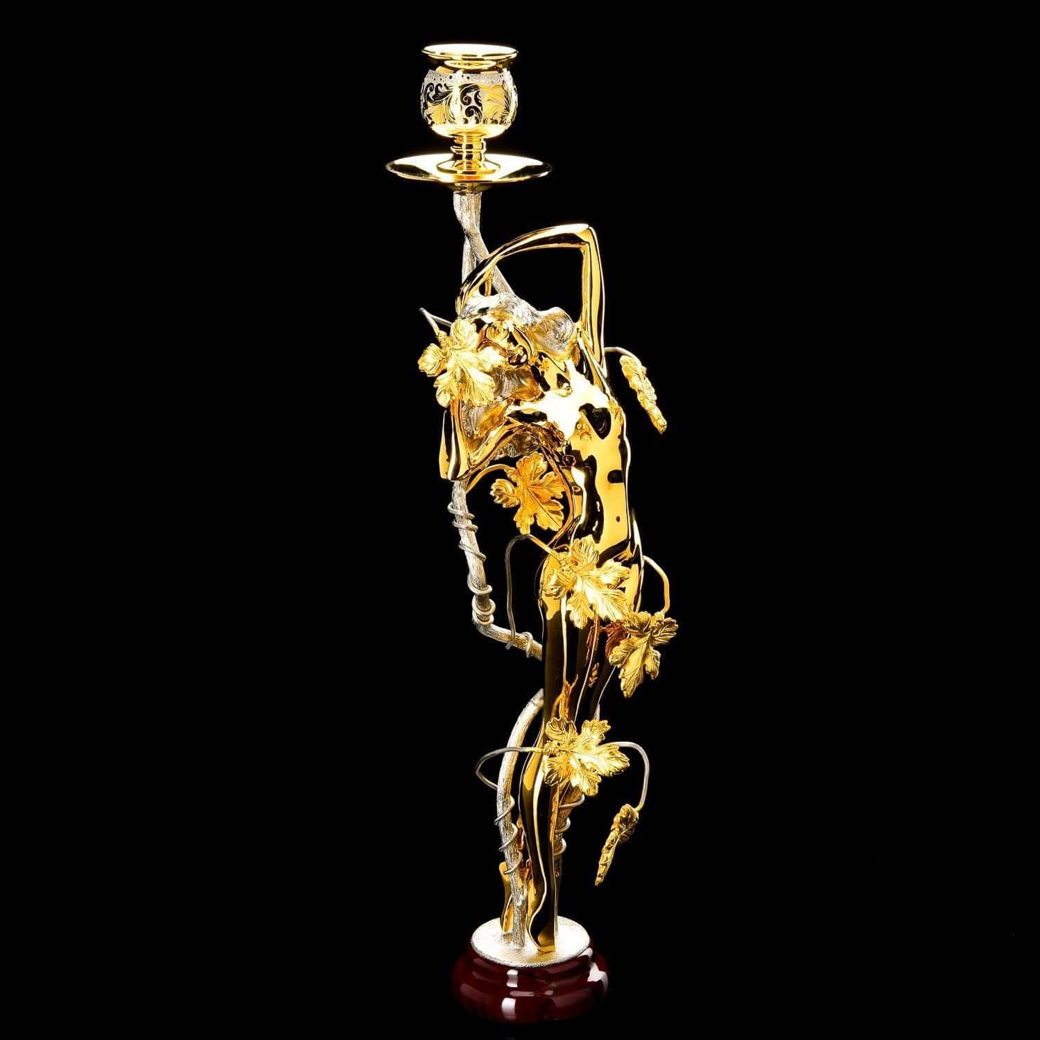 Шампанское - это всегда праздник. Романтическим вечером вы создадите неповторимую атмосферу с помощью эксклюзивных предметов, созданных вручную мастерами Златоуста. Изысканная новинка ассортимента - набор под шампанское Романтик, включающий в себя два грациозных бокала и роскошный подсвечник... Предметы изготовлены с использованием высококачественного чешского стекла. Латунные элементы бокалов и подсвечника отлиты токарями по металлу по авторским эскизам. Замысловатая ножка подсвечника представляет собой скульптура в виде обнаженной богини, тело которой опутывается вьюном, украшенным листьями клена. Ободки бокалов, нижние части их ножек, ниша для свечи украшены гравированным растительным орнаментом в барочном стиле, выполненным резцом и иглой художником-гравером по металлу, объем которому придает никелировка и воронение. Круглый постамент для подсвечника изготовлен из природного минерала и камня-самоцвета яшмы. ....Извините, товар отсутствует