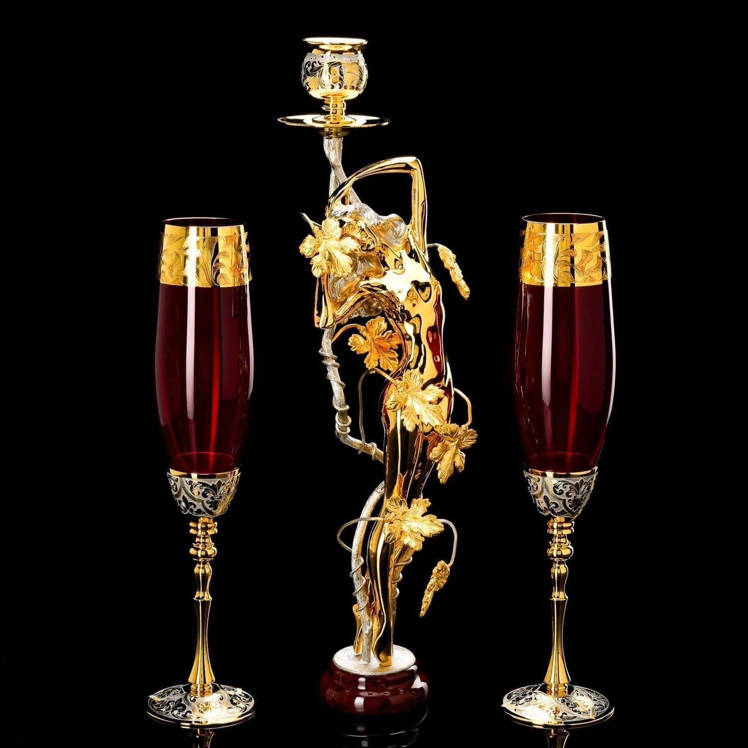 Набор под шампанское "Романтик" (2 бокала, подсвечник) Златоуст