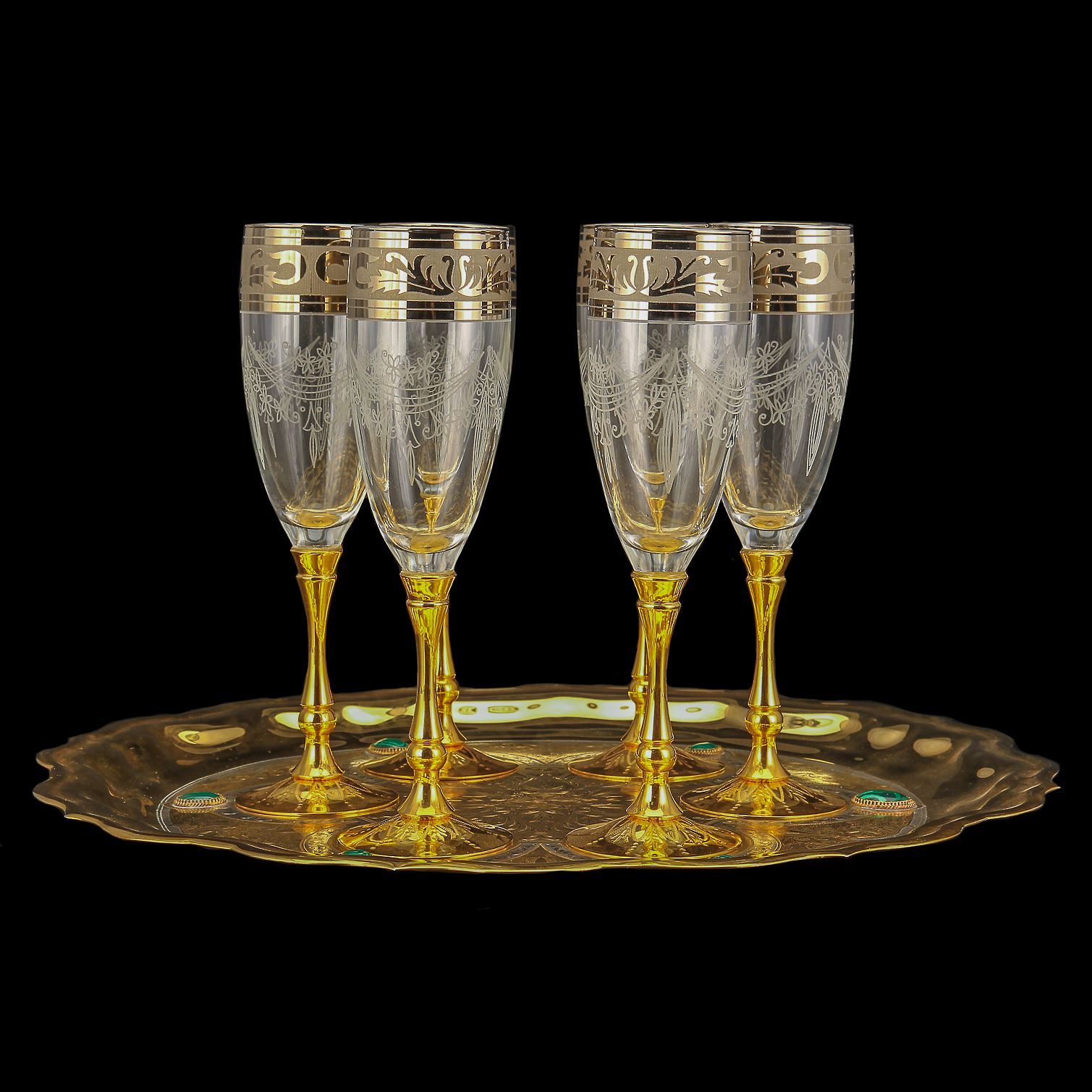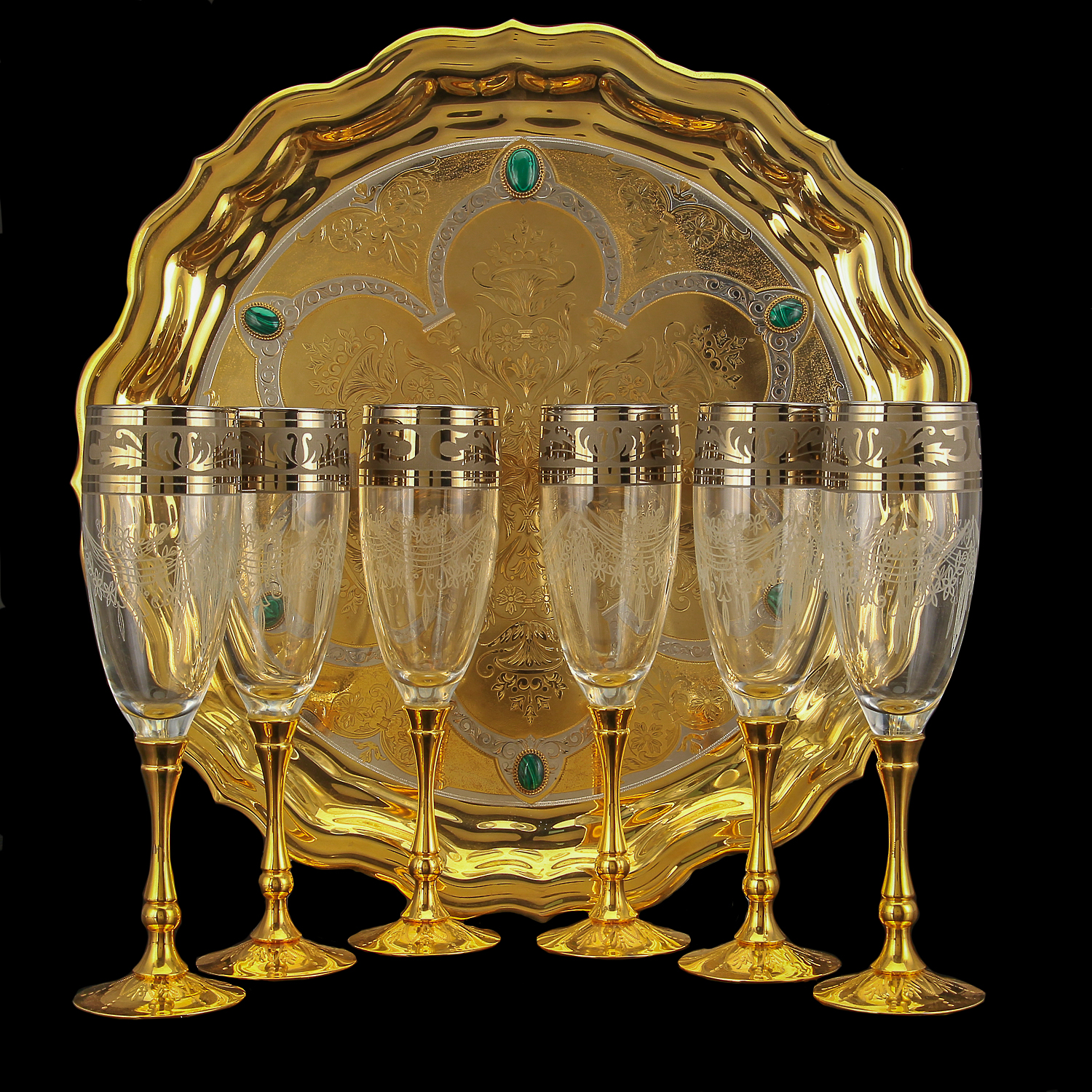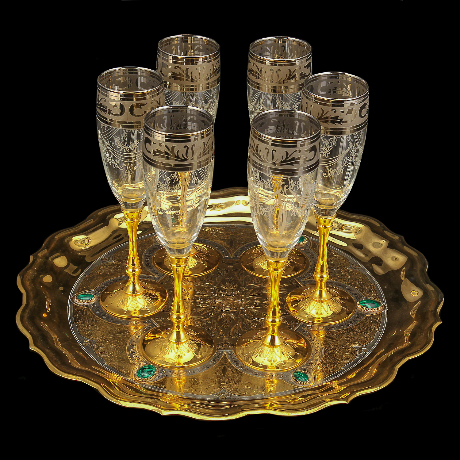 Русские подарки и сувениры → Посуда → Питейные наборы → Питейный набор для шампанского на 6 персон. Златоуст
