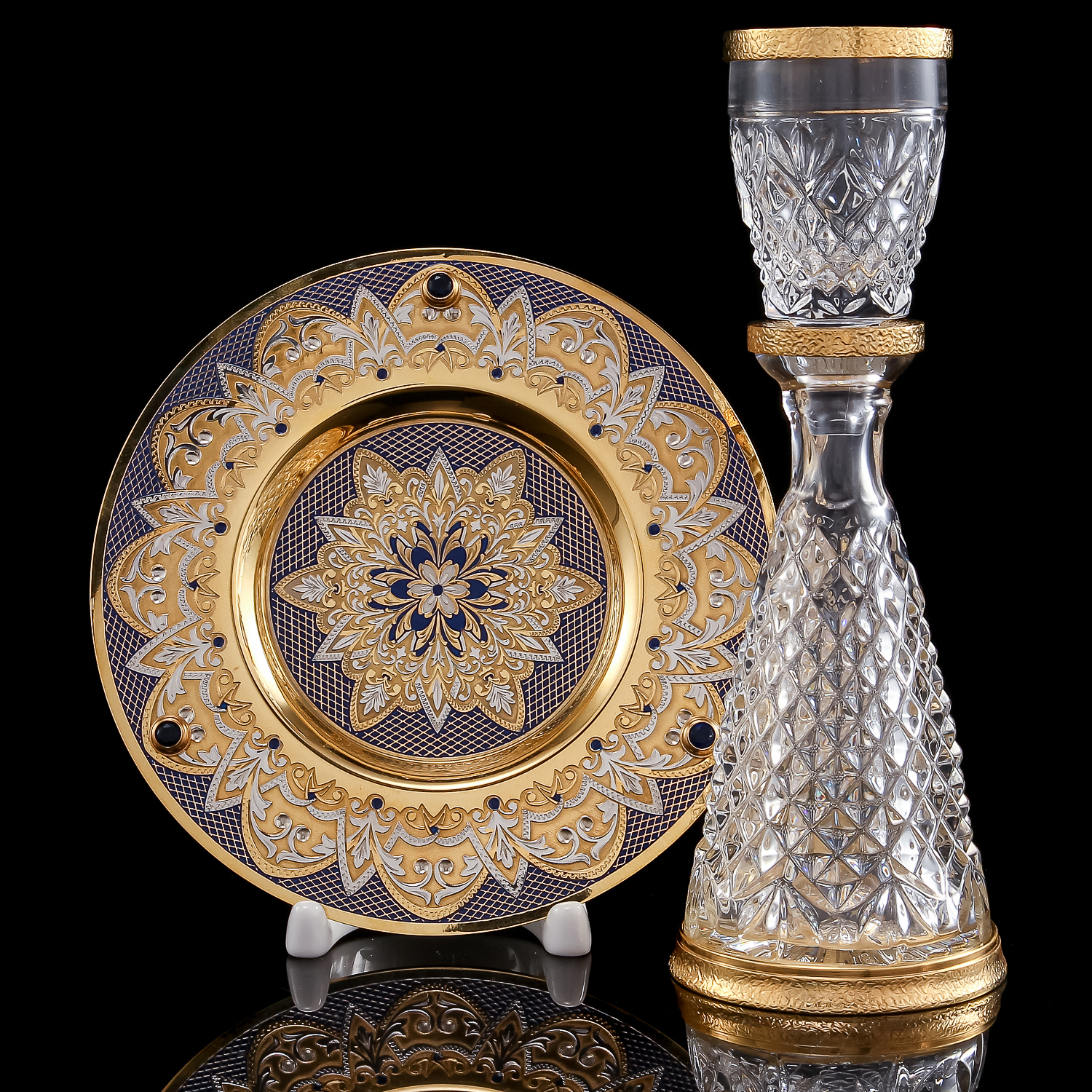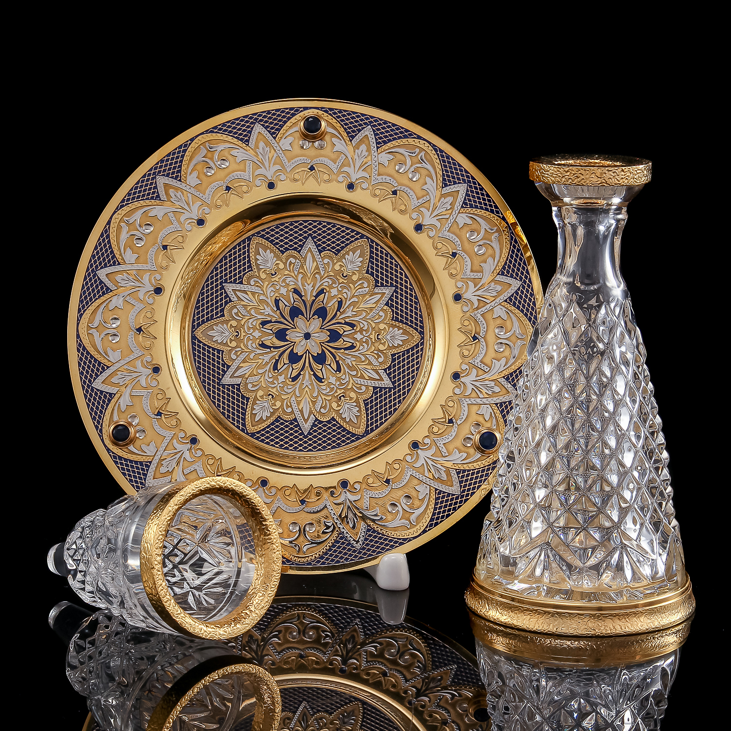 Питейный набор "Эгоист". Златоуст.Материалы: латунь, никель, золото 999,9*, хрусталь.
