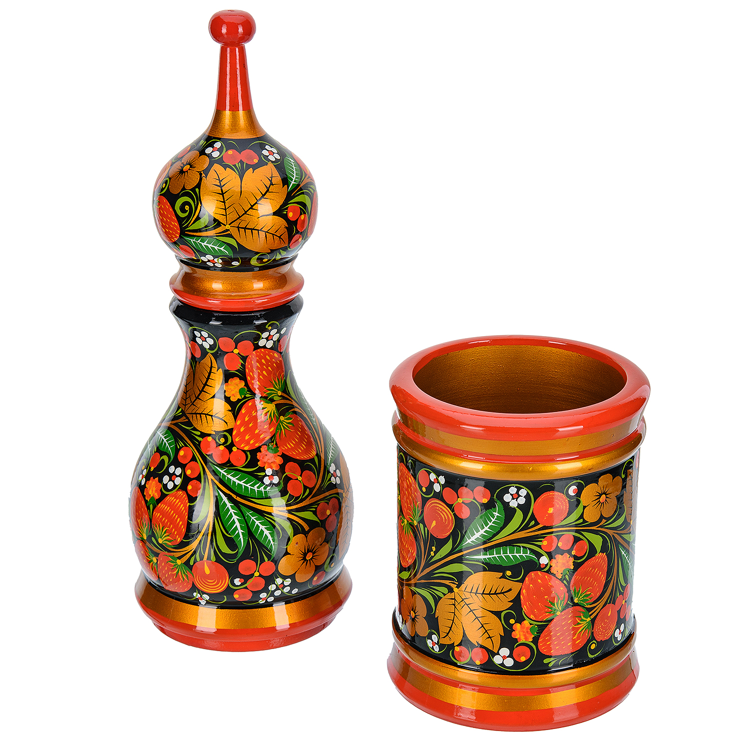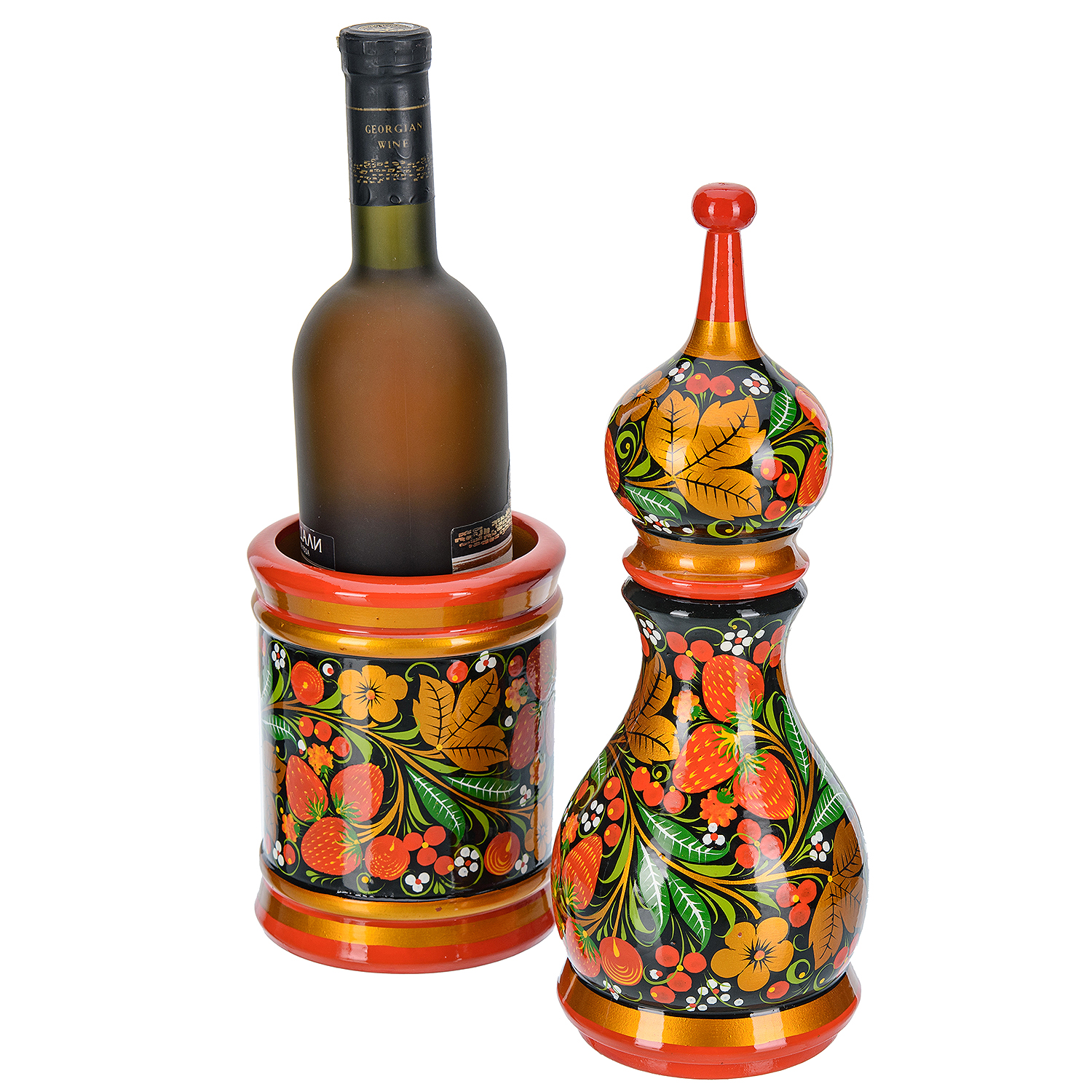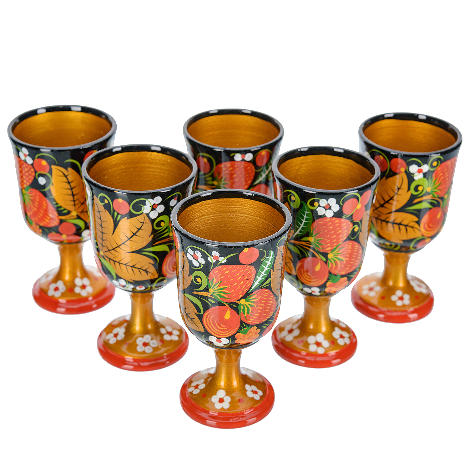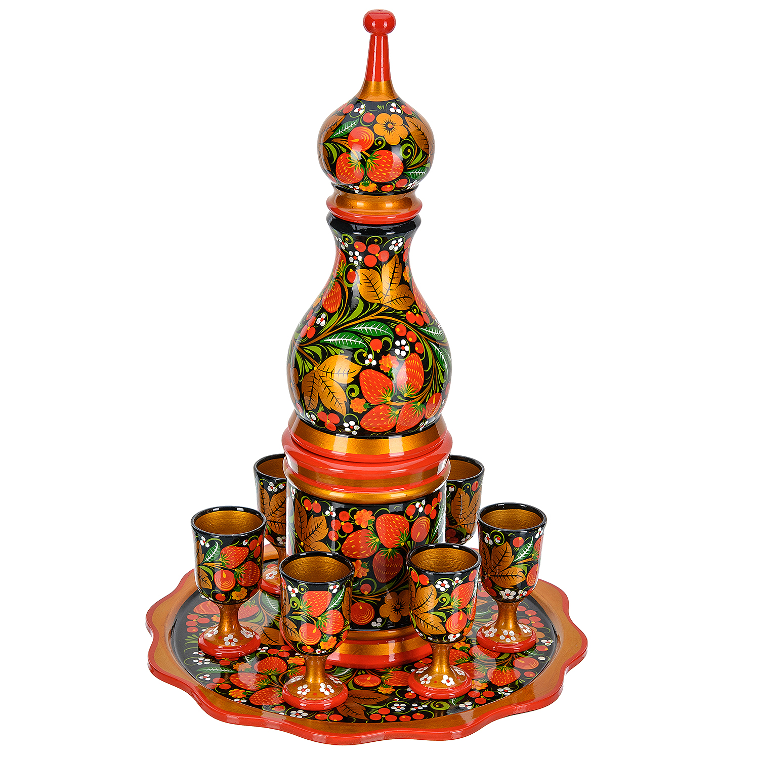Питейный водочный набор на 6 персон "Клубника". Хохлома.