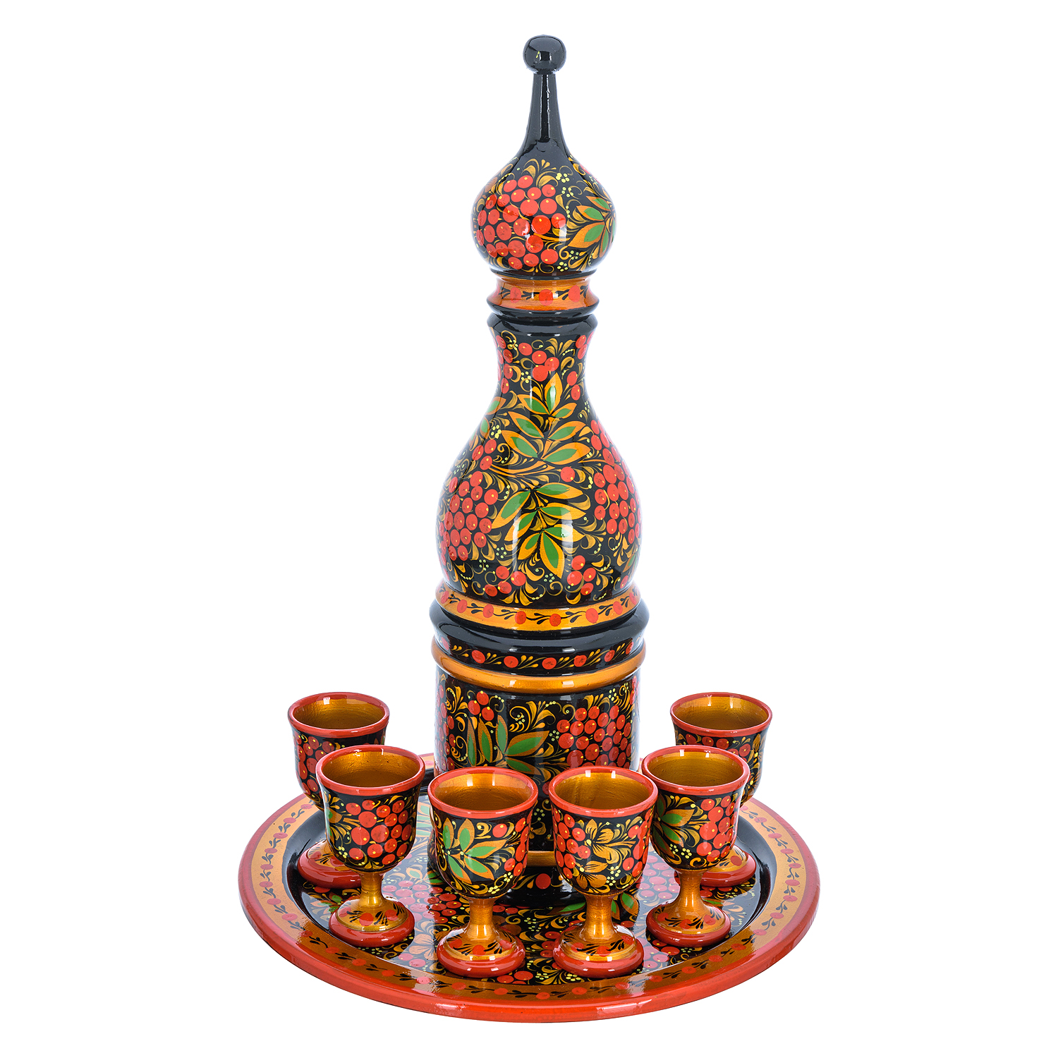 Питейный водочный набор на 6 персон "Рябина". Хохлома