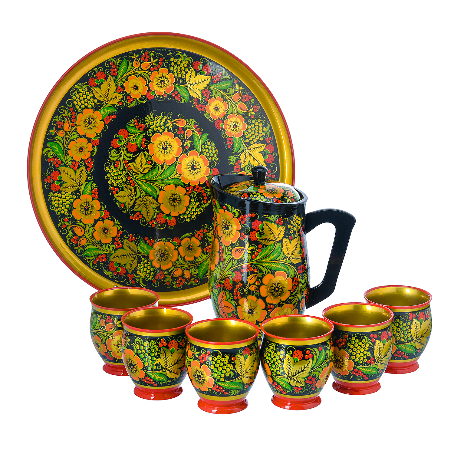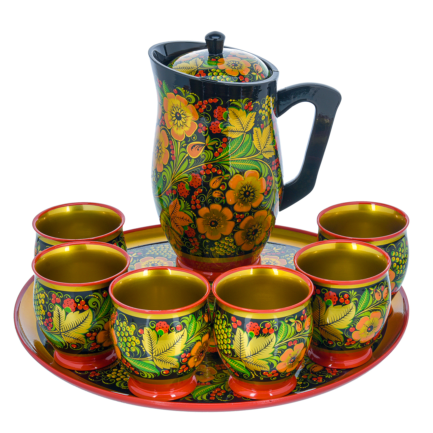 Питейный набор для кваса на 6 персон. Хохлома
