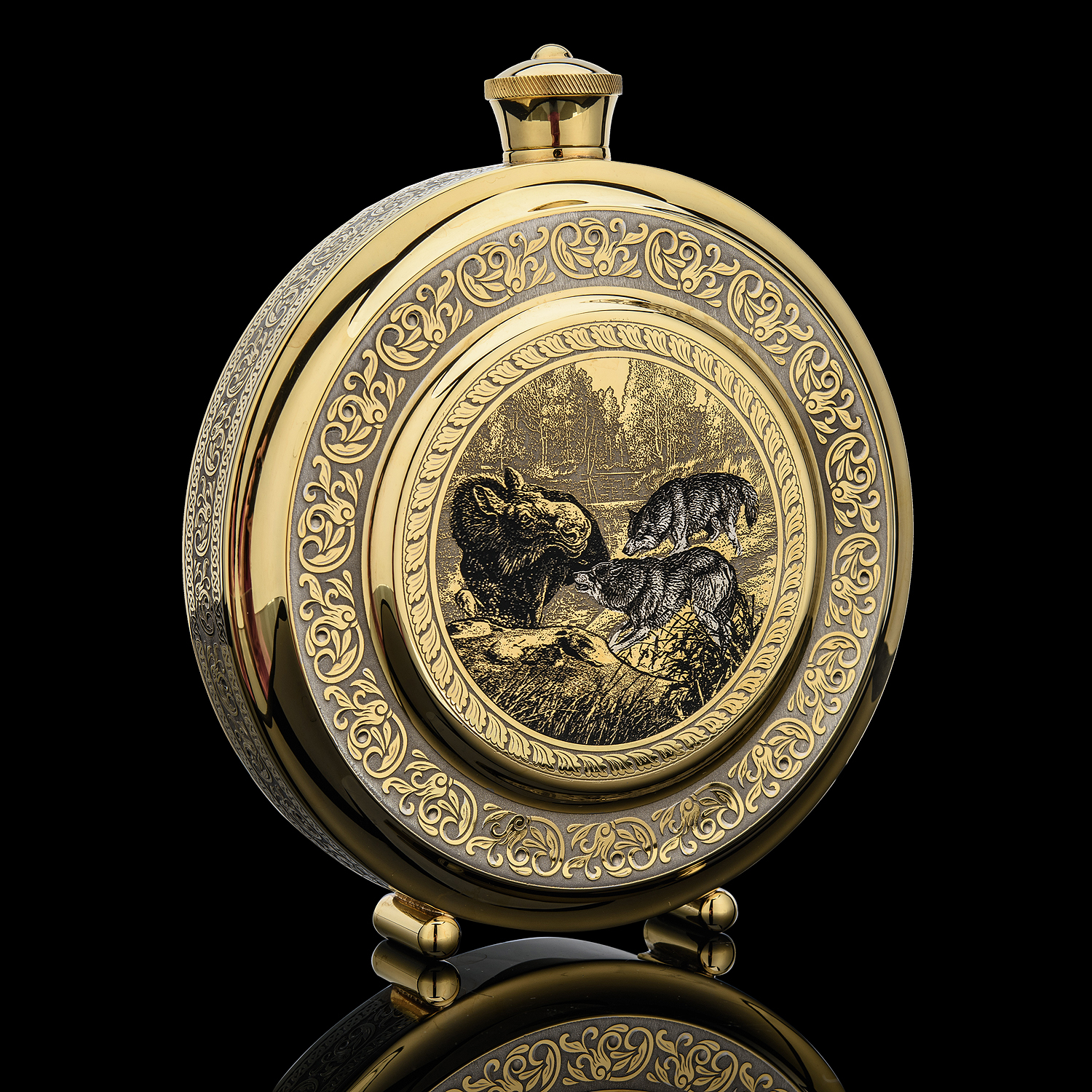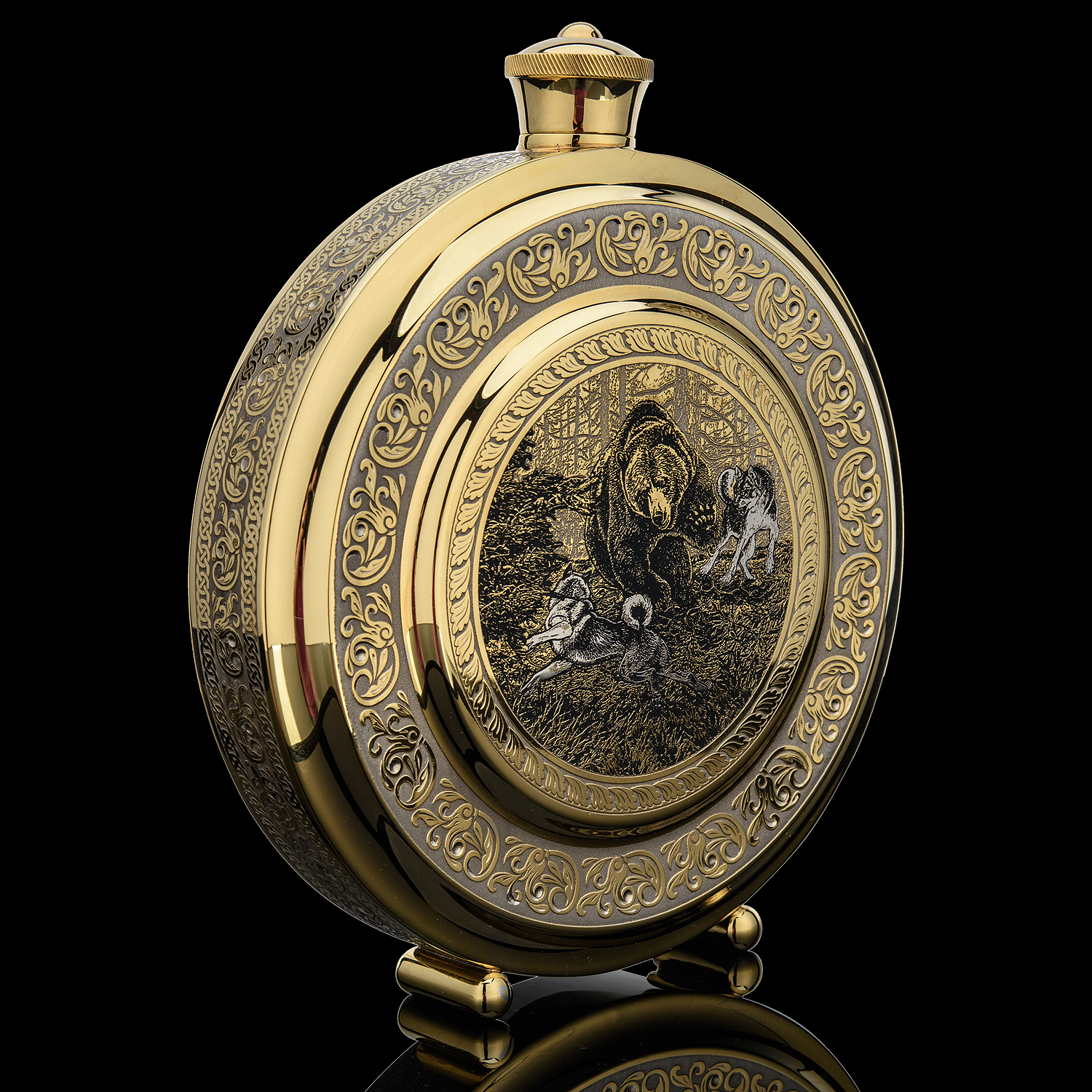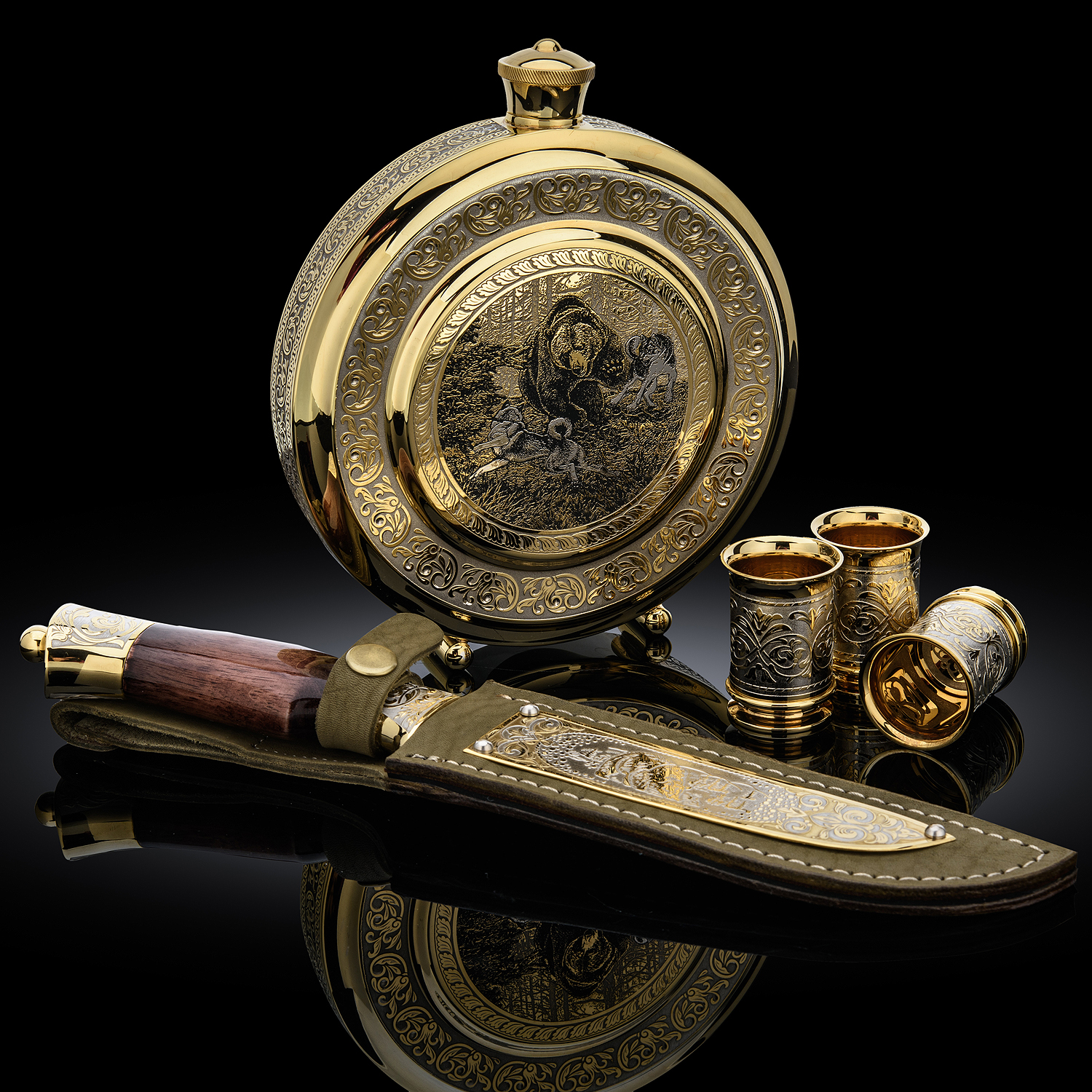 Русские подарки и сувениры → Посуда → Питейные наборы → Питейный набор с флягой "Охотничий". Златоуст