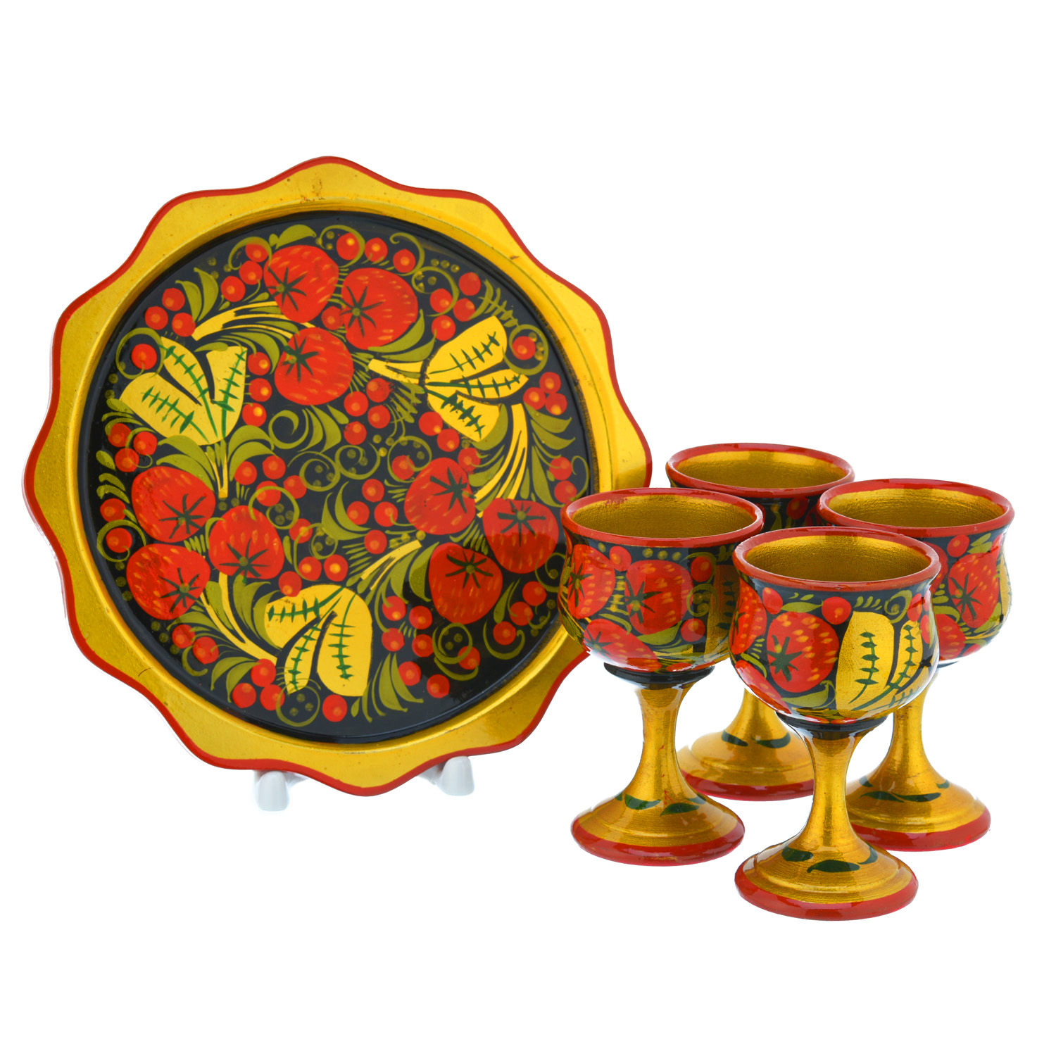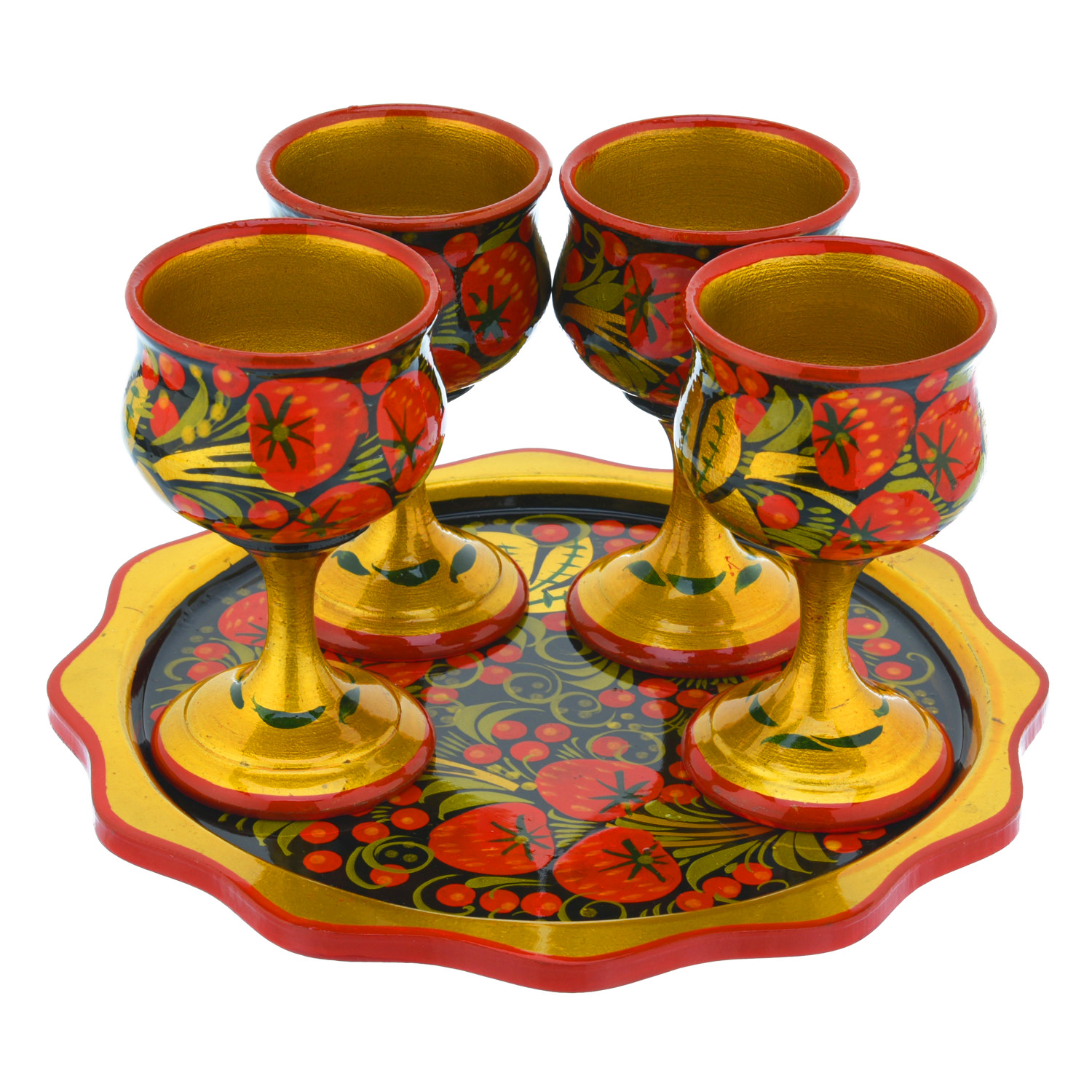Питейный набор на 4 персоны "Ягоды". Хохлома