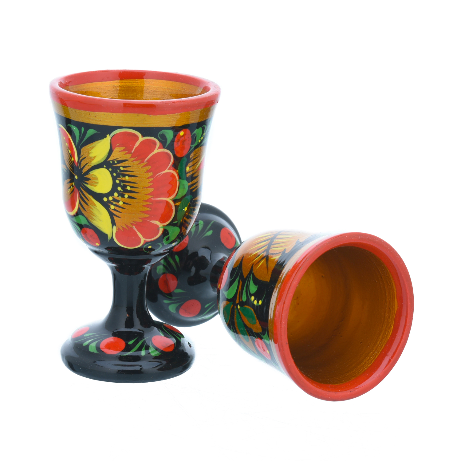 Питейный водочный набор на 6 персон "Цветы". Хохлома