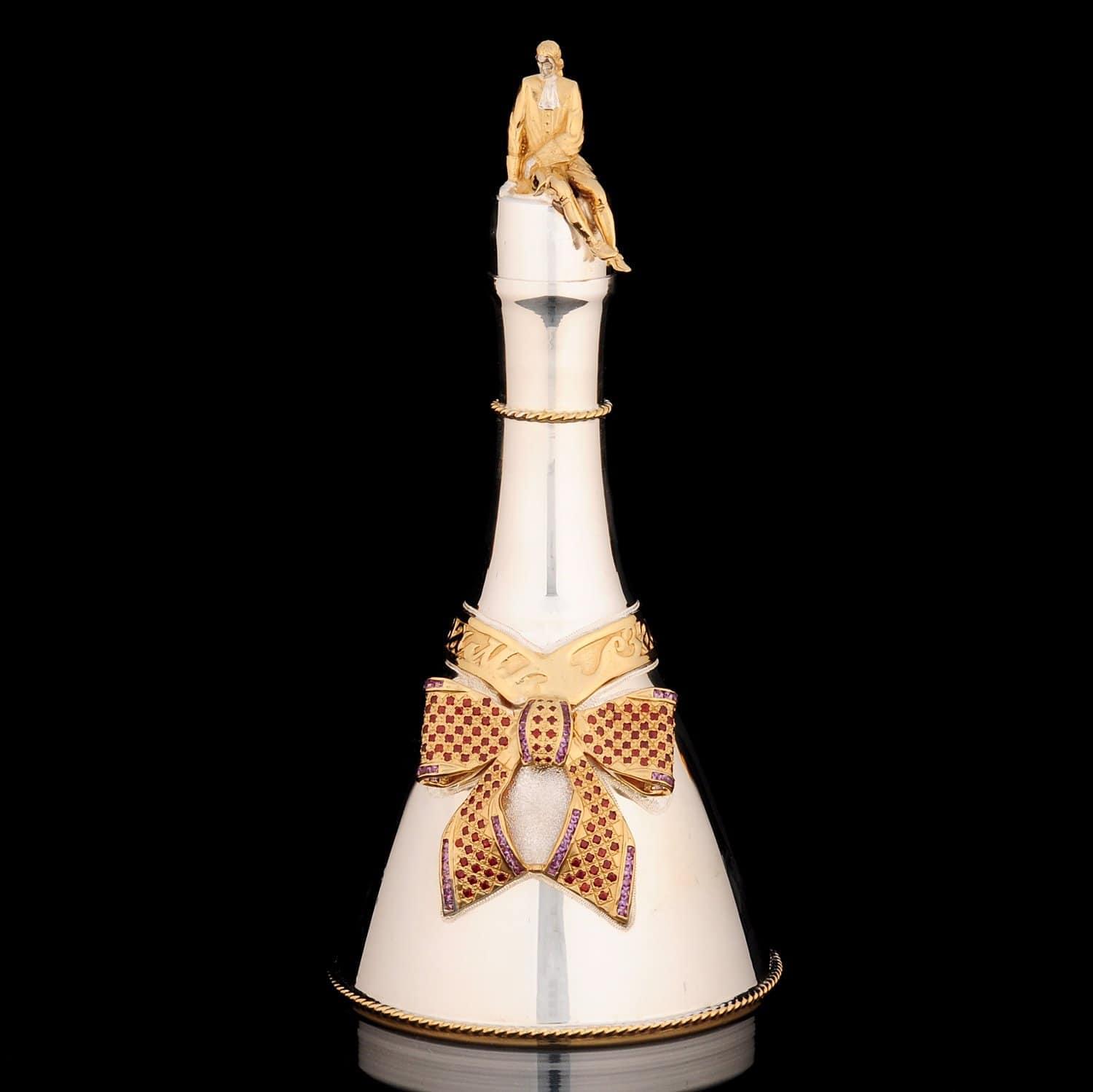 Серебро известно человечеству с древности: как и золото оно часто встречалось в самородном виде, то его не выплавляли из руд. В культурных традициях многих народов металл играл важную роль. Древнейшим центром добычи и обработки серебра стала доисторическая Сардиния, где оно было известно с раннего энеолита. В Ассирии и Вавилоне серебро считалось священным металлом и символизировало Луну. В Средние века серебро и его соединения были востребованы у алхимиков. С середины 13 века из него традиционно начали изготавливать посуду. Серебро по сей день применяется для чеканки юбилейных монет. В мифологии многих народов серебру приписываются магические свойства, способность отгонять оборотней, вампиров, злых духов. Этот драгоценный металл улучшает микрофлору организма человека - устраняет вредную загрязненную и налаживает полезную; нейтрализует вирусы-возбудители смертельно опасных заболеваний. Бактерицидной свойство обусловлено тем, что ионы серебра проникают в эпицентр вируса, уничтожая его изнутри. Размеры: графин - высота 22,5 см, диаметр 8 см. бокал - высота 7 см, диаметр 4 см.