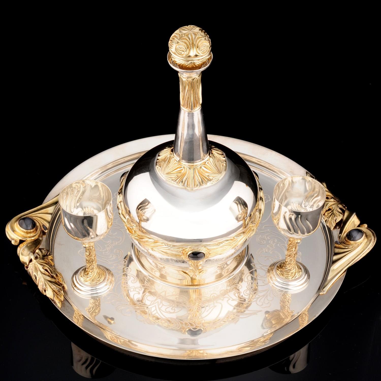 Набор серебряной посуды "Элегия" (графин, 2 рюмки, поднос)