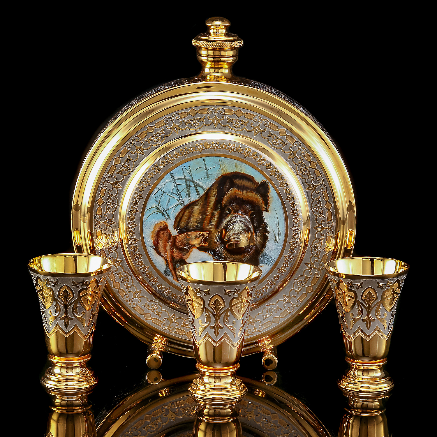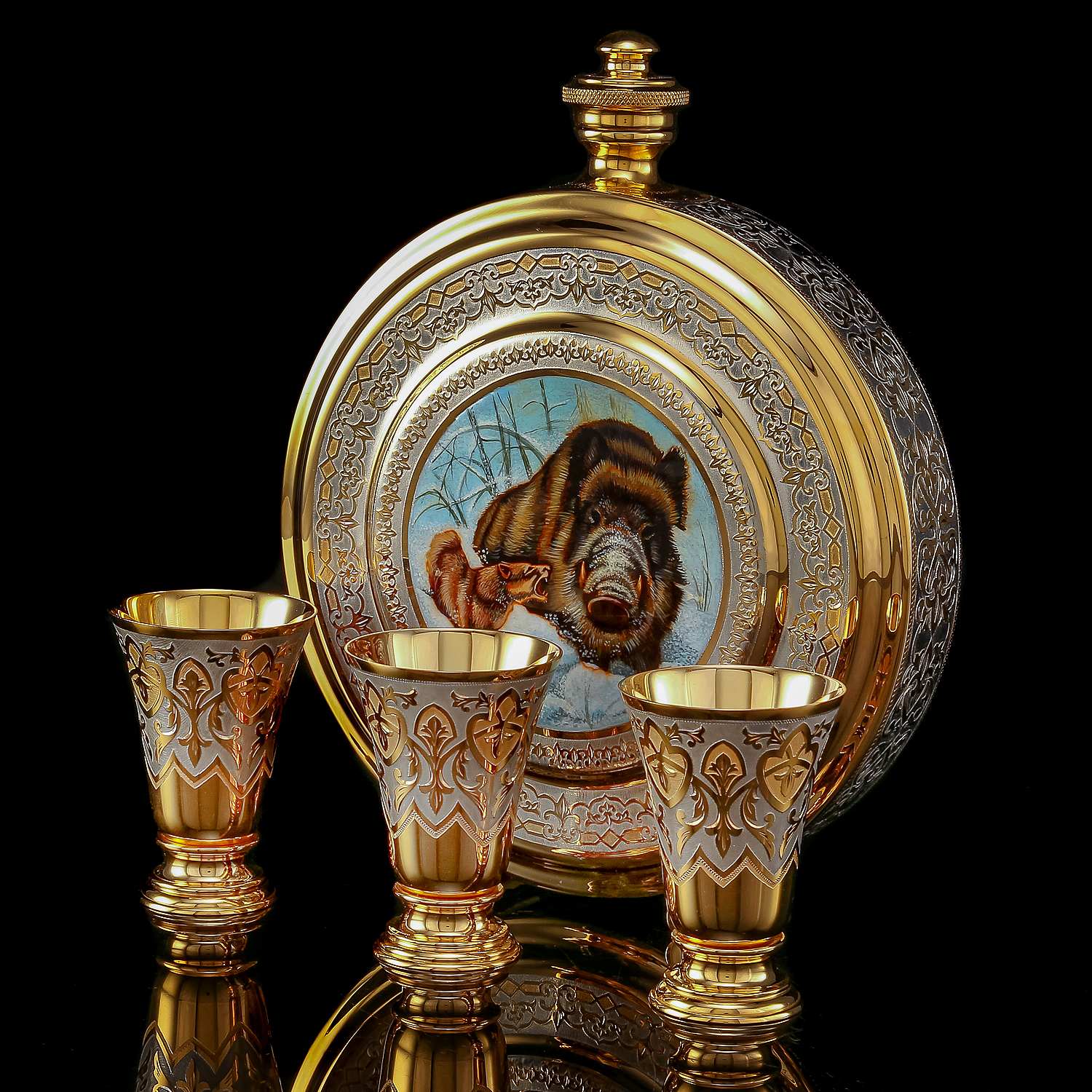 Питейный набор с флягой "Охотничий. Кабан". Златоуст