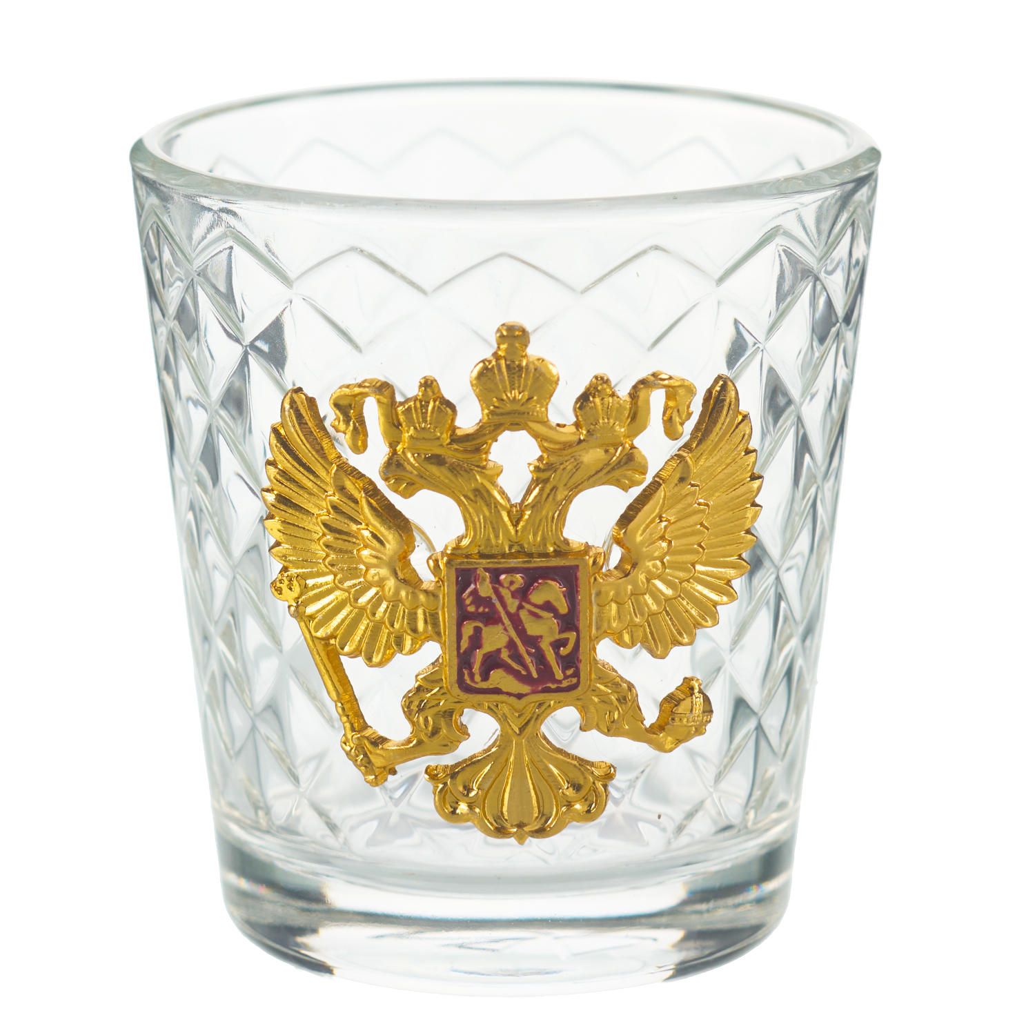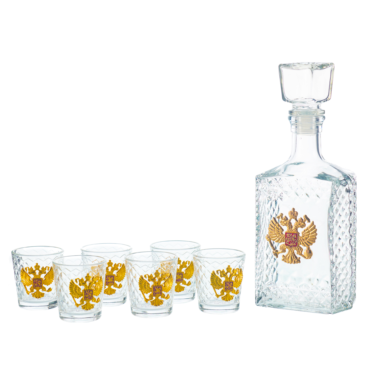 Питейный набор на 6 персон "Герб РФ".Материалы: стекло, латунь, эмаль.