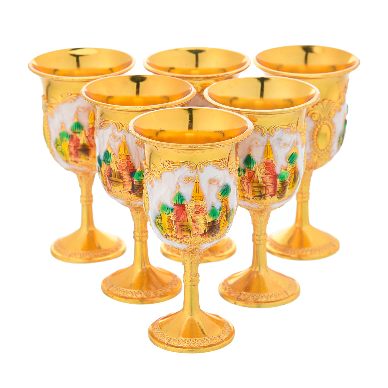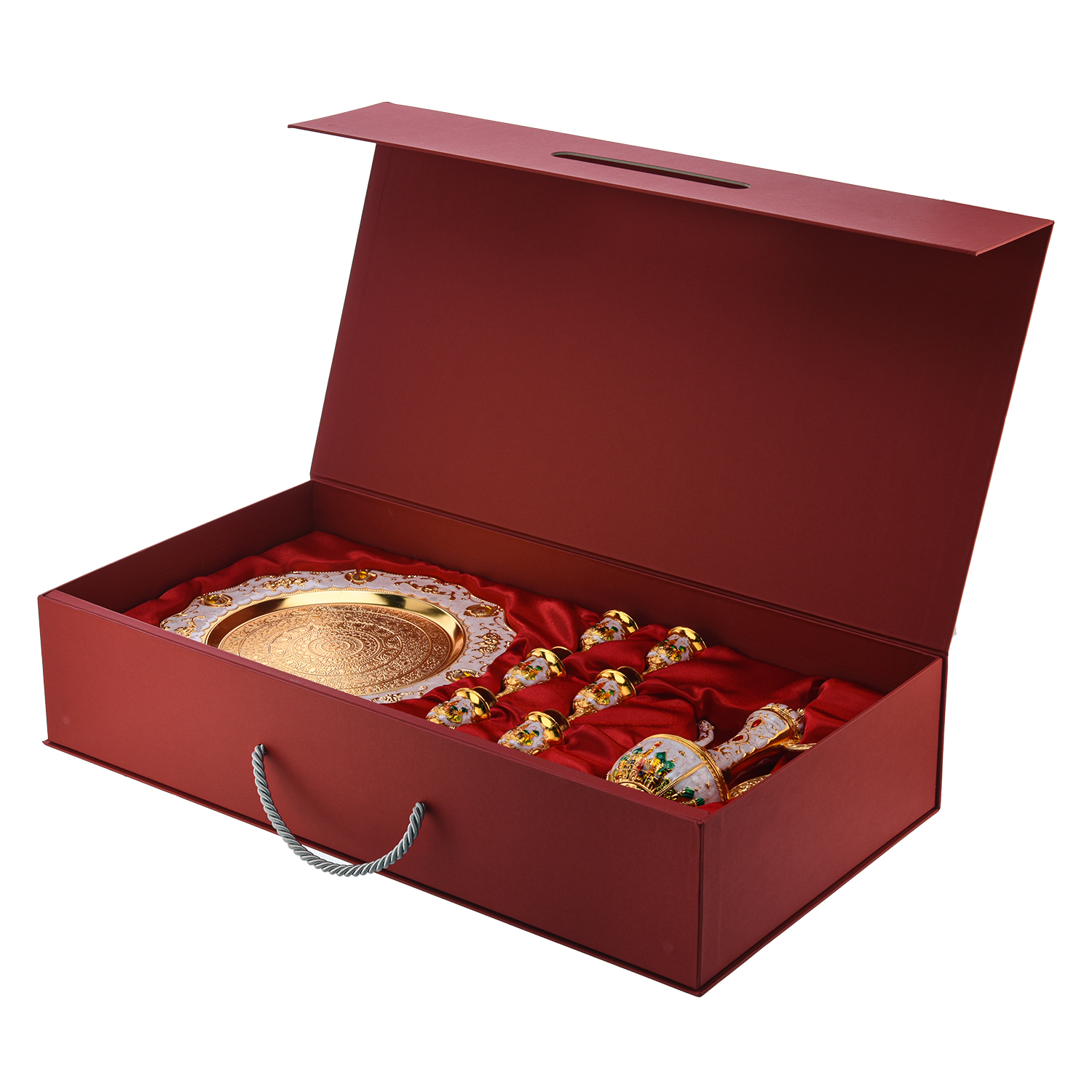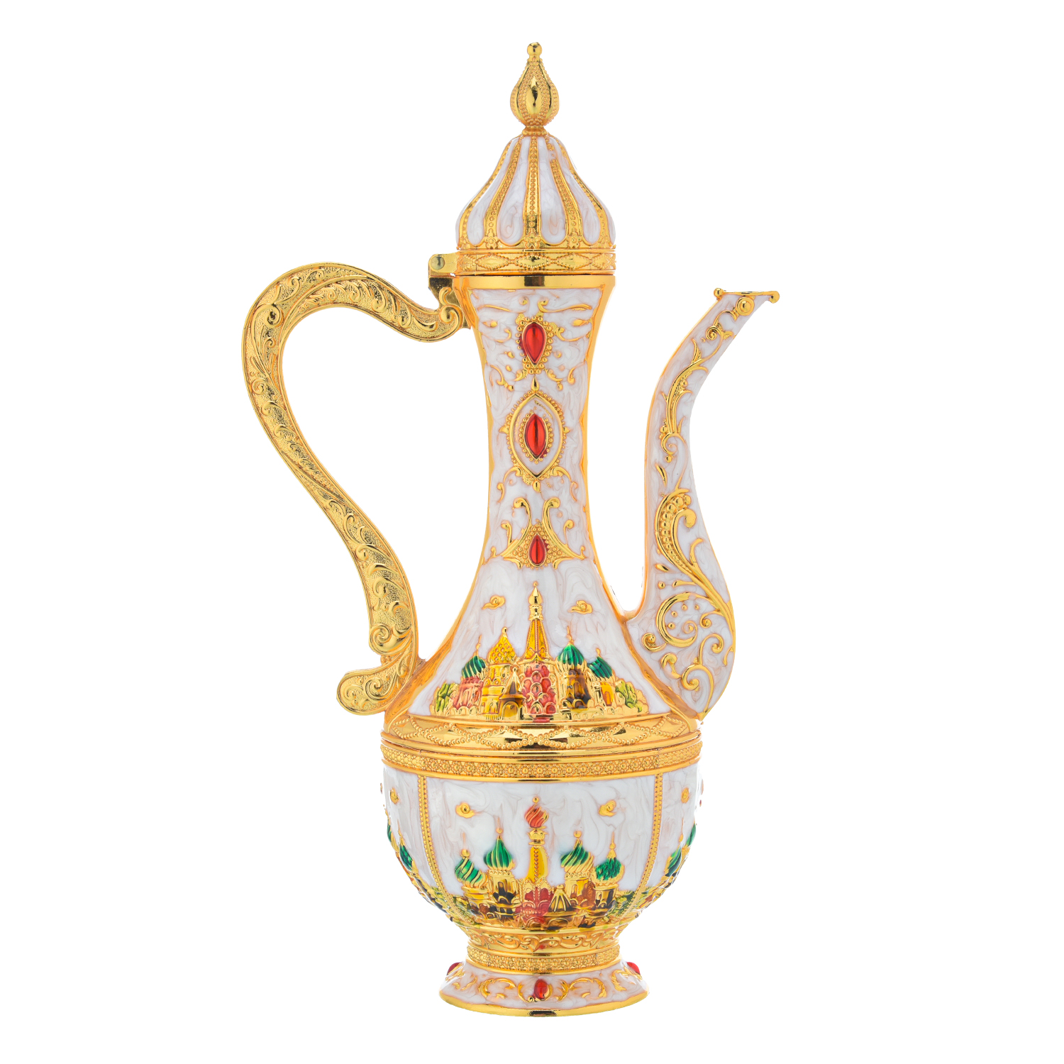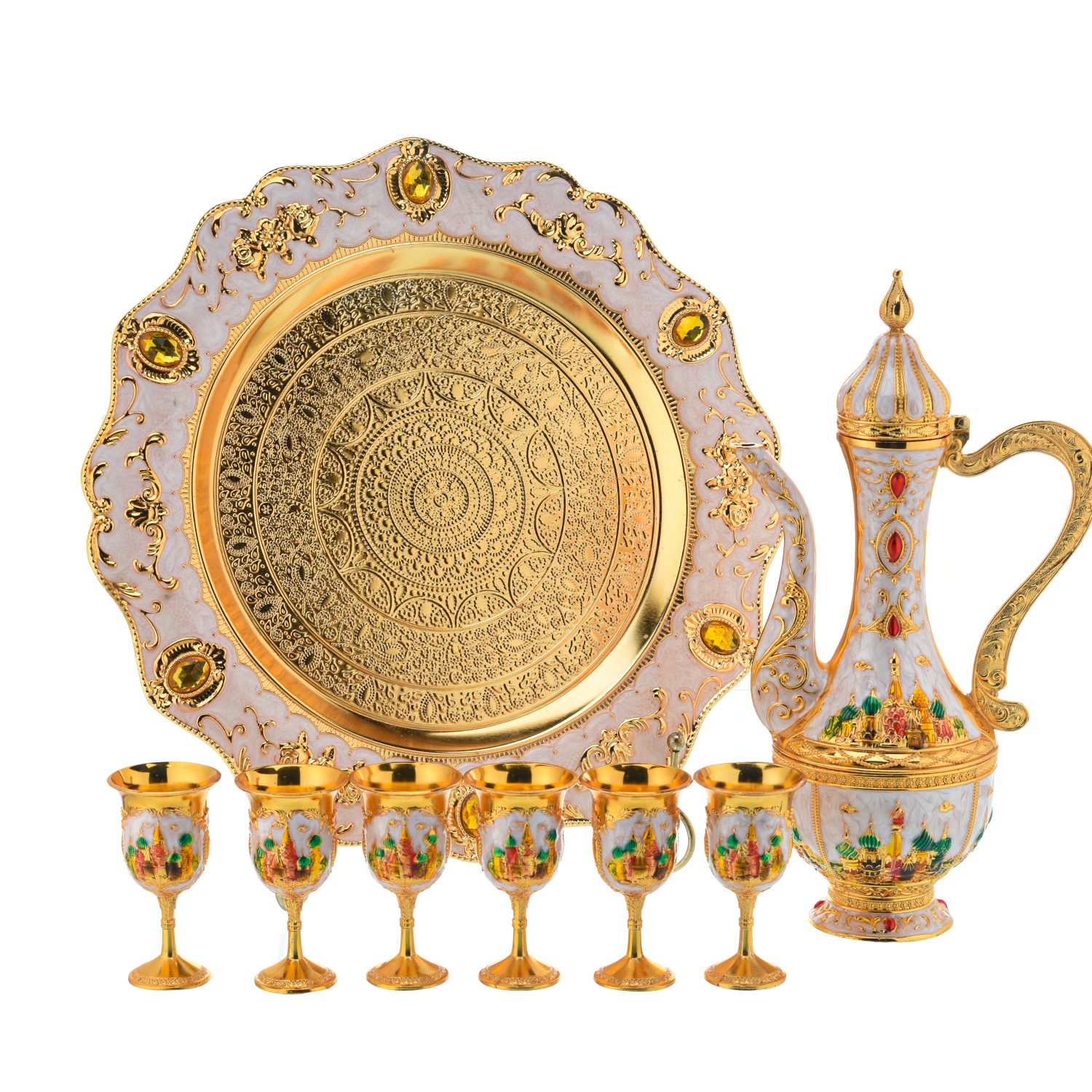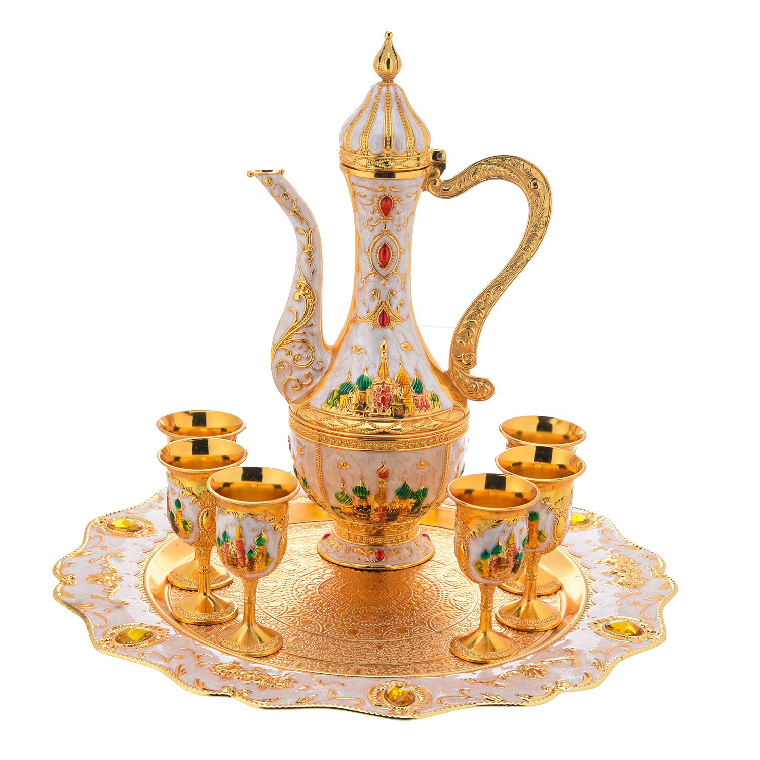 300414-Традиции ФАБЕРЖЕ Сувенир--"ПИТЕЙНЫЙ НАБОР" кувшин+6 рюмок+поднос(зол.) .