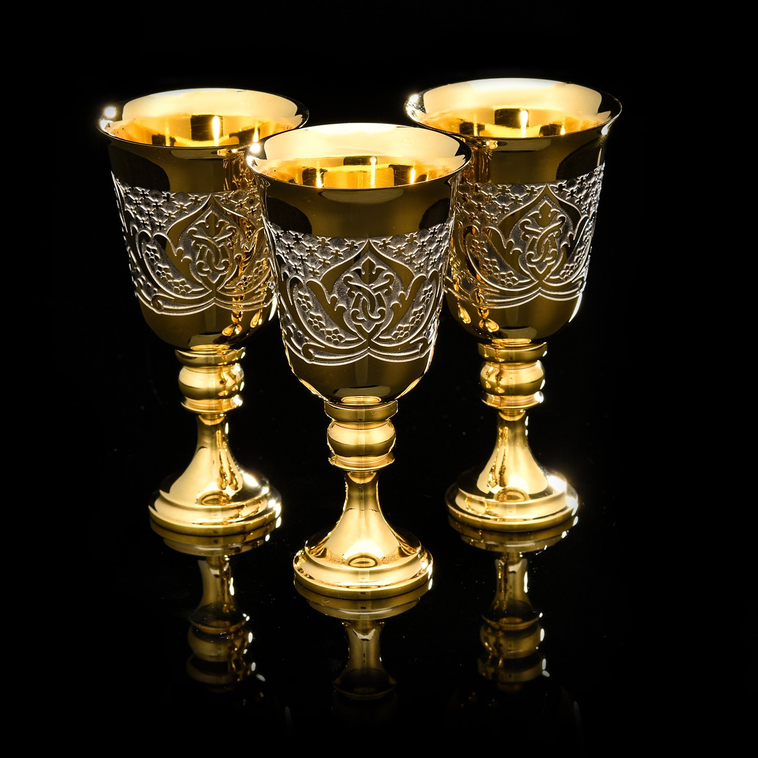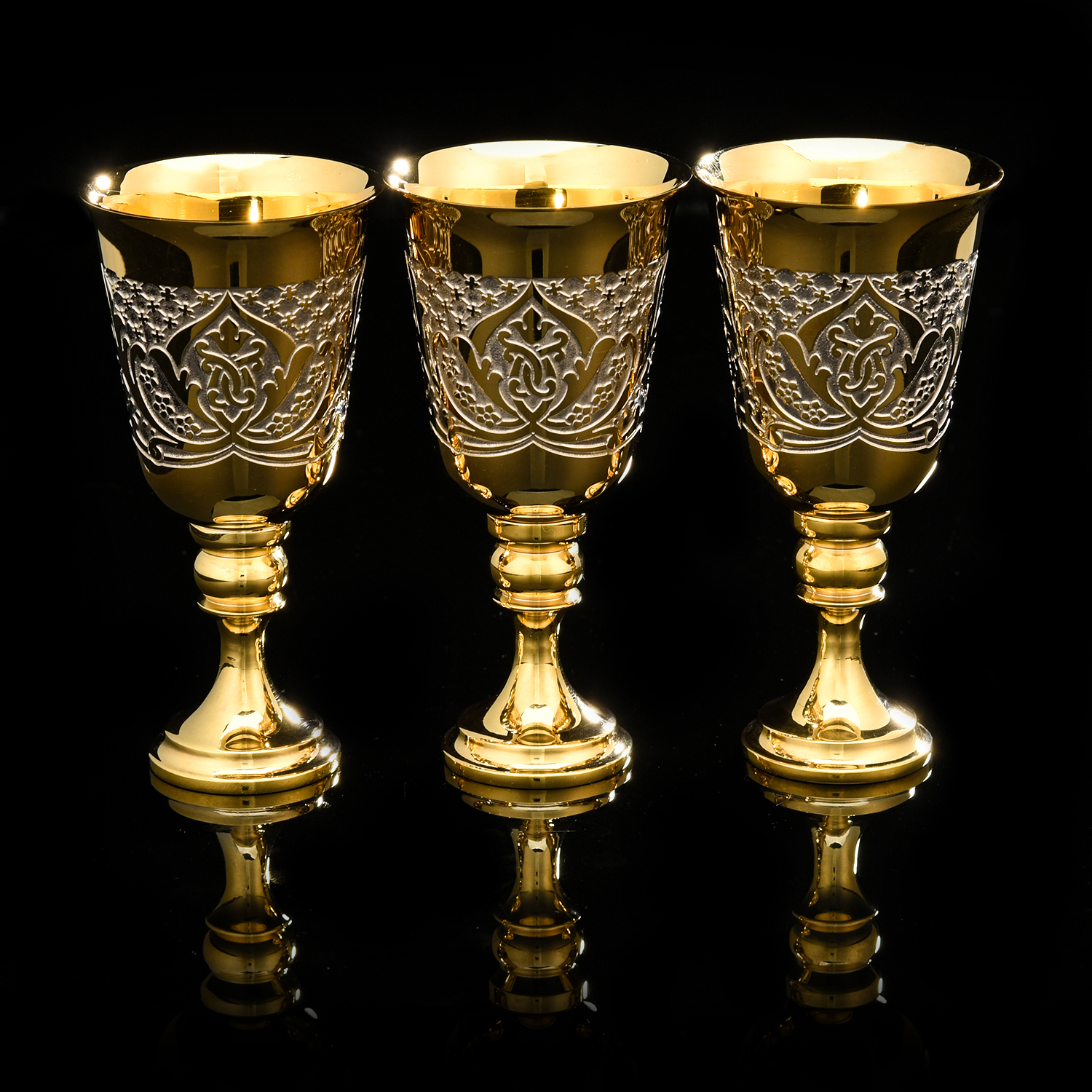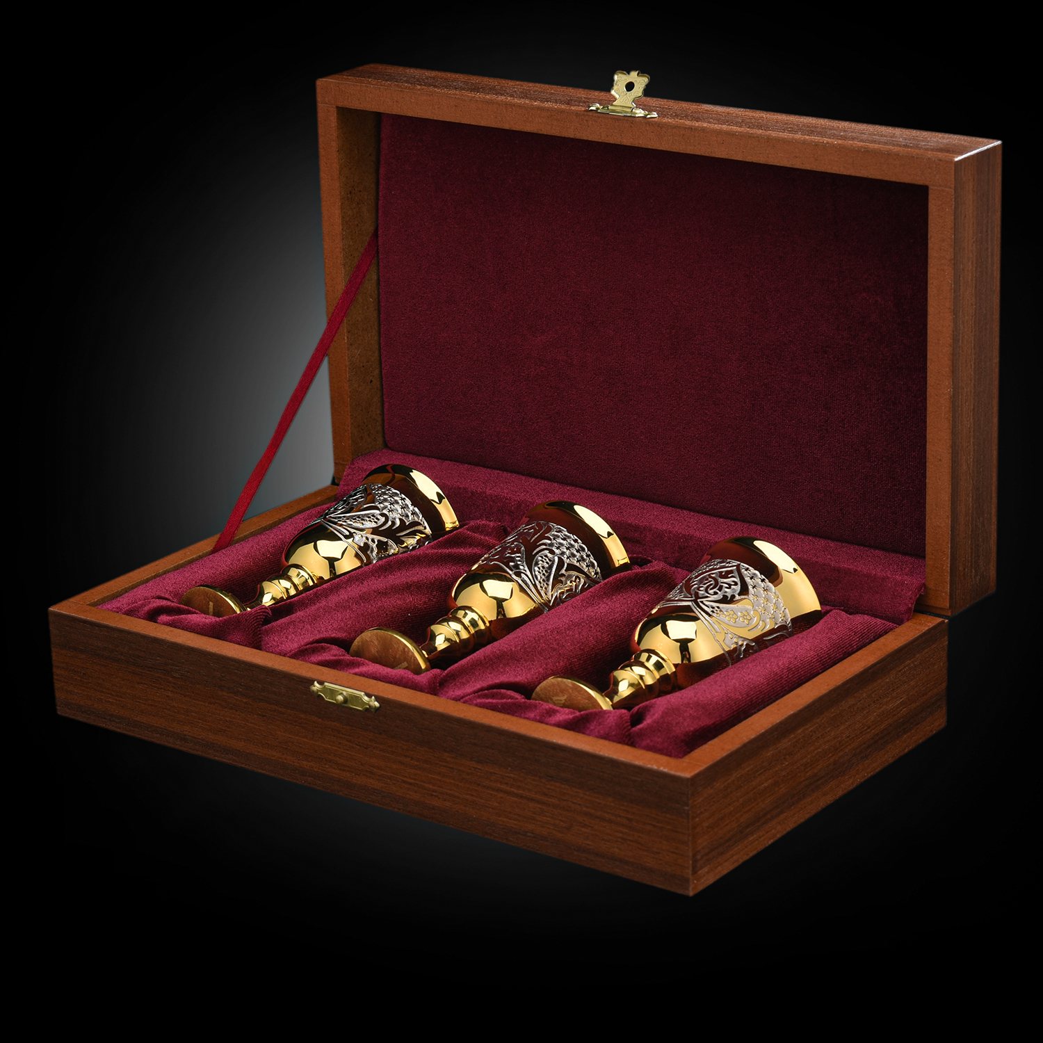 Питейный набор на 3 персоны "Вишневый цвет". Златоуст.Материалы: латунь, никель, золото 999,9*.