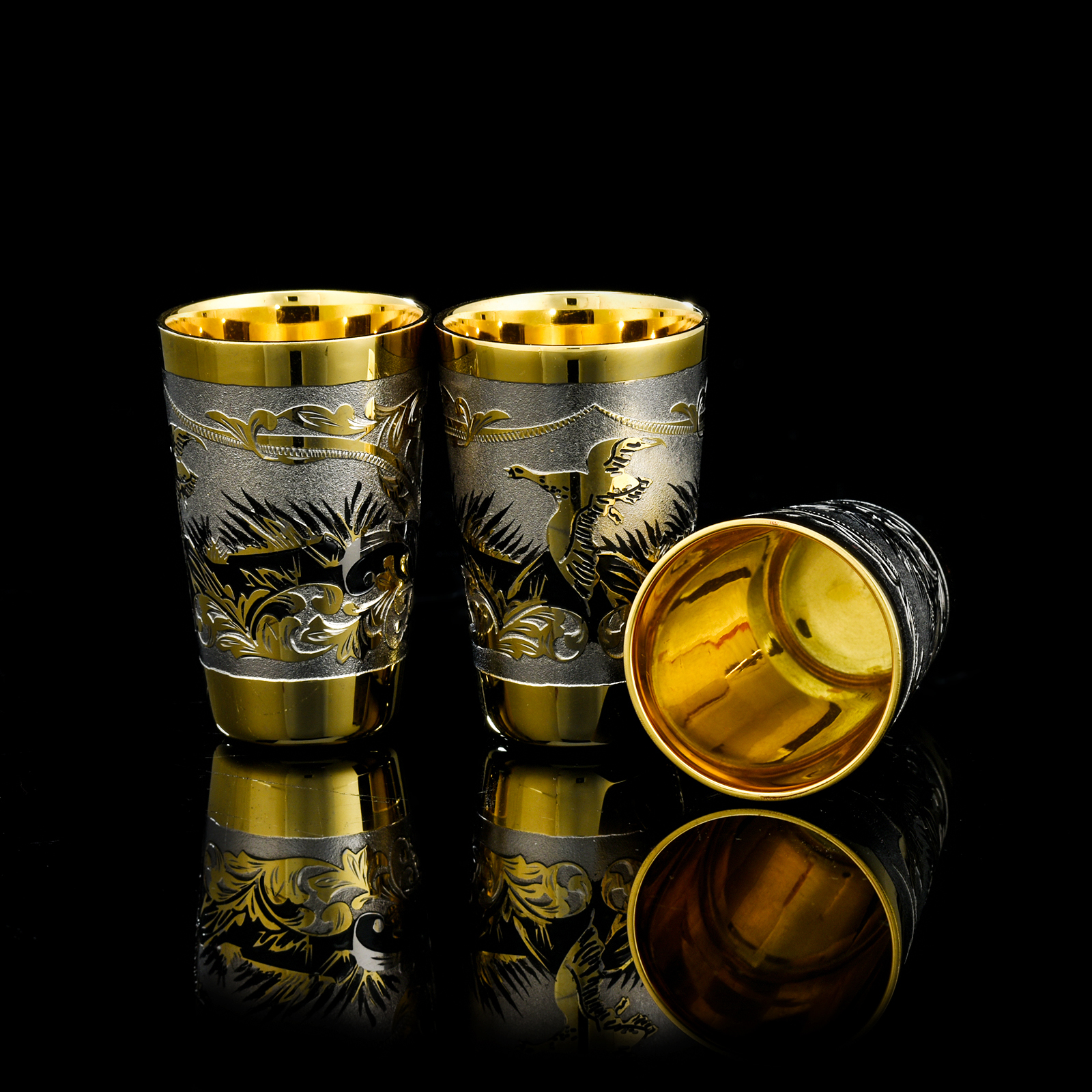 Питейный набор на 3 персоны. Златоуст.Материалы: латунь, никель, золото 999,9*.