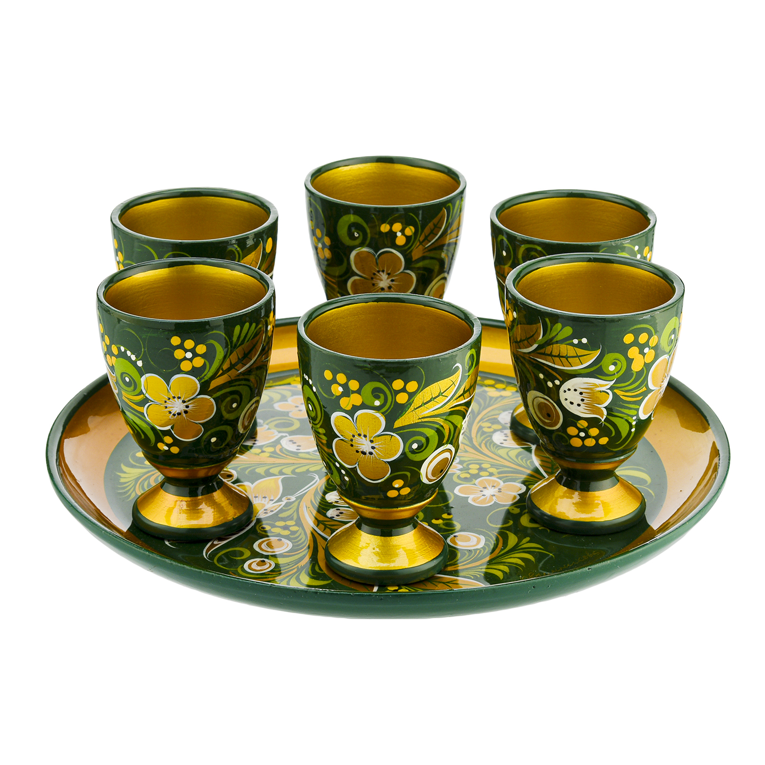 Питейный набор для вина на 6 персон "Ландыш". Хохлома.Материалы: дерево, краски, лак.