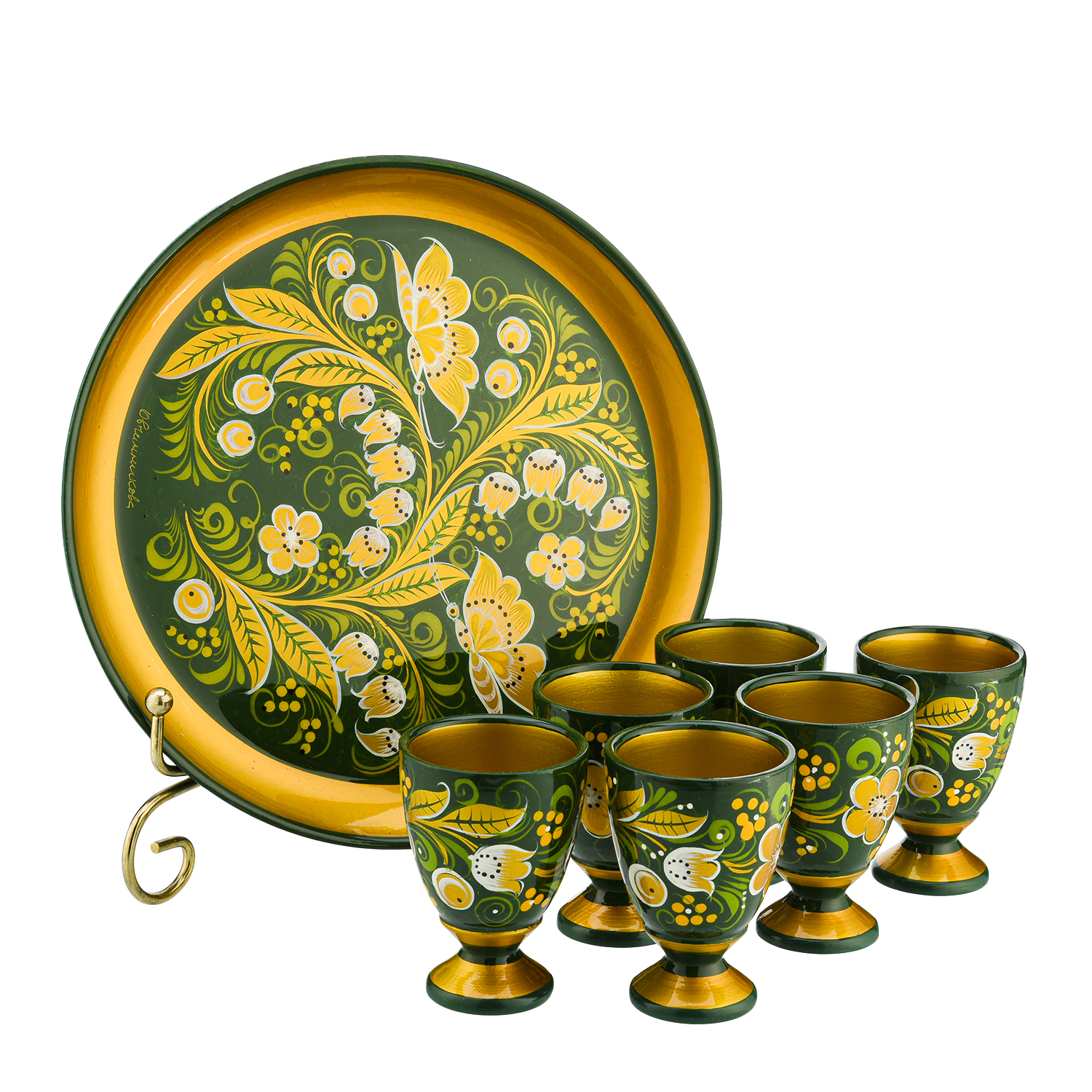 Русские подарки и сувениры → Посуда → Питейные наборы → Питейный набор для вина на 6 персон "Ландыш". Хохлома