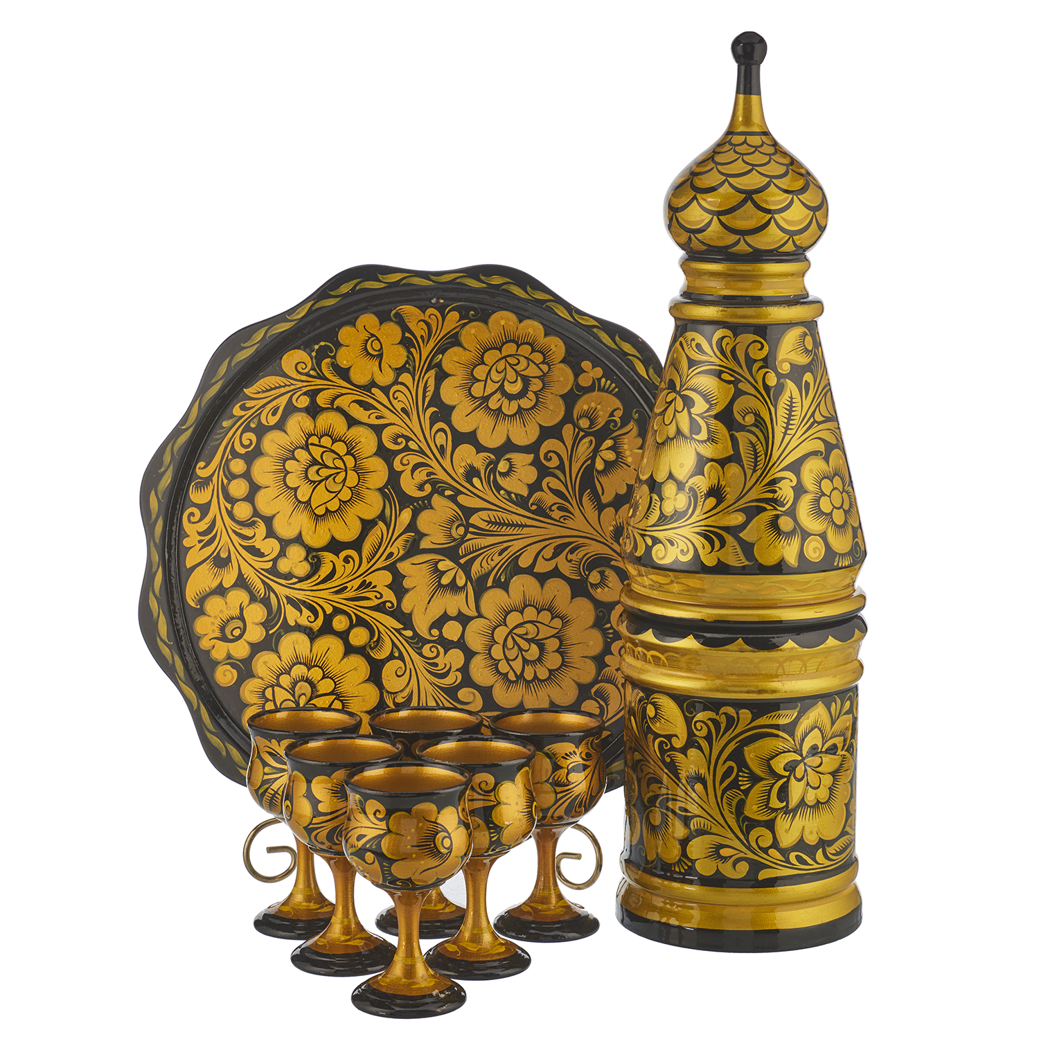 Питейный набор на 6 персон. Хохлома