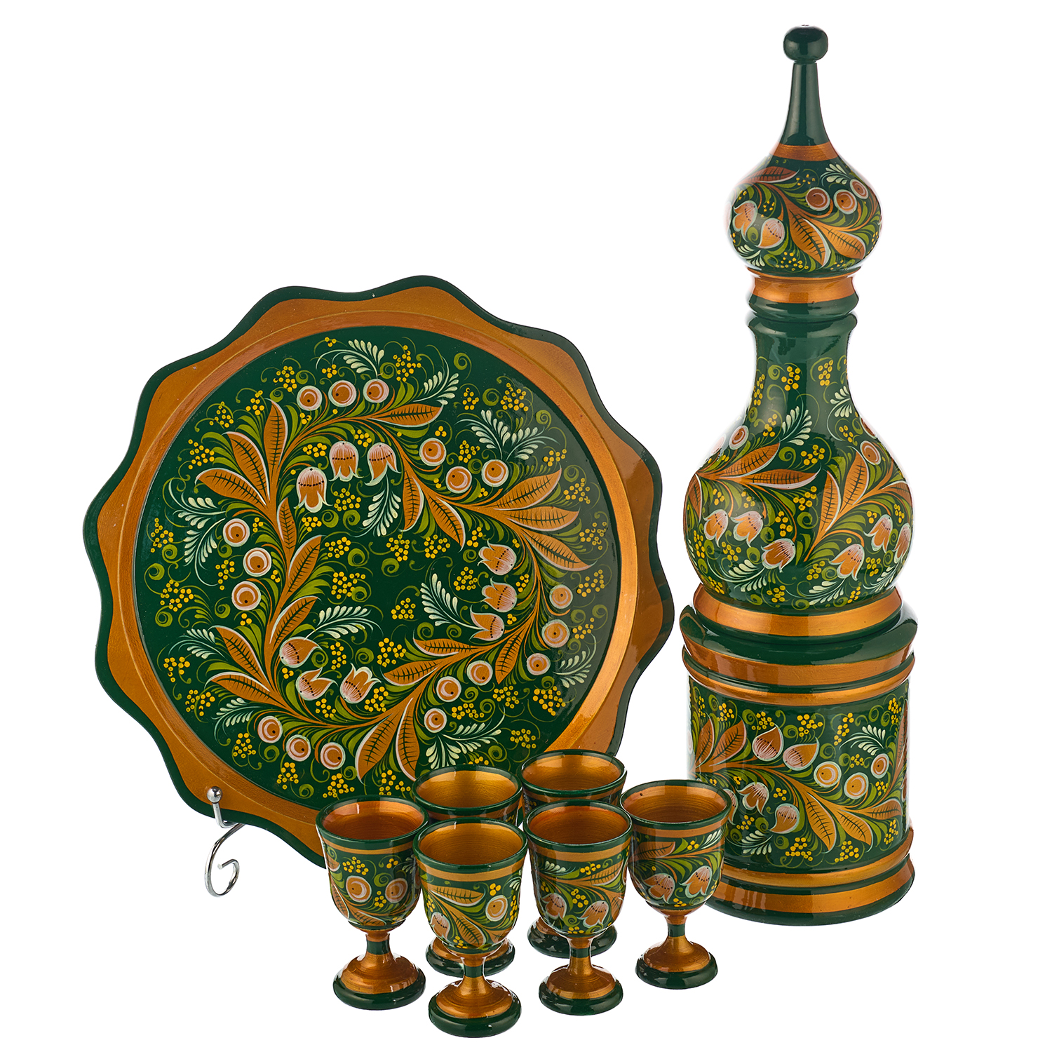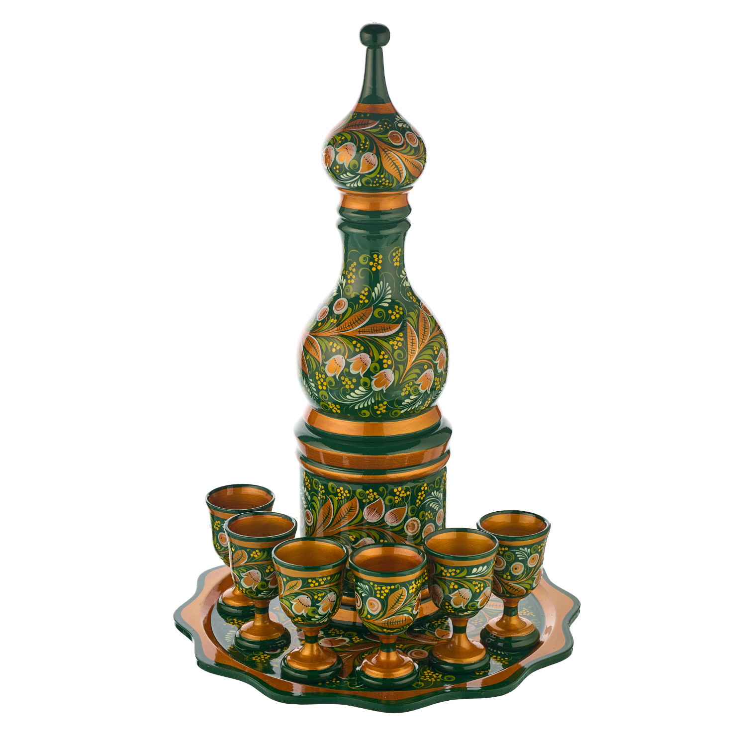 Питейный набор для водки "Ландыш". Хохлома.Материалы: дерево, краски, лак.