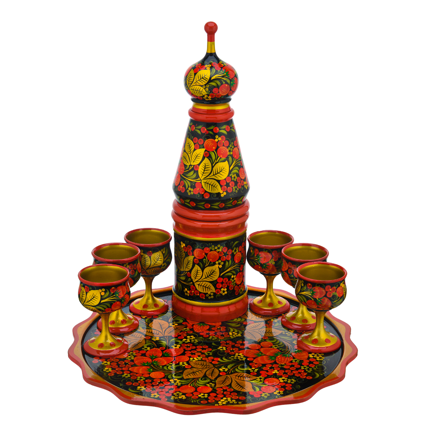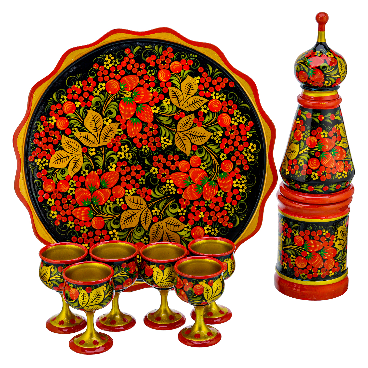 Питейный набор на 6 персон "Ягоды". Хохлома