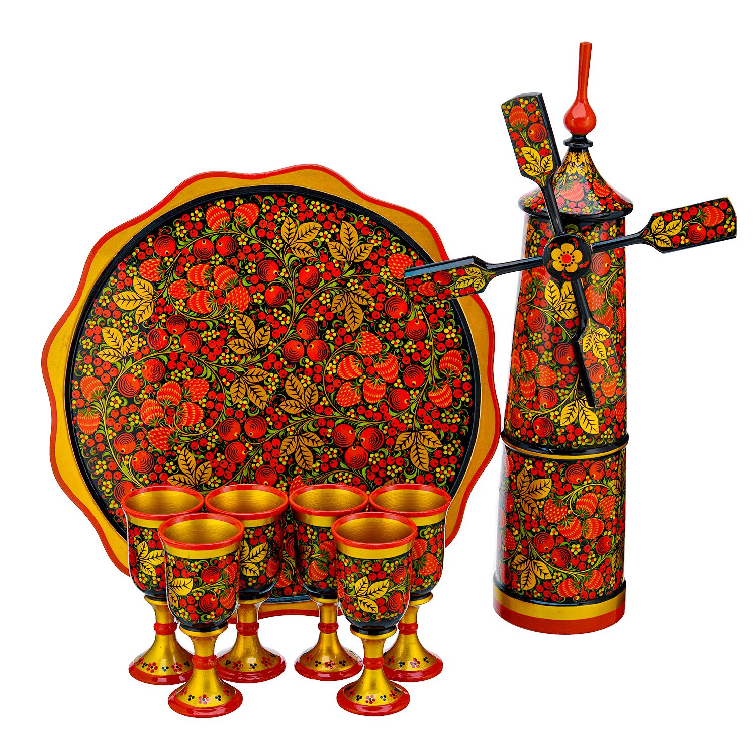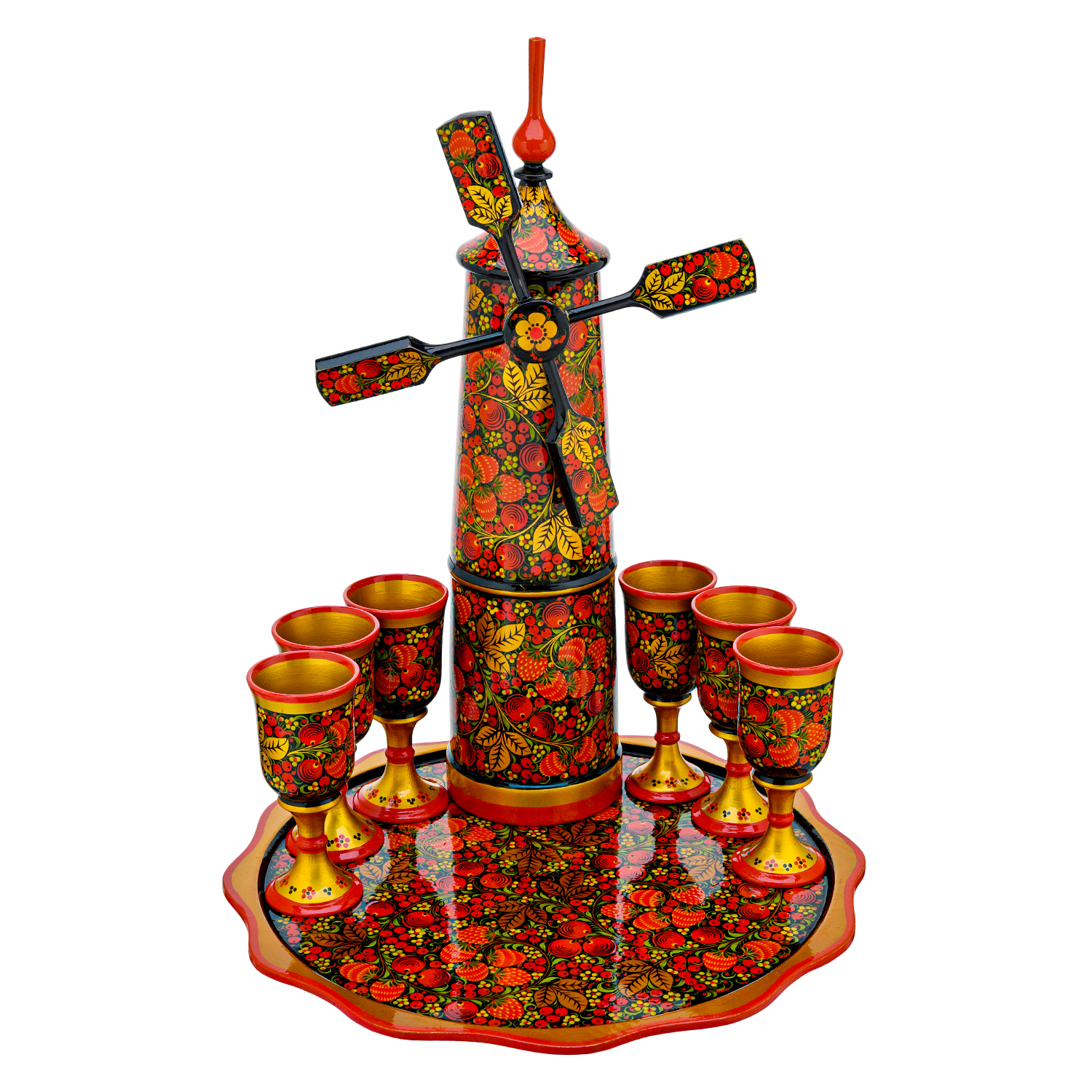 Русские подарки и сувениры → Посуда → Питейные наборы → Питейный набор на 6 персон "Мельница". Хохлома