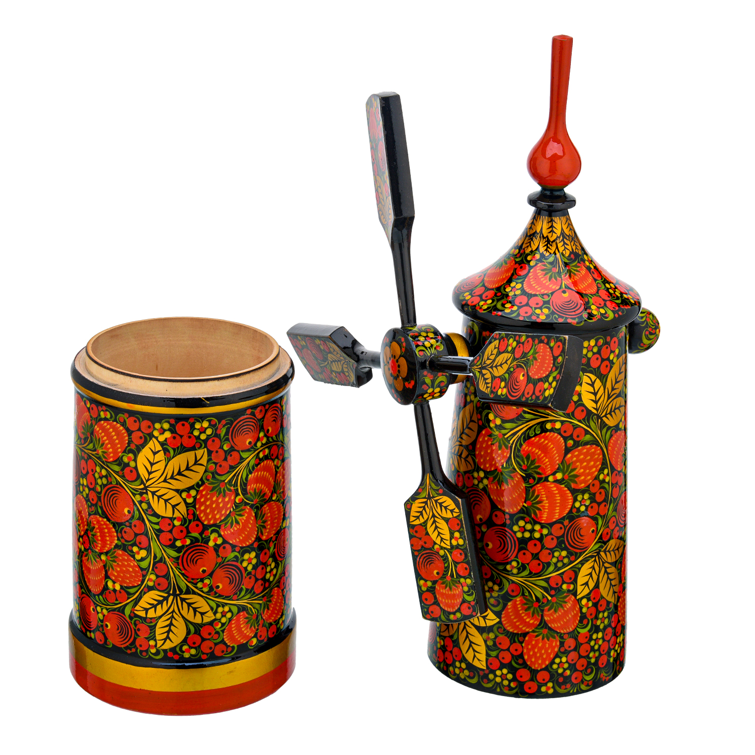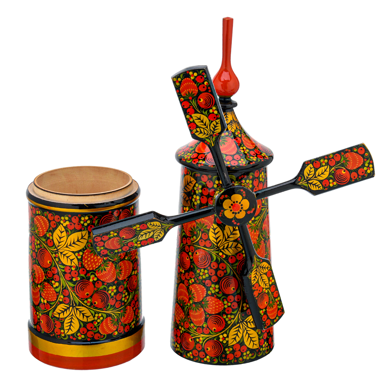 Питейный набор на 6 персон "Мельница". Хохлома.Материалы: дерево, краски, лак.