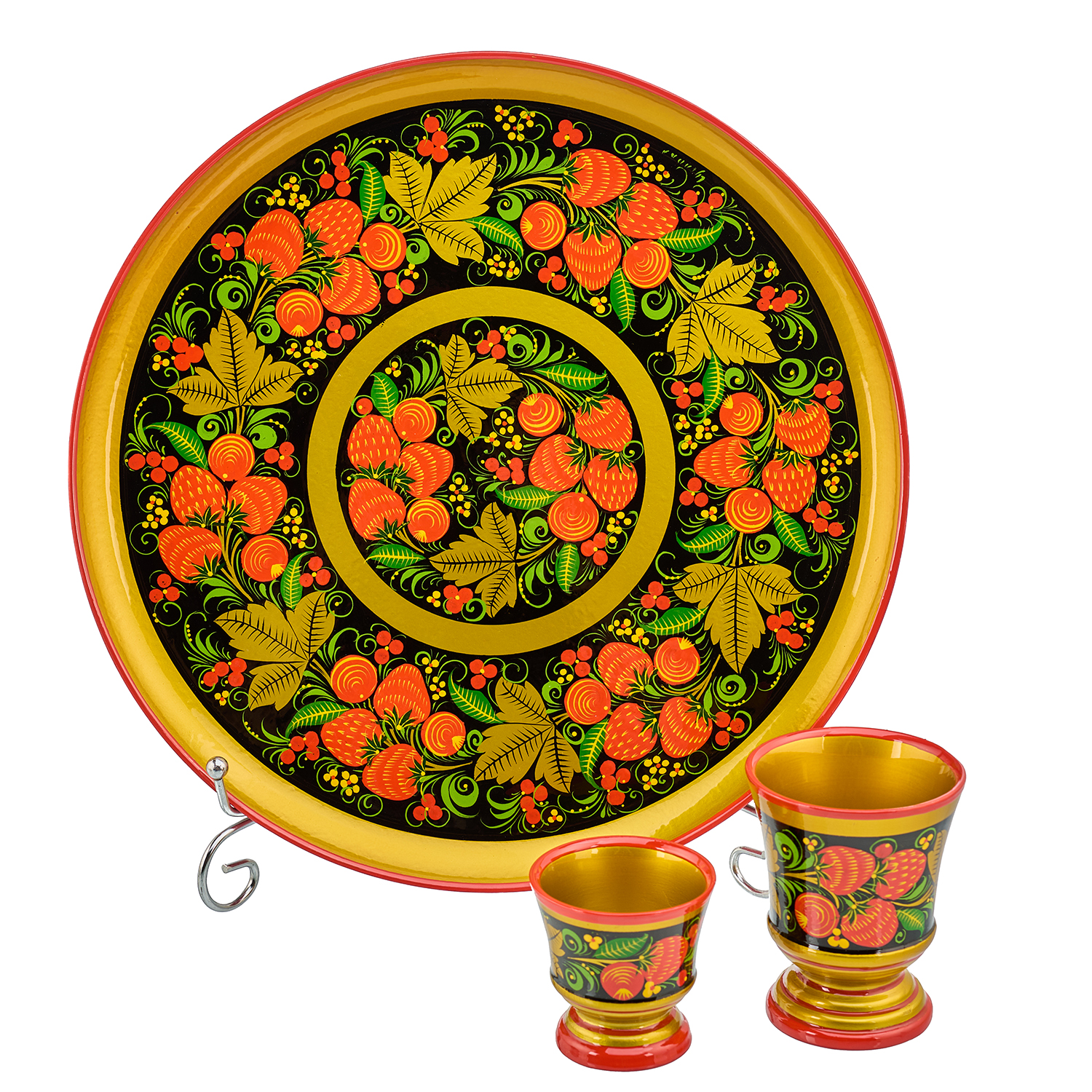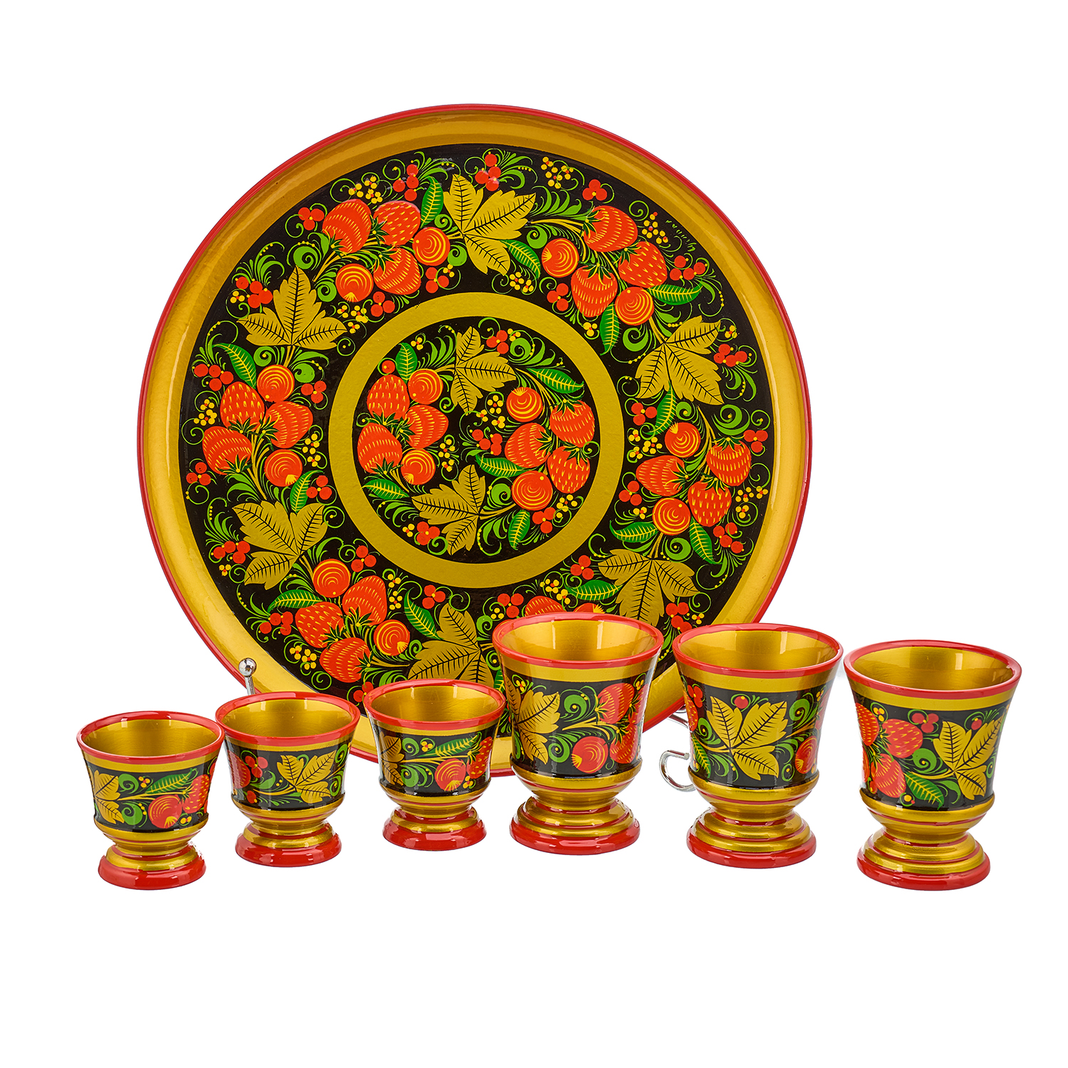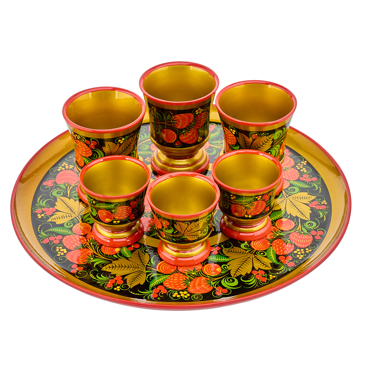 Набор для вина на 6 персон. Хохлома.Материалы: дерево, краски, лак.
