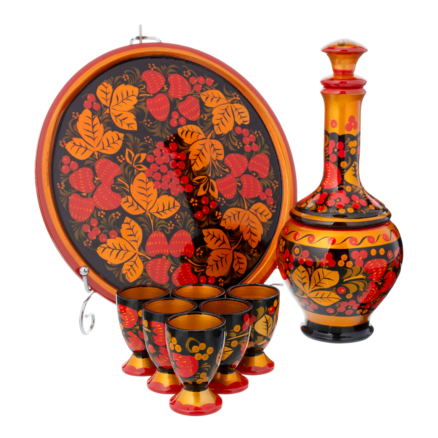 Русские подарки и сувениры → Посуда → Питейные наборы → Питейный набор на 6 персон "Водочный". Хохлома