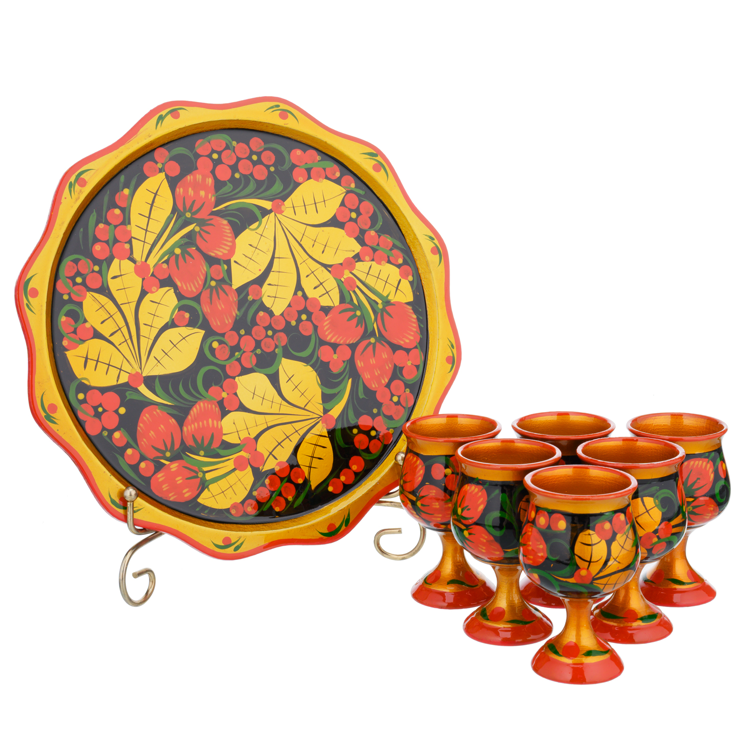 Русские подарки и сувениры → Посуда → Питейные наборы → Питейный набор на 6 персон с росписью. Хохлома