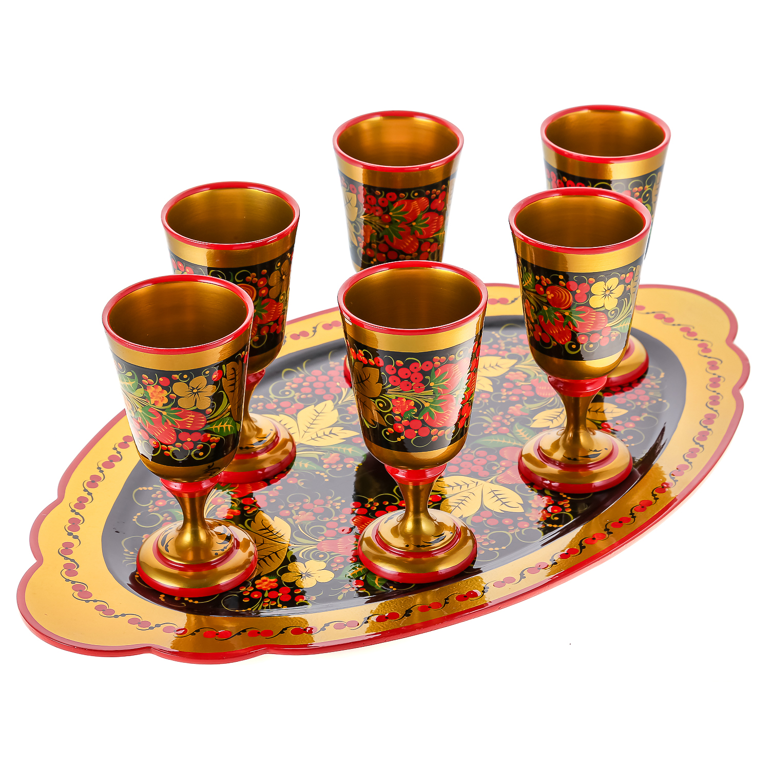 Русские подарки и сувениры → Посуда → Питейные наборы → Питейный набор для шампанского "Встреча". Хохлома