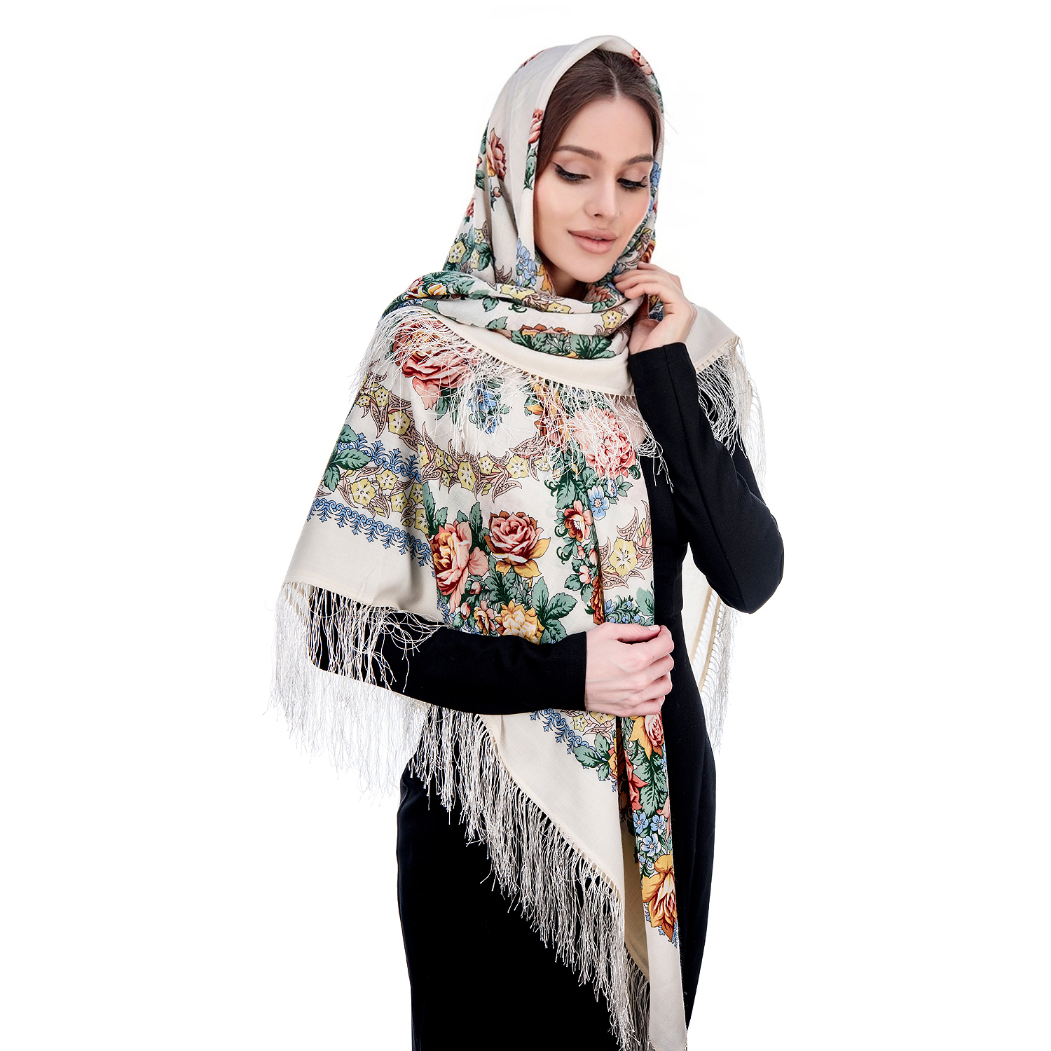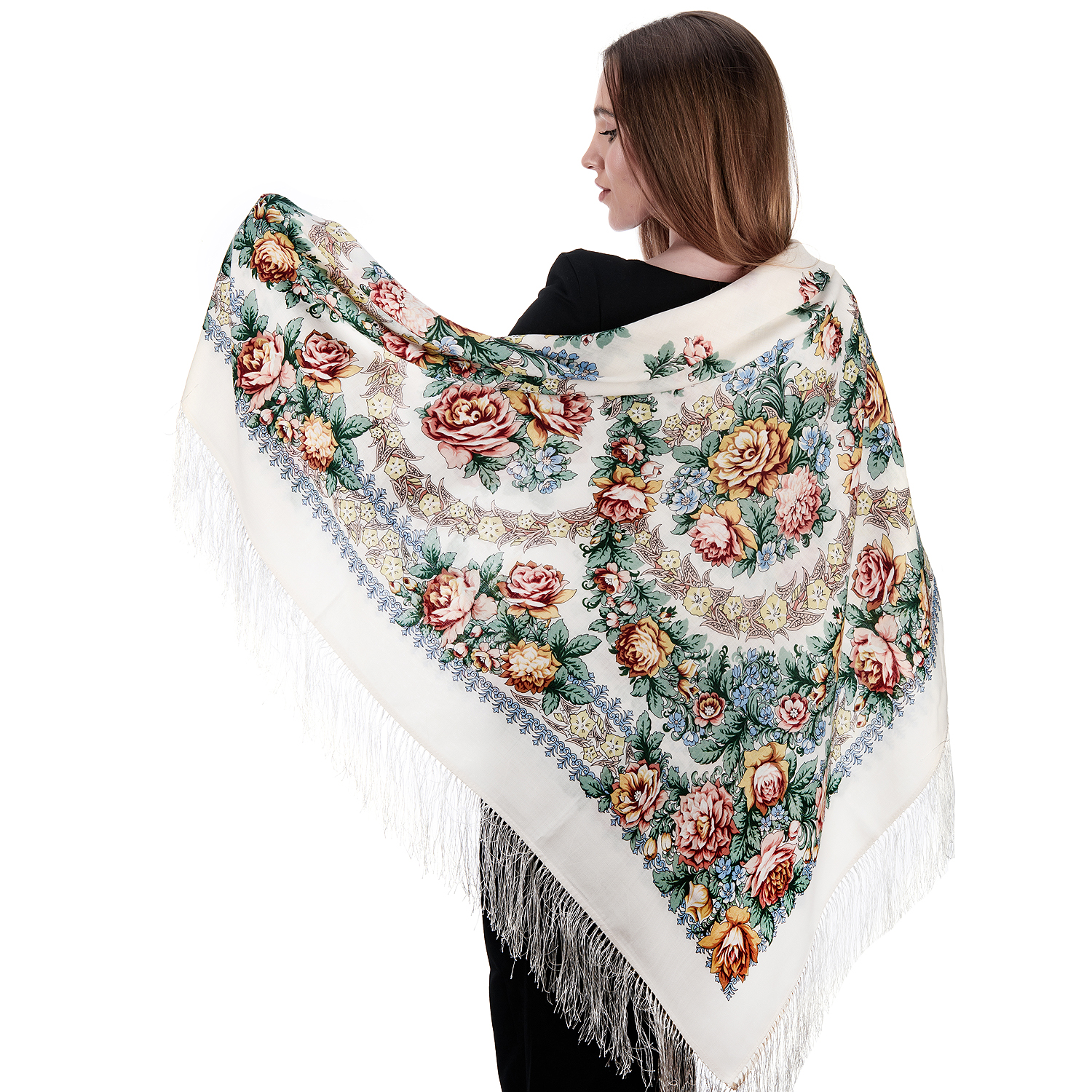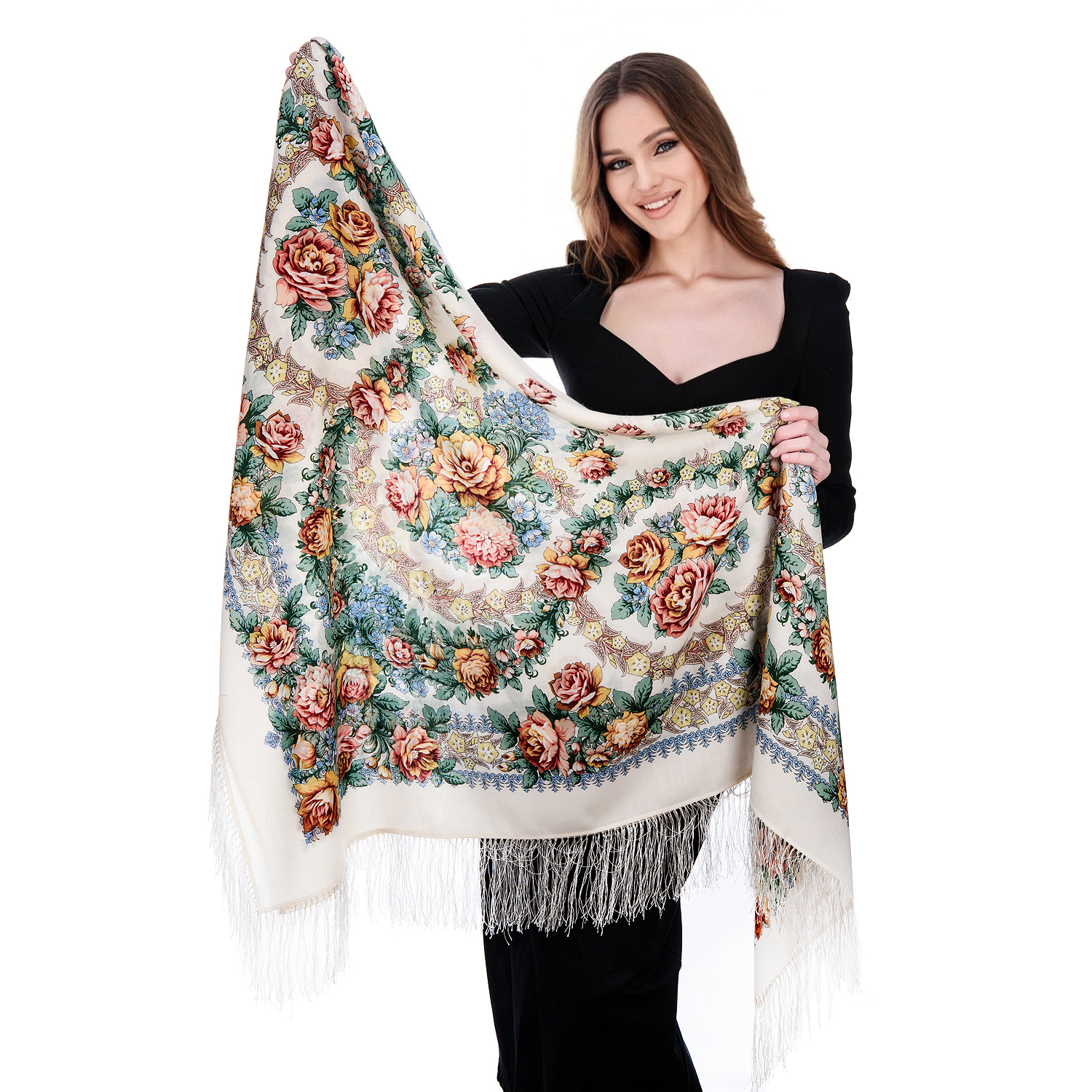 Русские подарки и сувениры → Платки → Платок ПавлоПосадский шерстяной "Вдоль по реченьке" 146х146 см