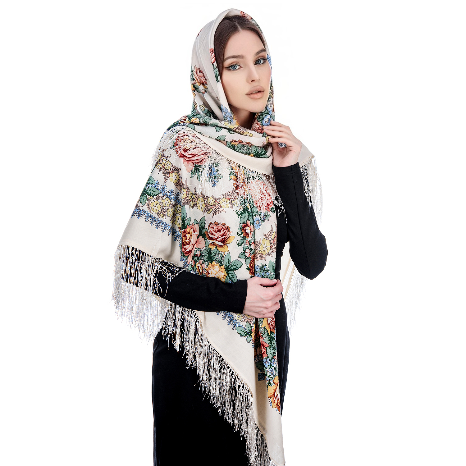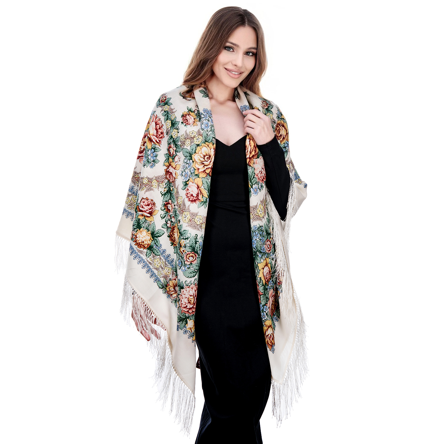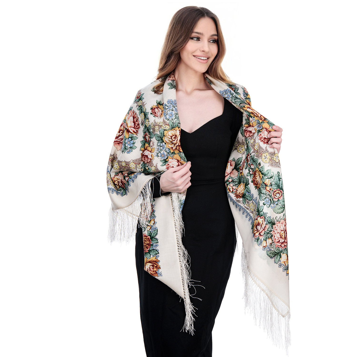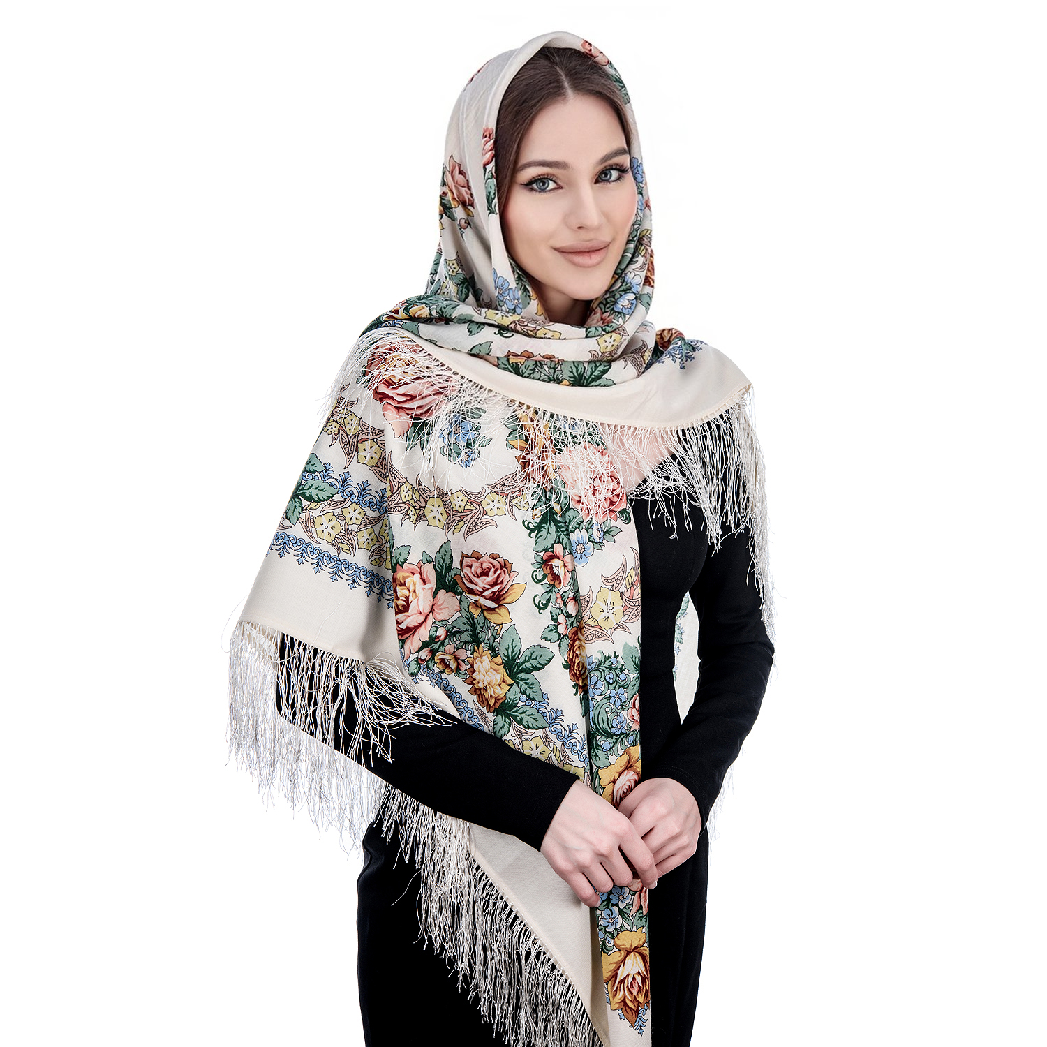 Русские подарки и сувениры → Платки → Платок ПавлоПосадский шерстяной "Вдоль по реченьке" 146х146 см