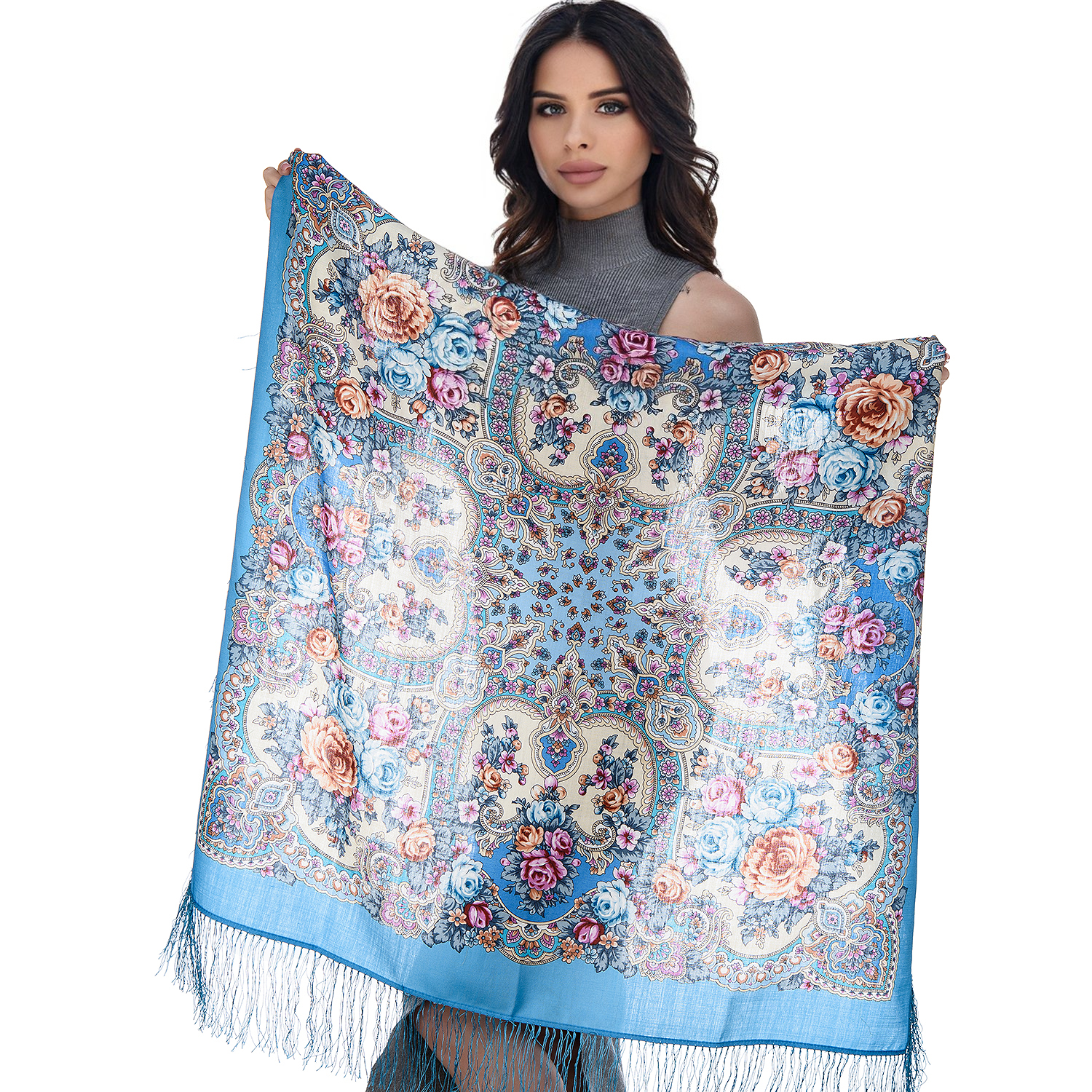 Платок ПавлоПосадский шерстяной "Аврора" 89х89 см