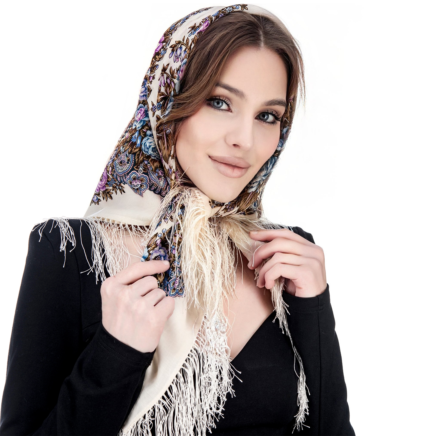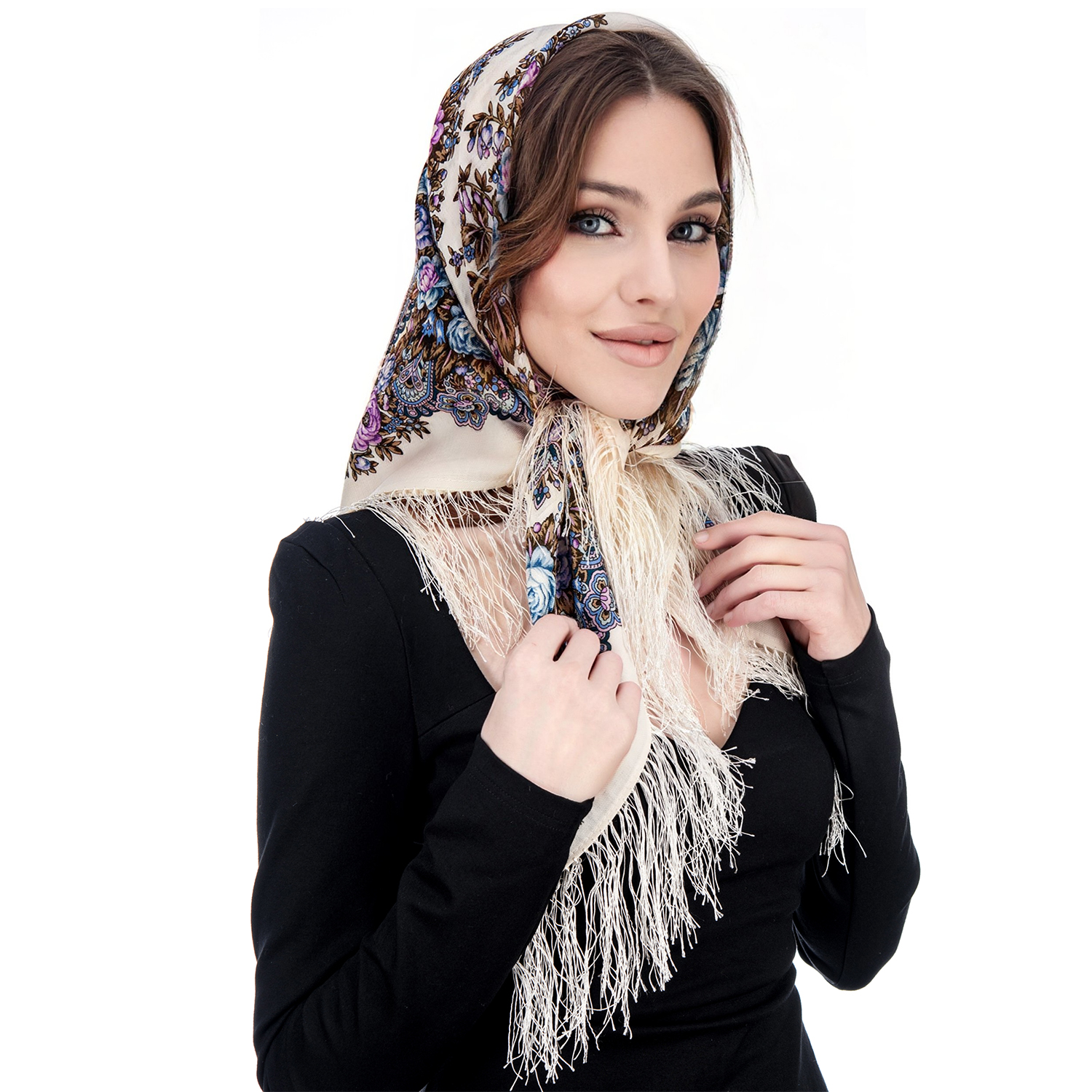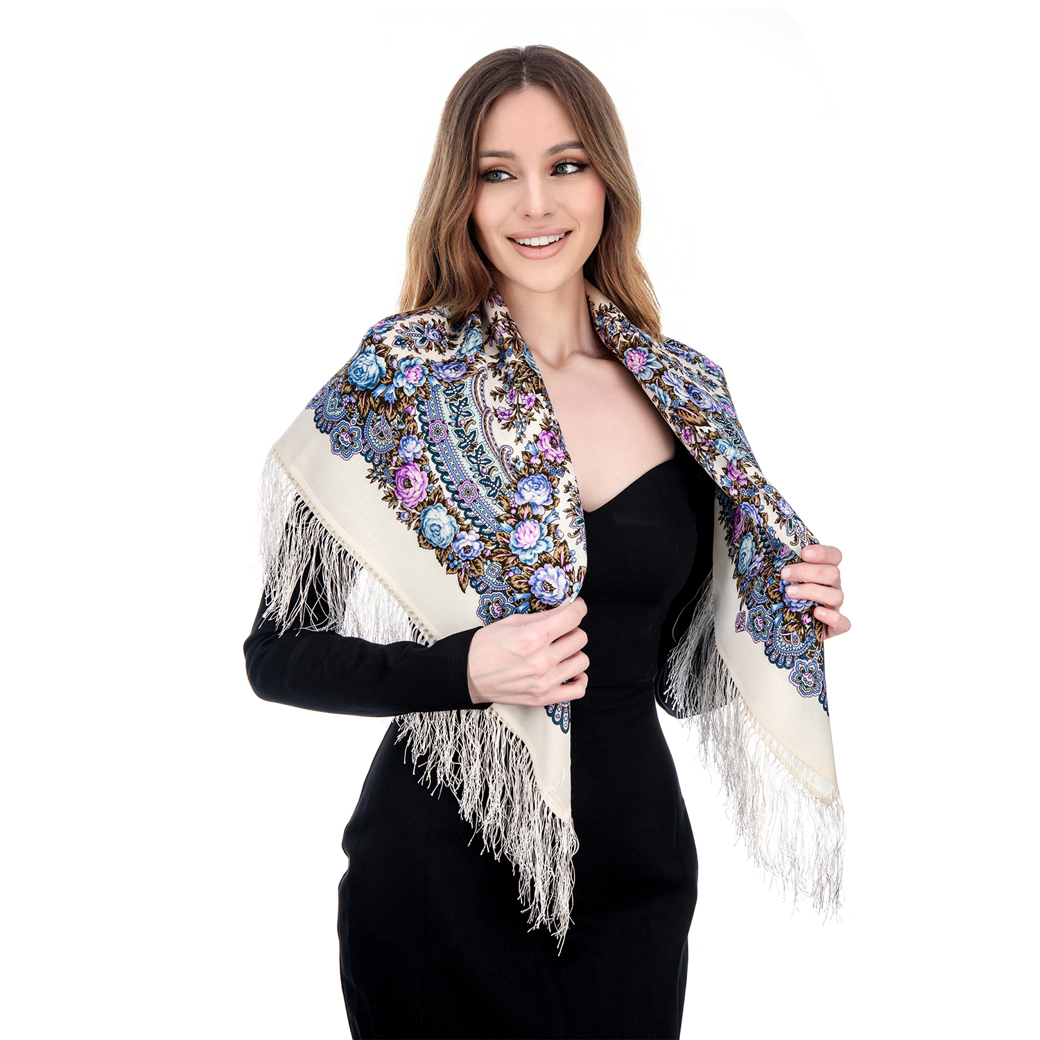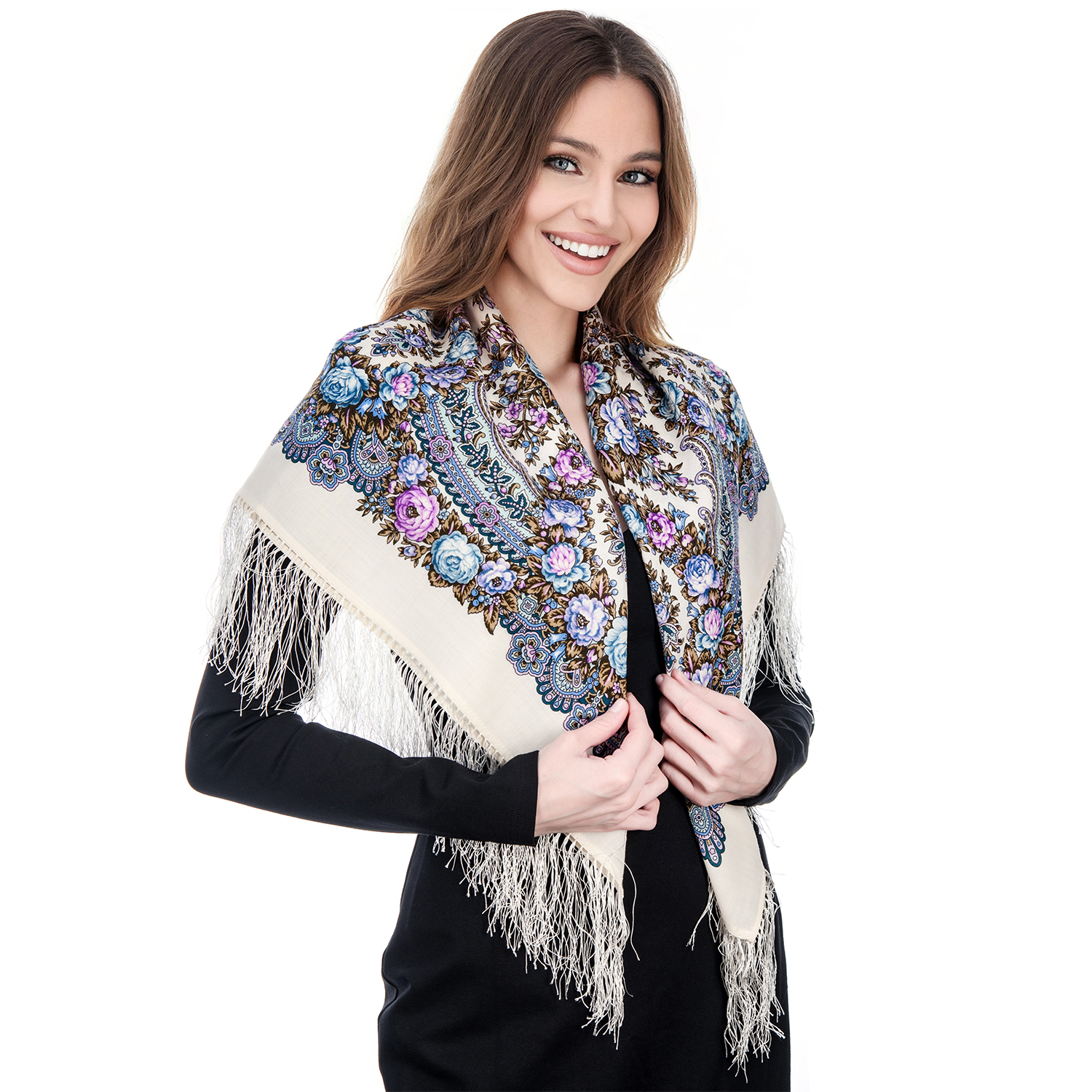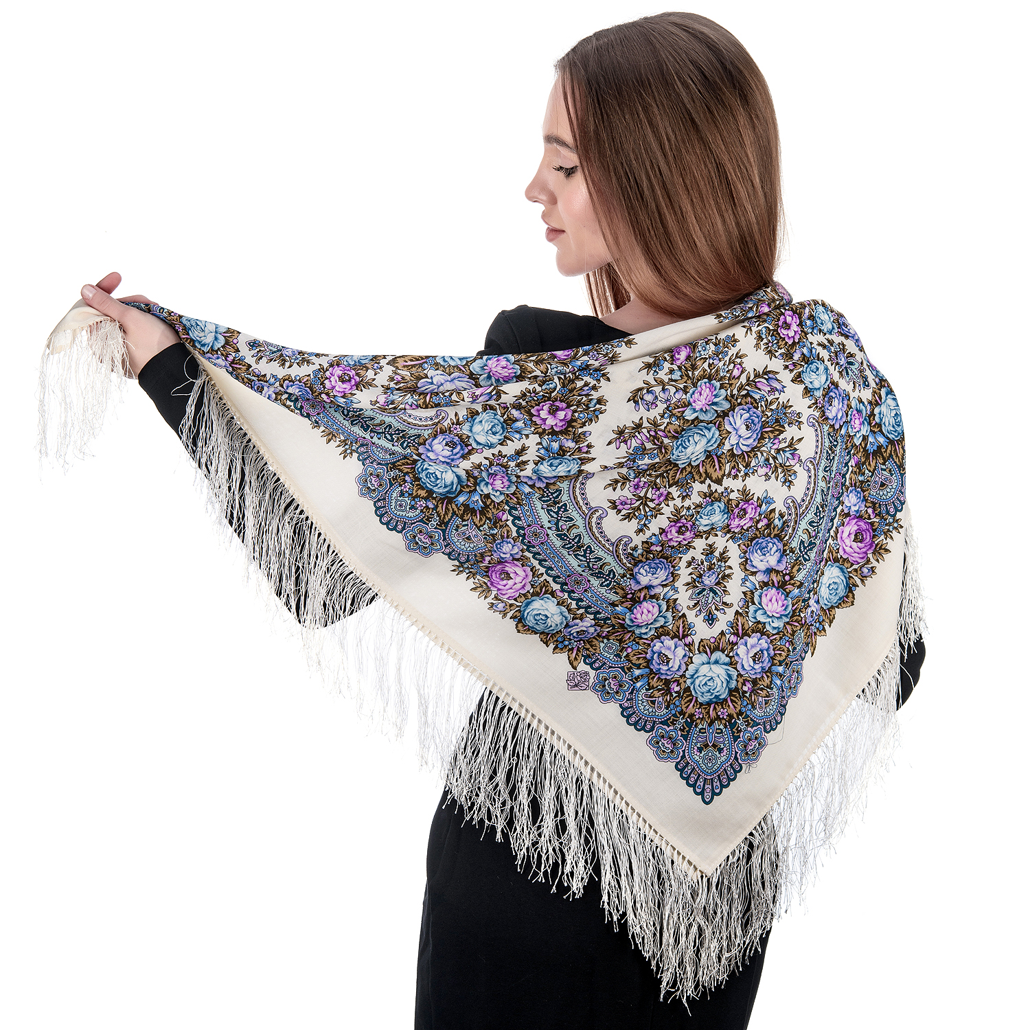 Платок ПавлоПосадский шерстяной "Утренние грезы" 89х89 см