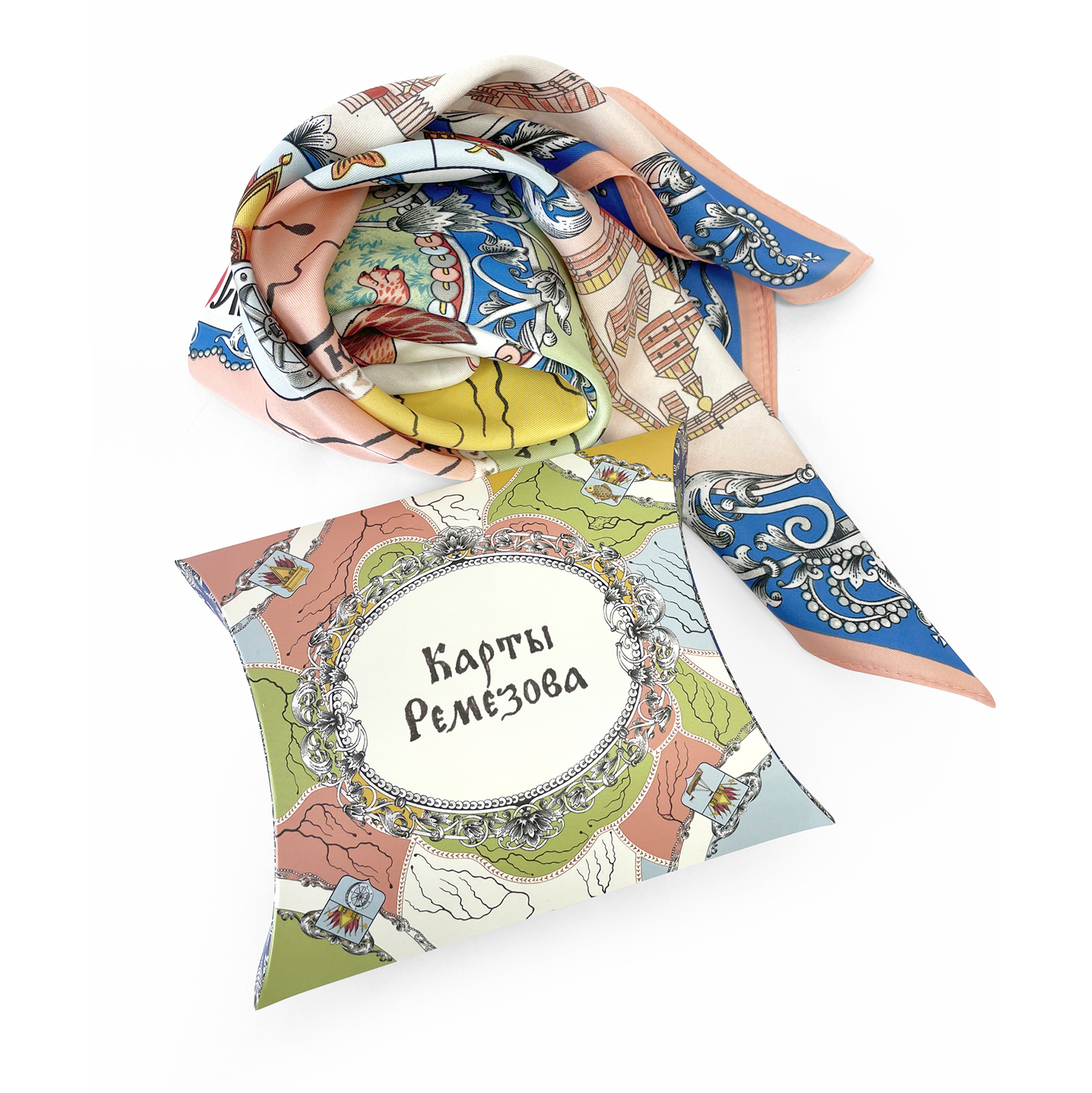 Шелковый платок "Карты Ремезова" 90х90 см
