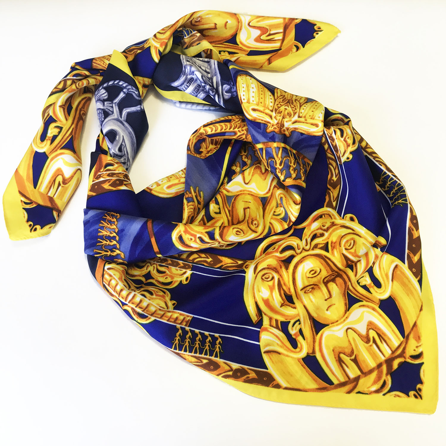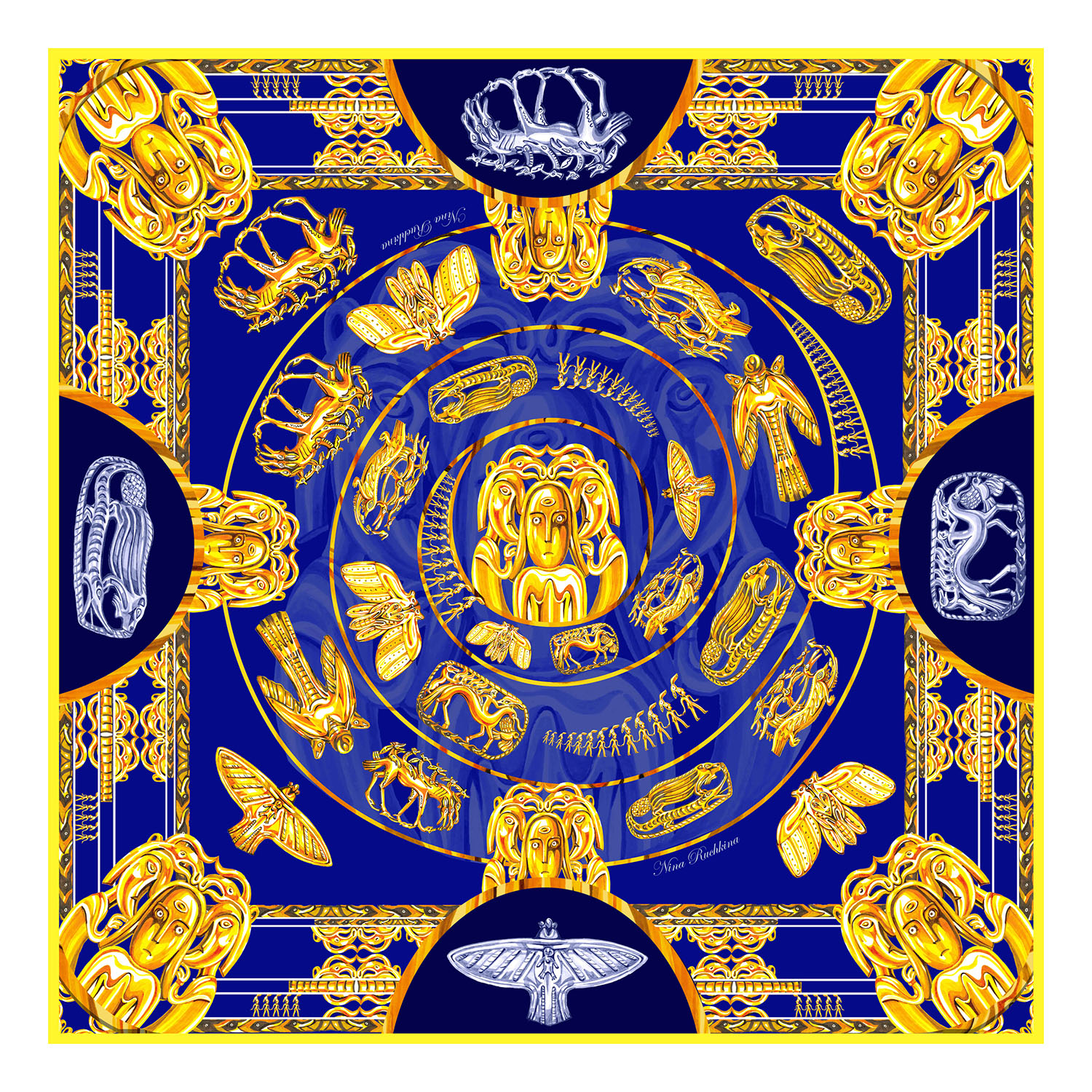 Шелковый платок "Пермский звериный стиль" 90х90 см