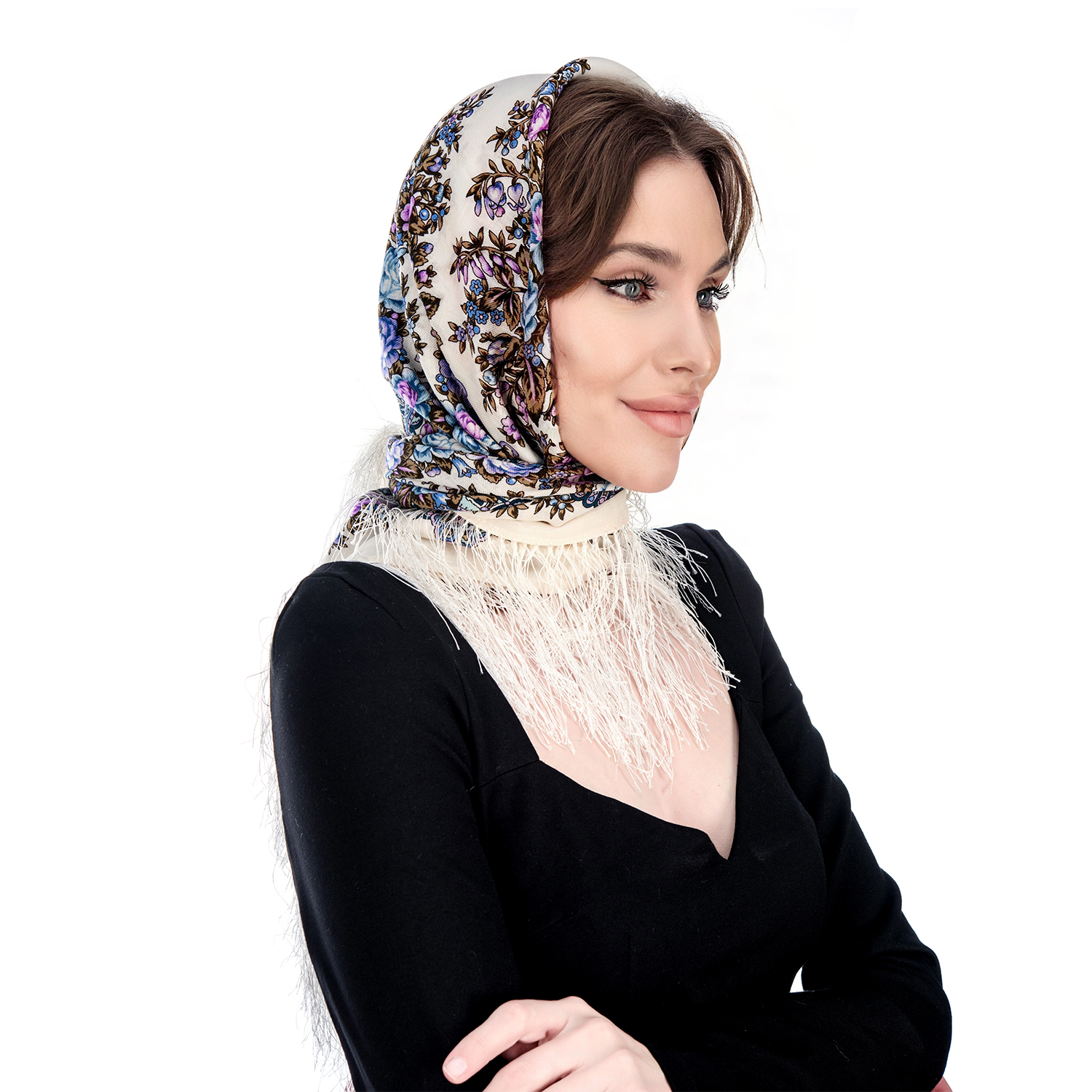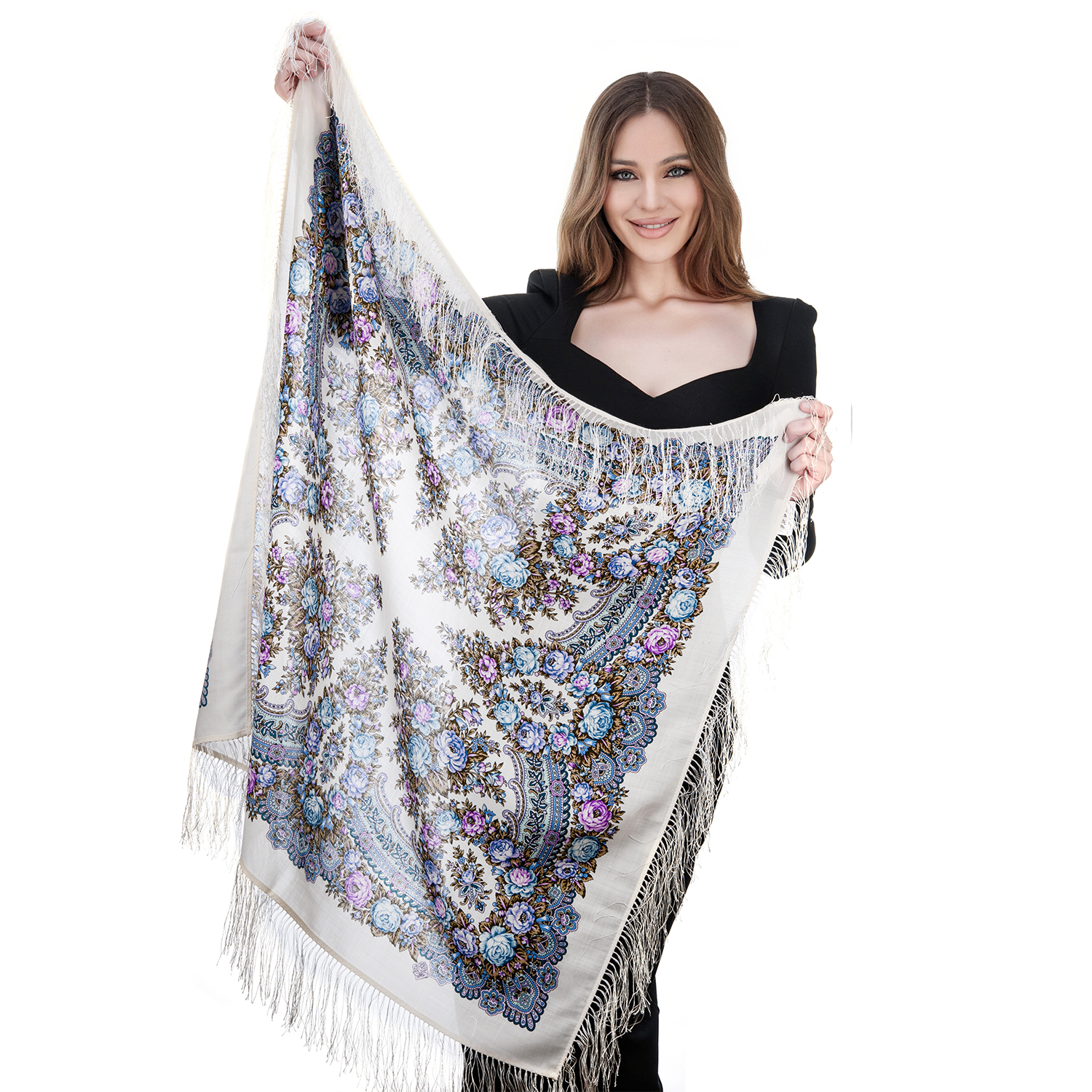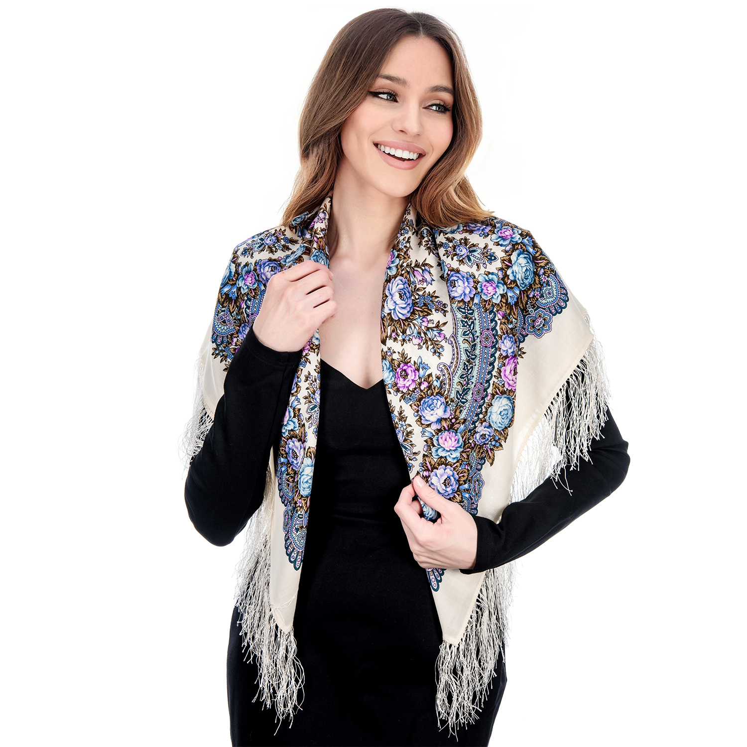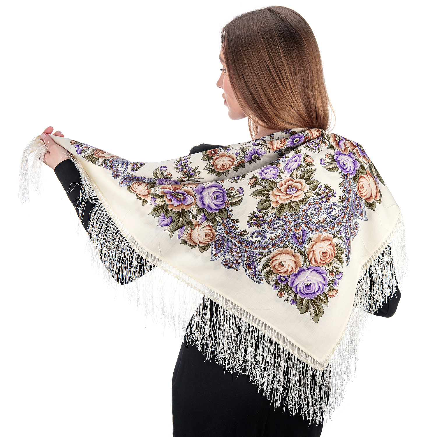 Платок ПавлоПосадский шерстяной "На солнечной поляночке" 89х89 см