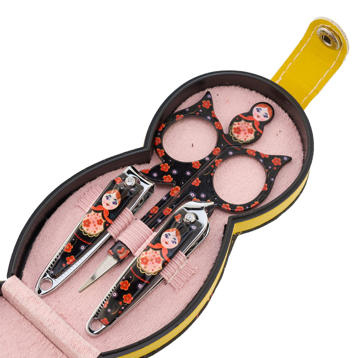 Маникюрный набор "Матрешка"Материалы: металл, пластик, искусственная кожа.