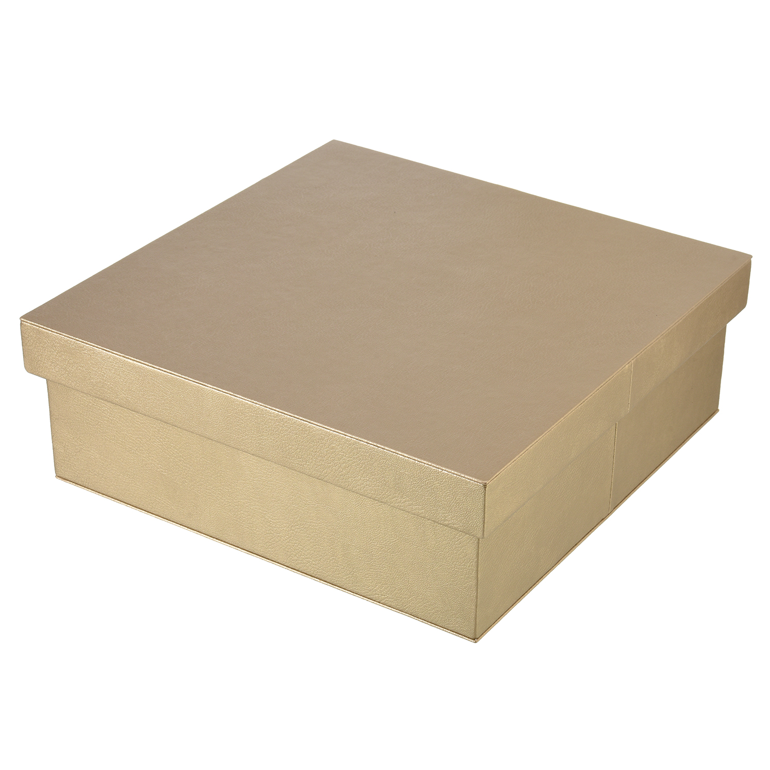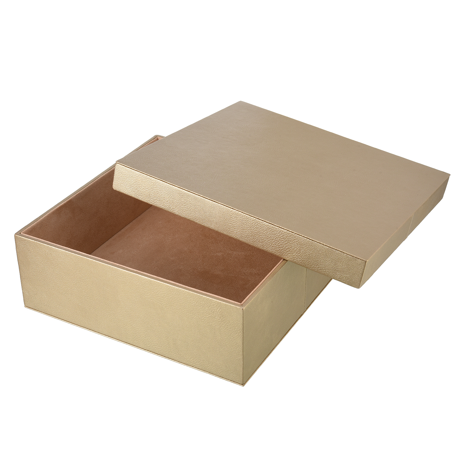 Подарочная упаковка из экокожи бежево-перламутровая 30х30х10 см