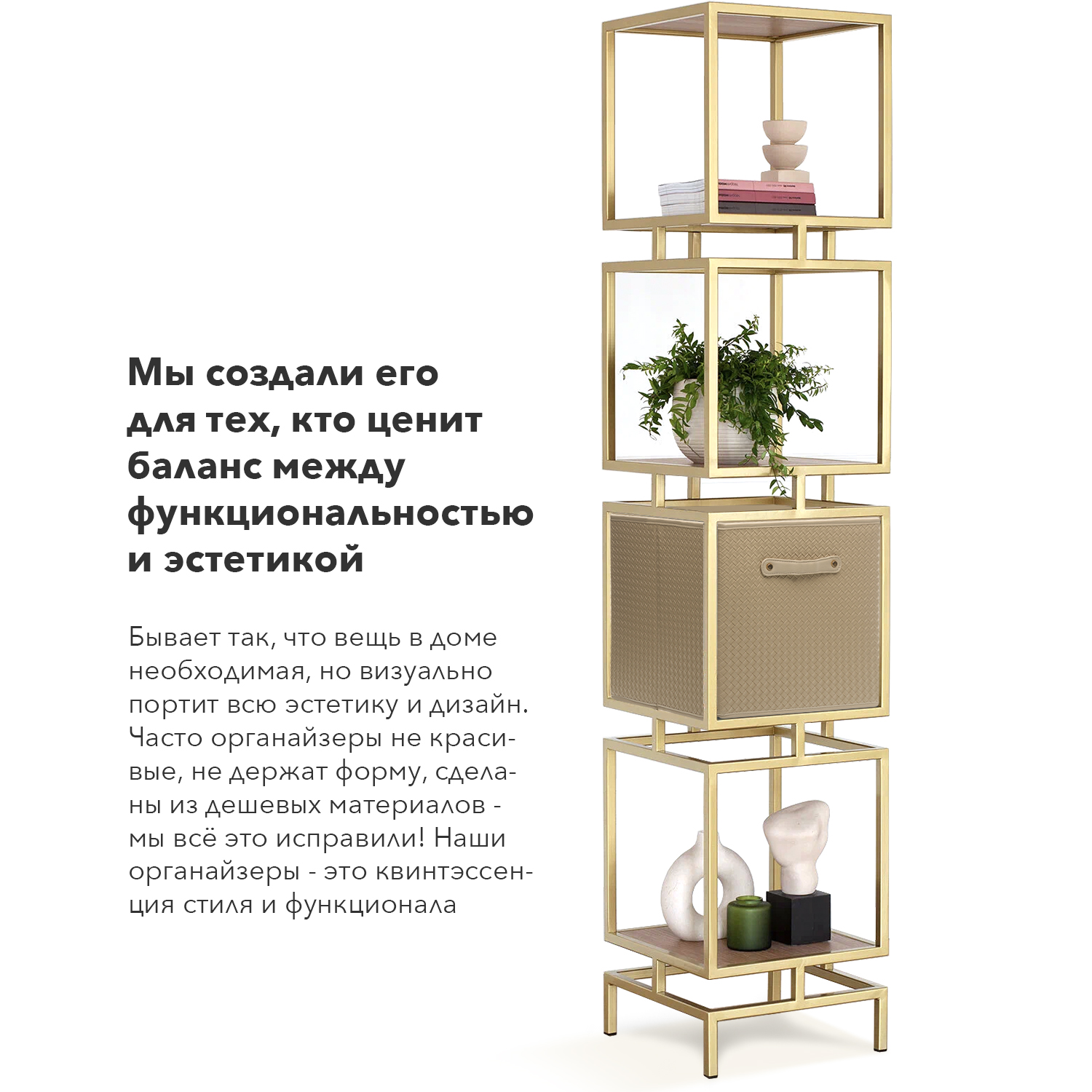 Органайзер для хранения вещей бежевый 31х31х31 см