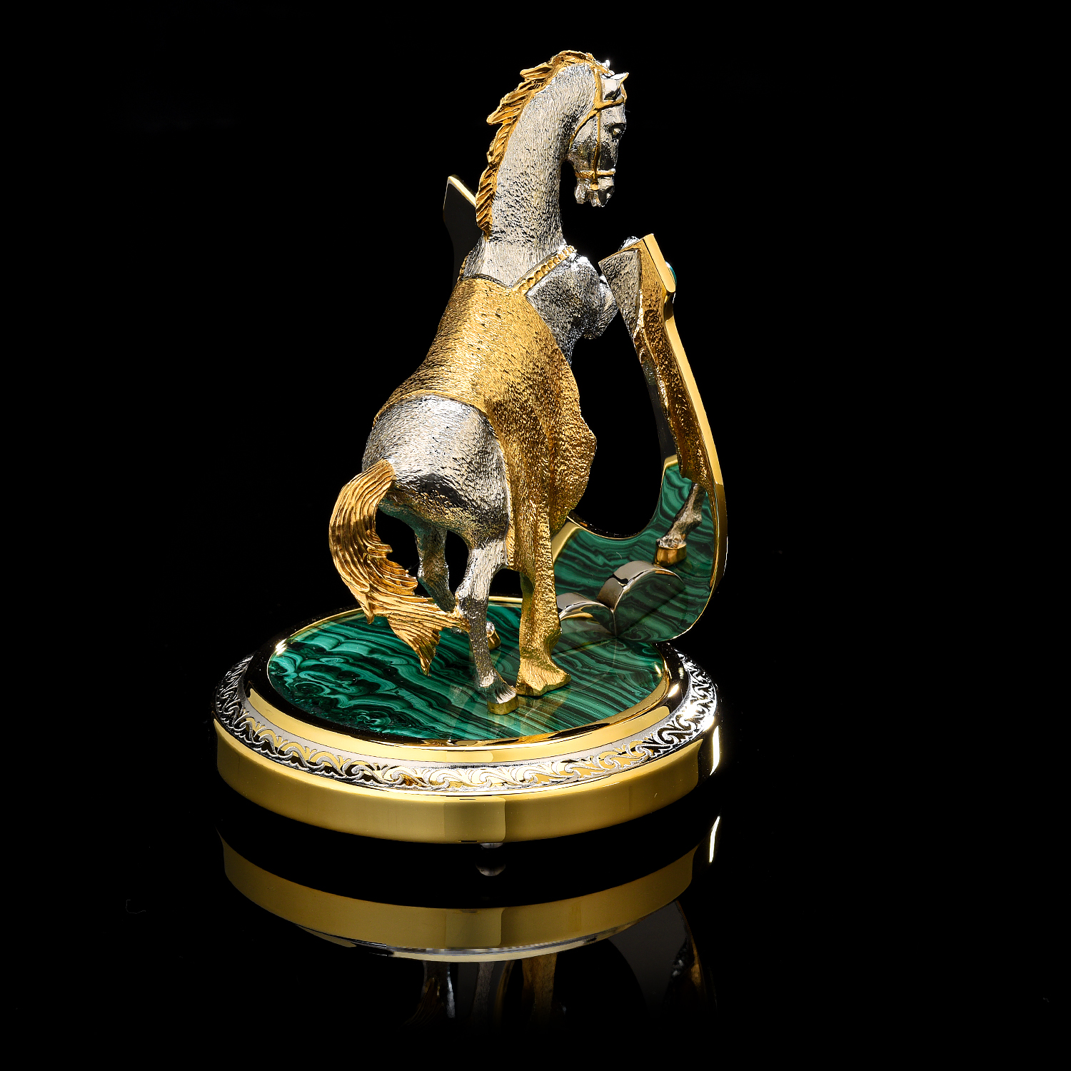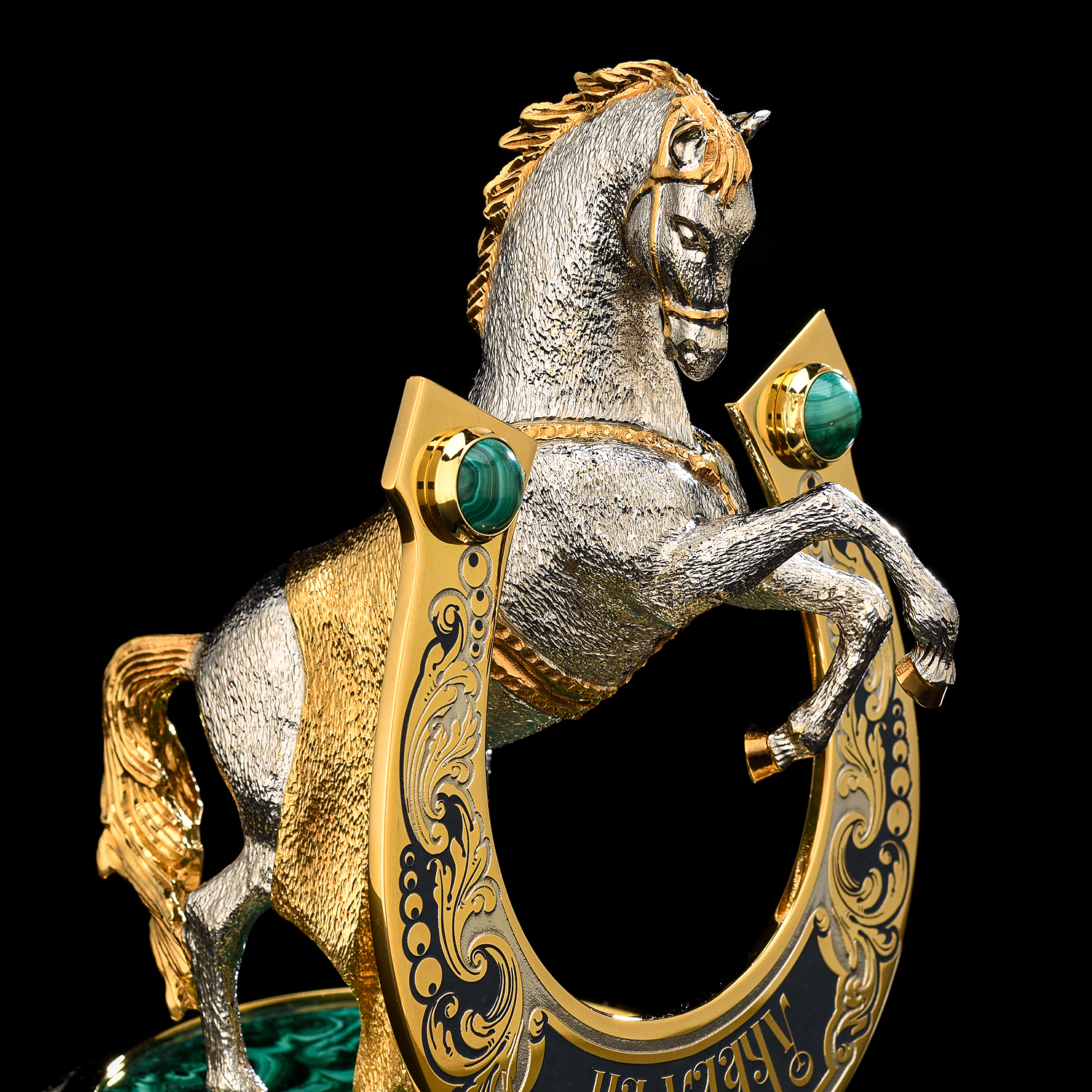 Материалы: бронза, латунь, никель, золото 999,9*, малахит.