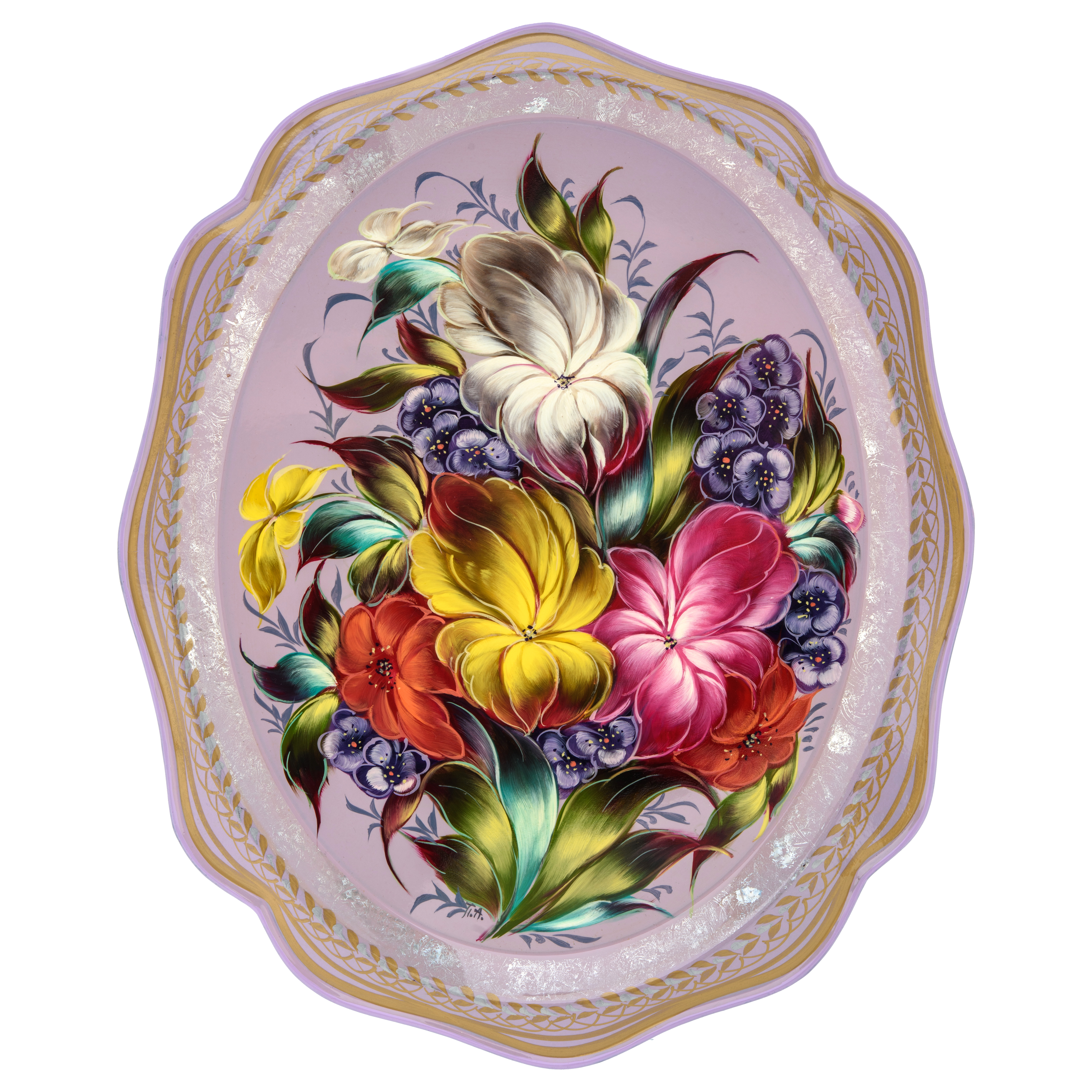 Поднос с авторской росписью "Цветы" 38х31 см