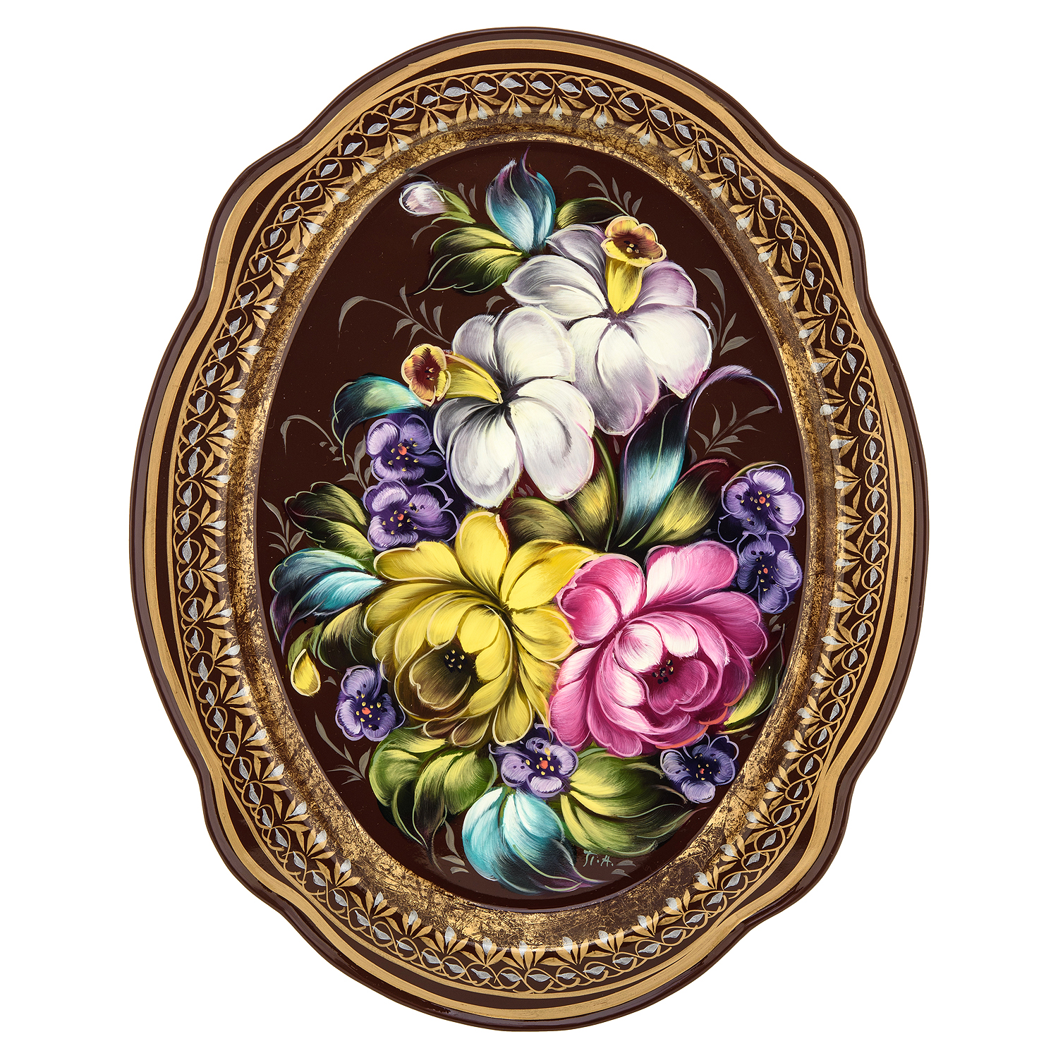 Поднос с авторской росписью "Цветы" 30х23 см