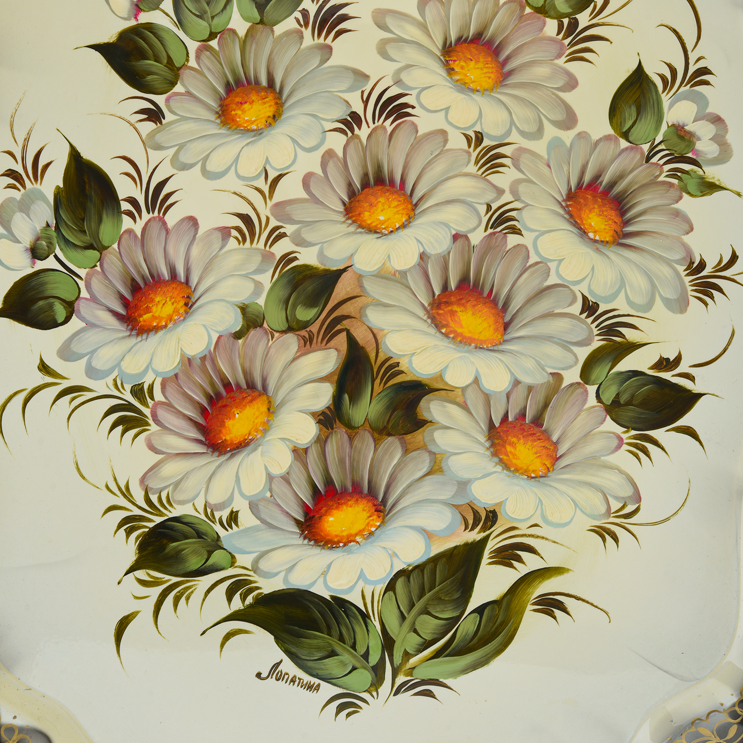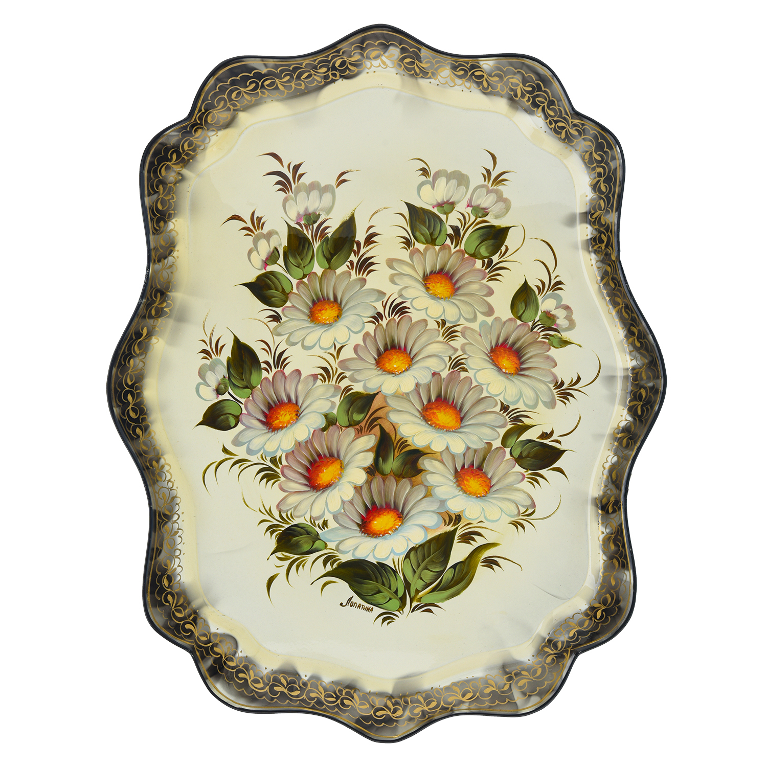 0022087/45*36см-беж Поднос ЖОСТОВО с росписью "РОМАШКИ"(фон бежевый) ....Извините, товар отсутствует