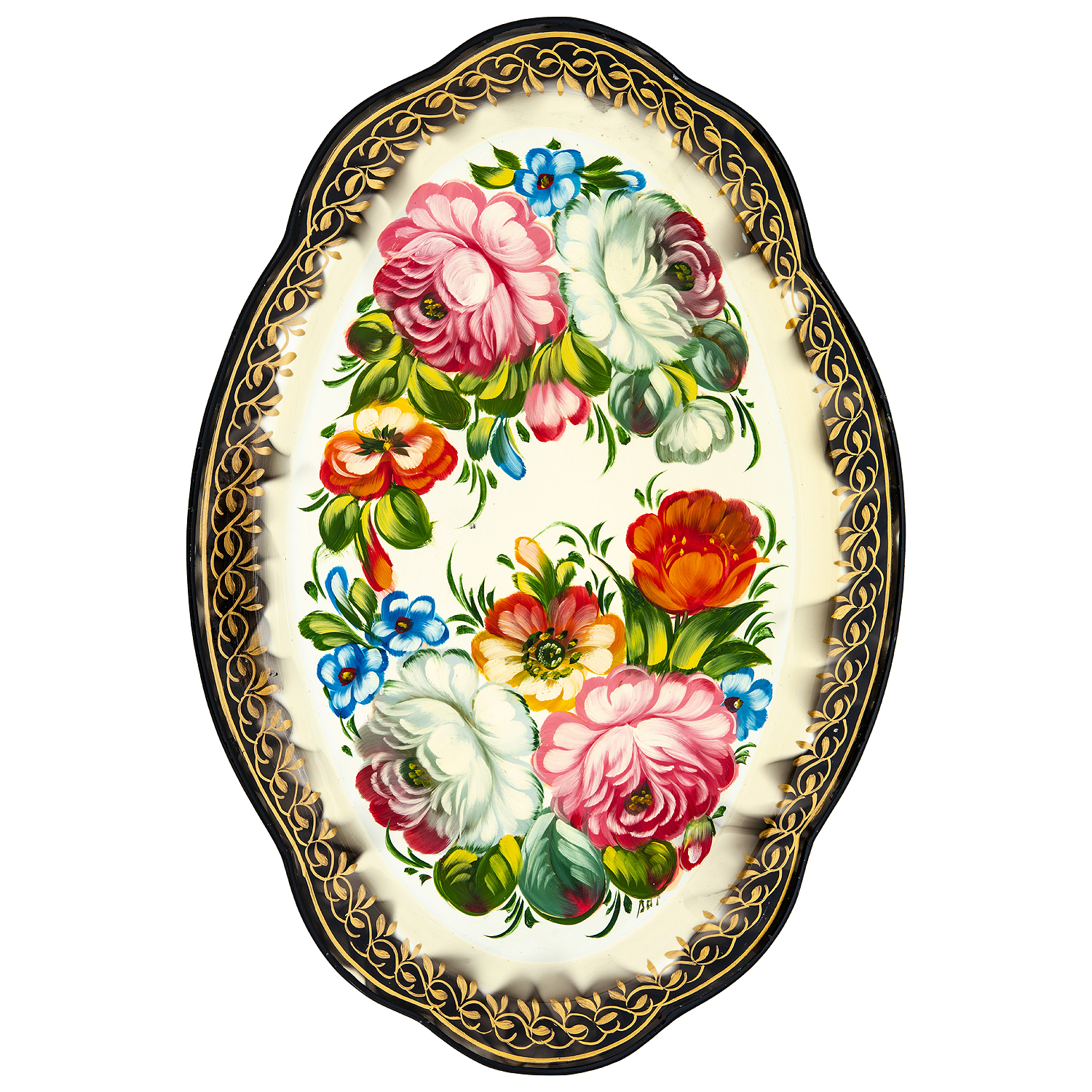 202812 Поднос сувенирный "ЦВЕТЫ" (фон БЕЖ ) 33*23 СМ