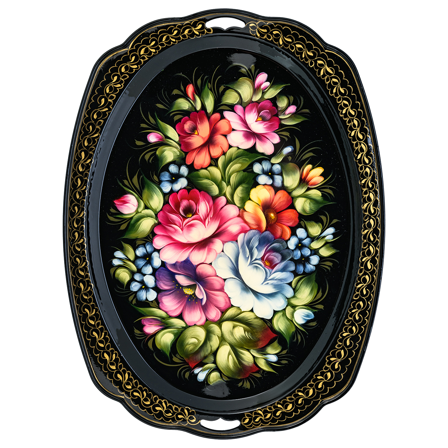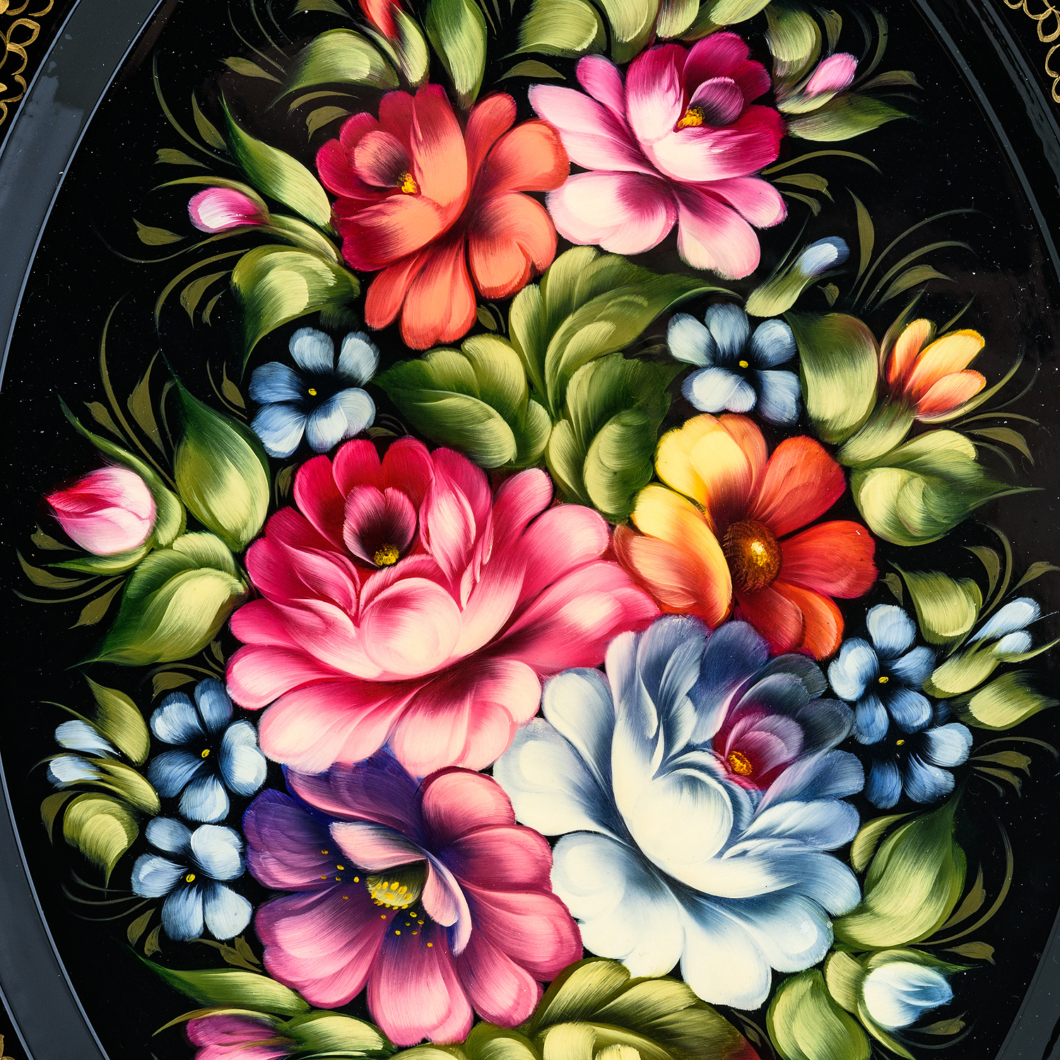 0011580/40*30 Поднос сувенирный с росписью "Цветы"(фон черный)