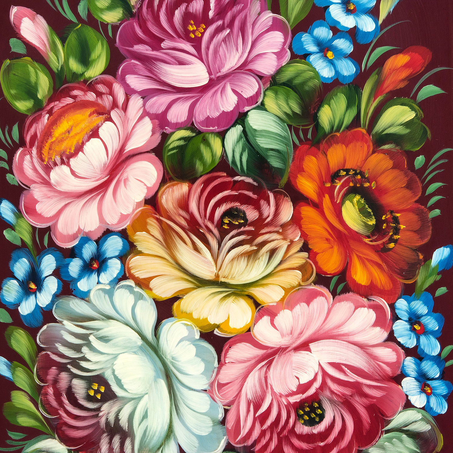 202816 Поднос сувенирный с росписью "Цветы"фон борд33*25 см