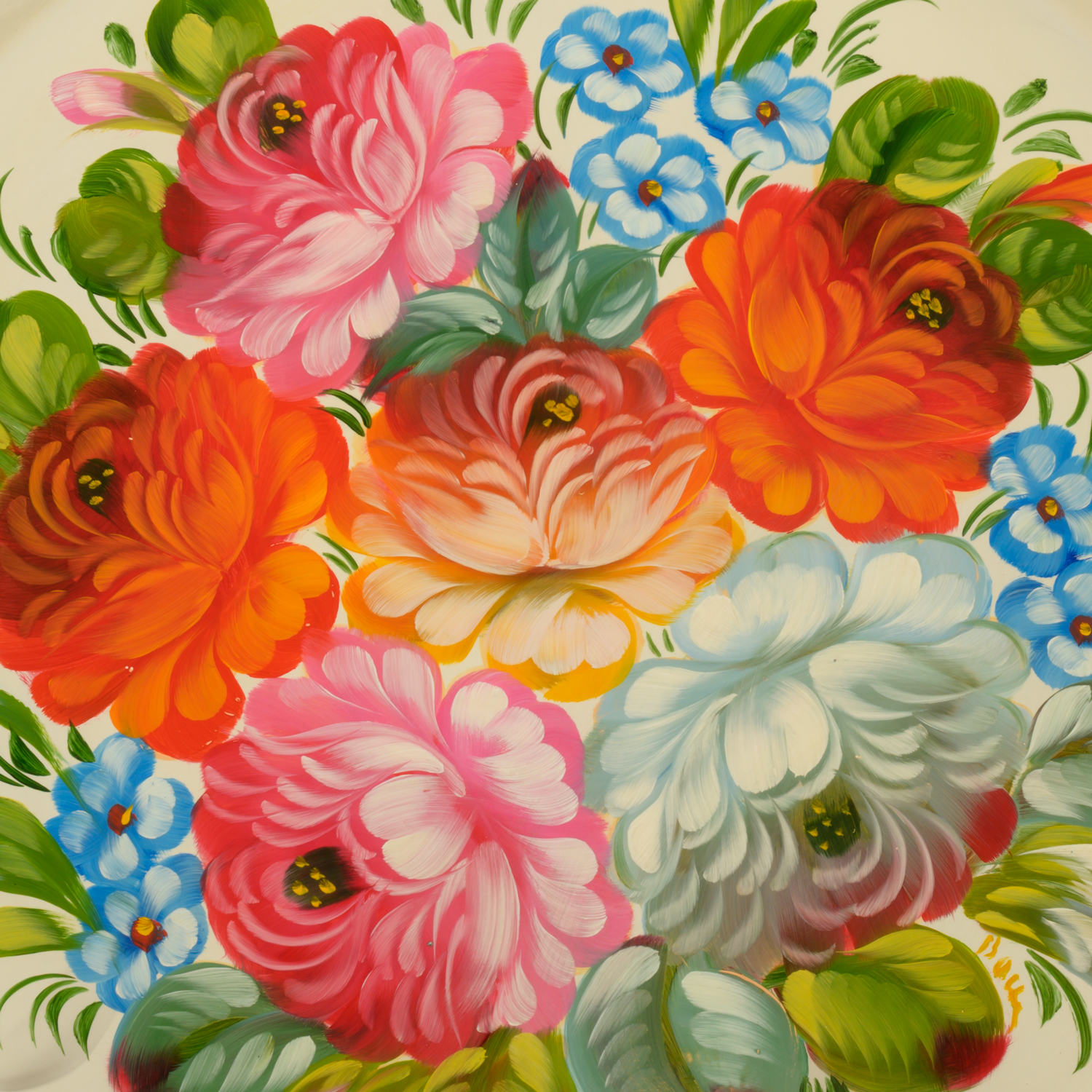 Поднос с авторской росписью "Цветы" 33х33 см